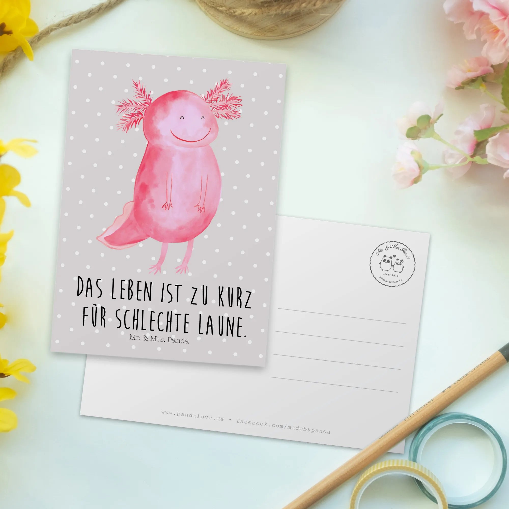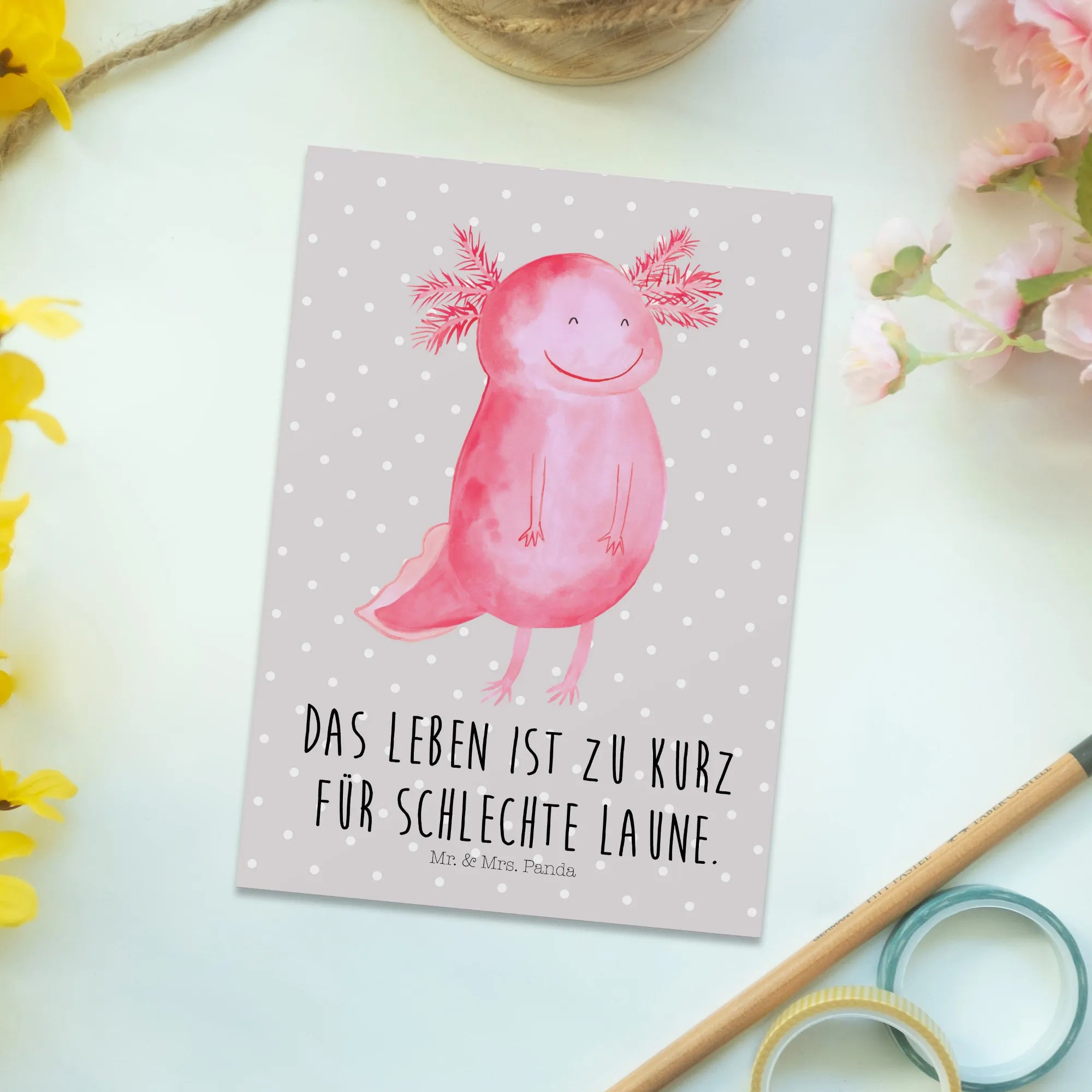 Postcard axolotl Happy - with a saying - Grey Pastel