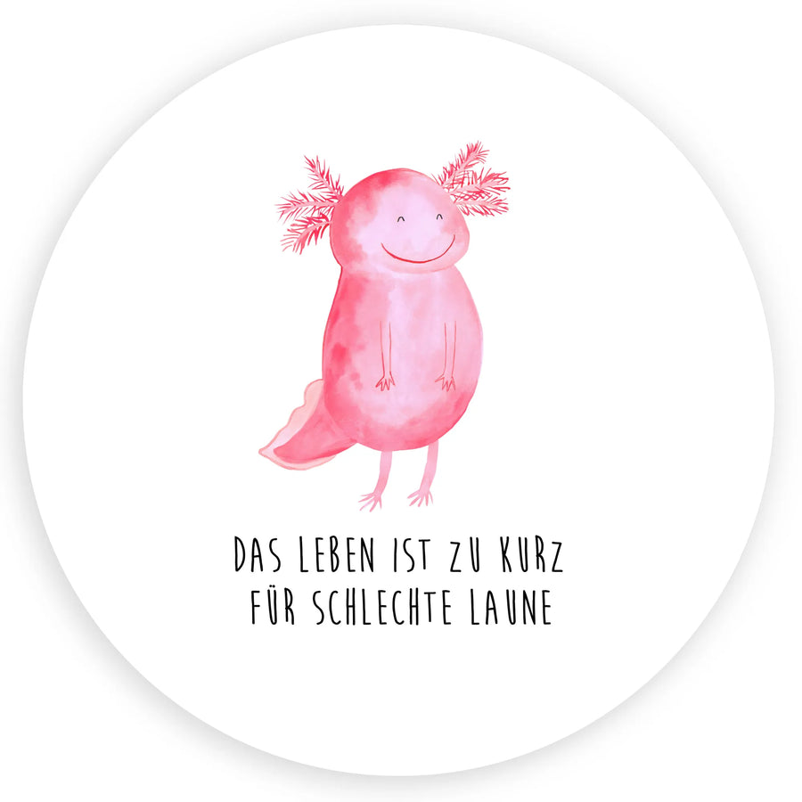 Round sticker axolotl Happy - 80mm Round Sticker - with saying - White