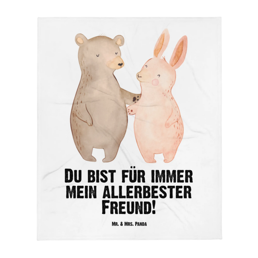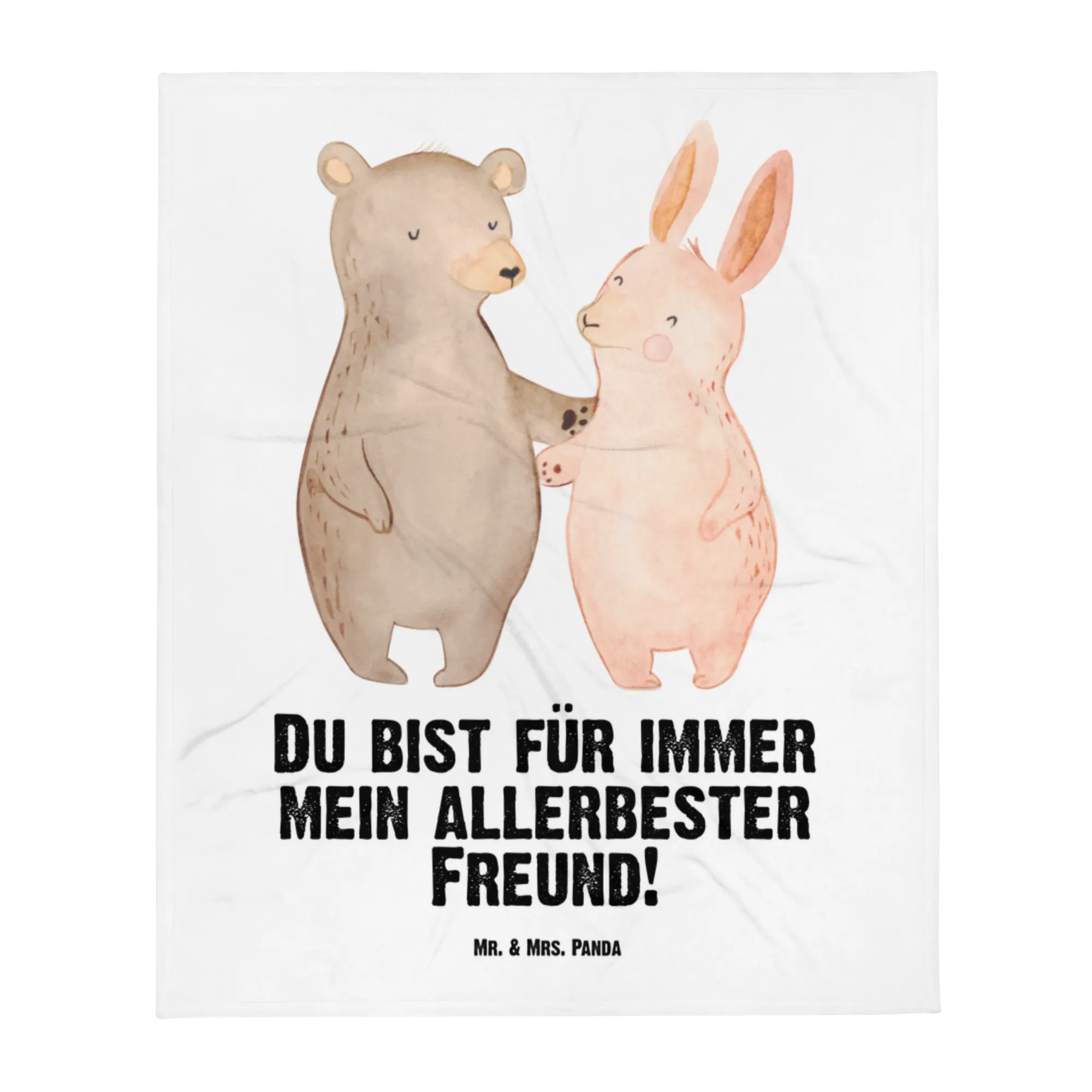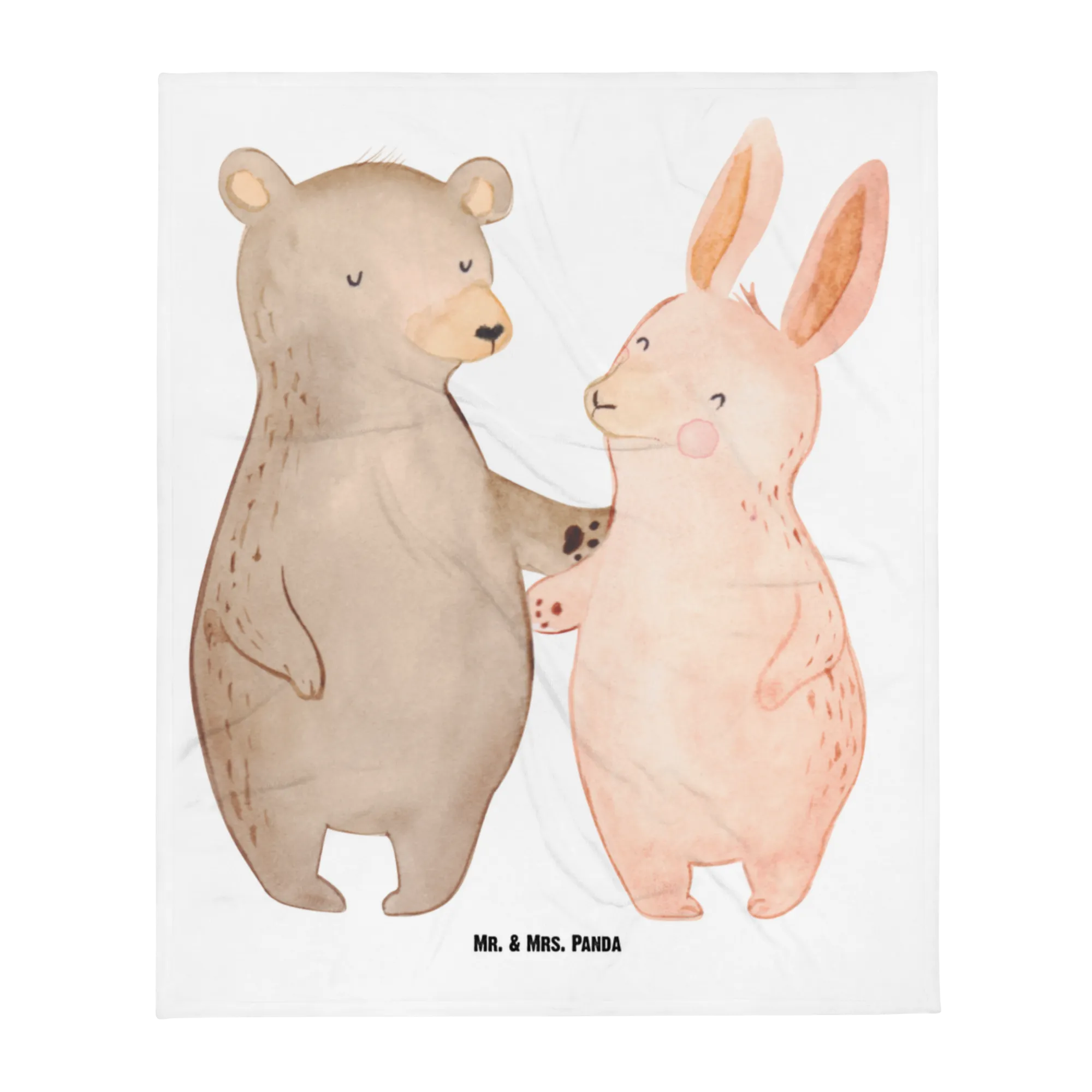 Baby blanket bear and rabbit Embrace - with a saying - White
