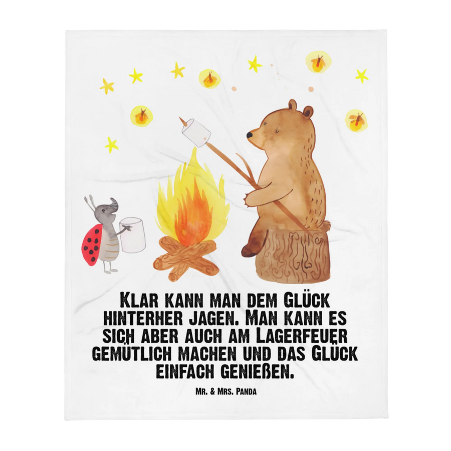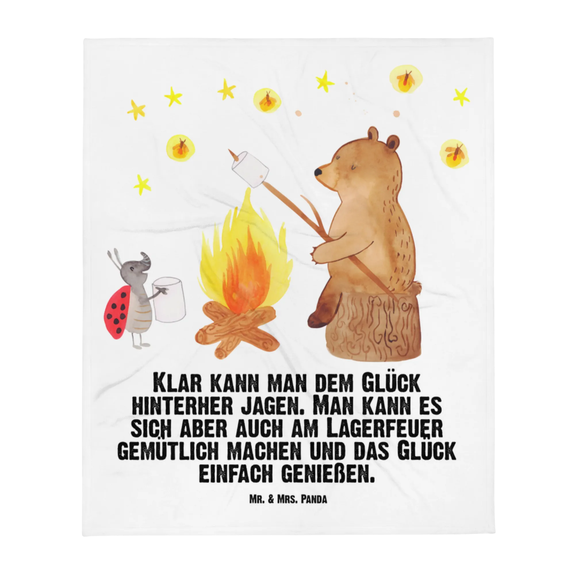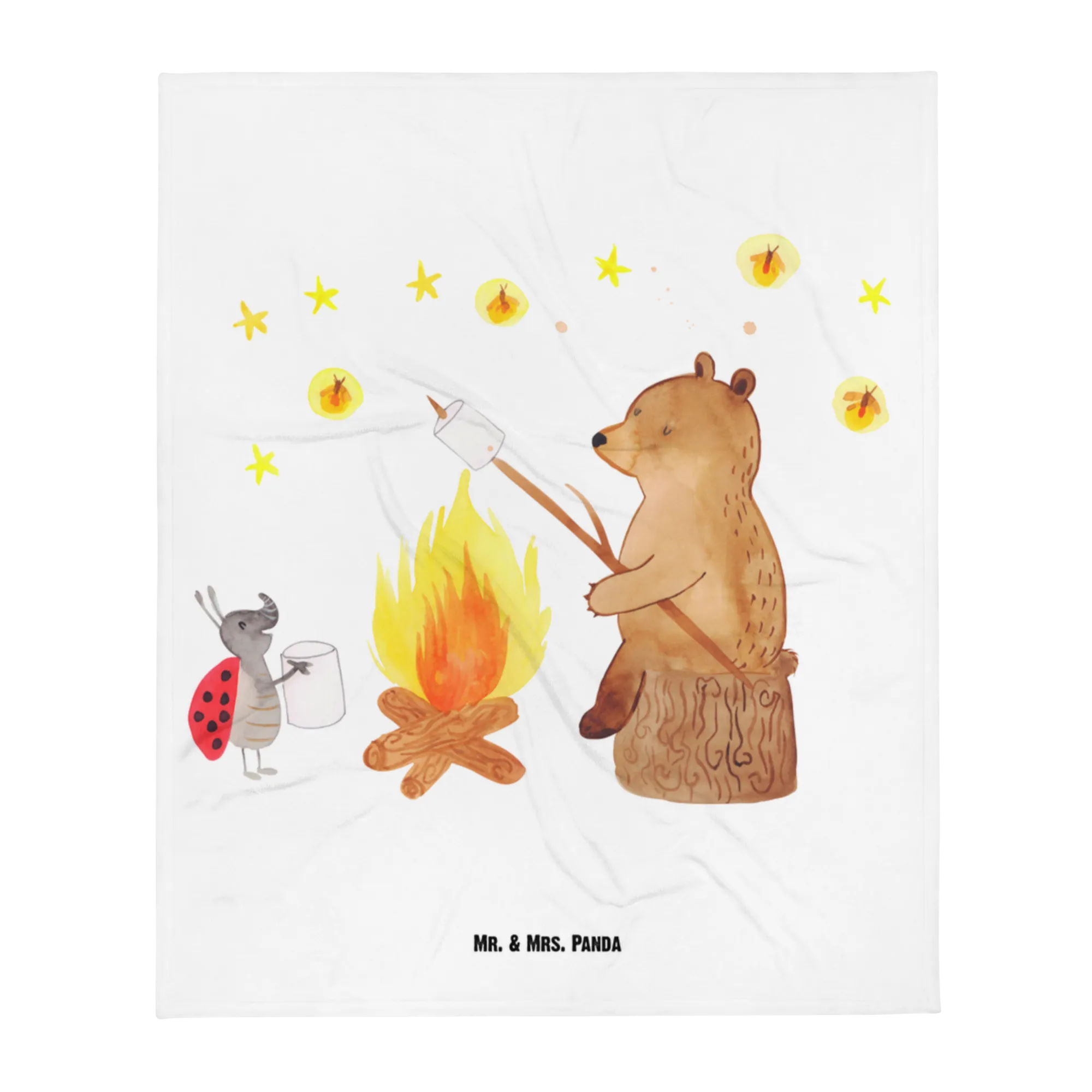 Baby blanket Bear & Ladybird campfire - with saying - White