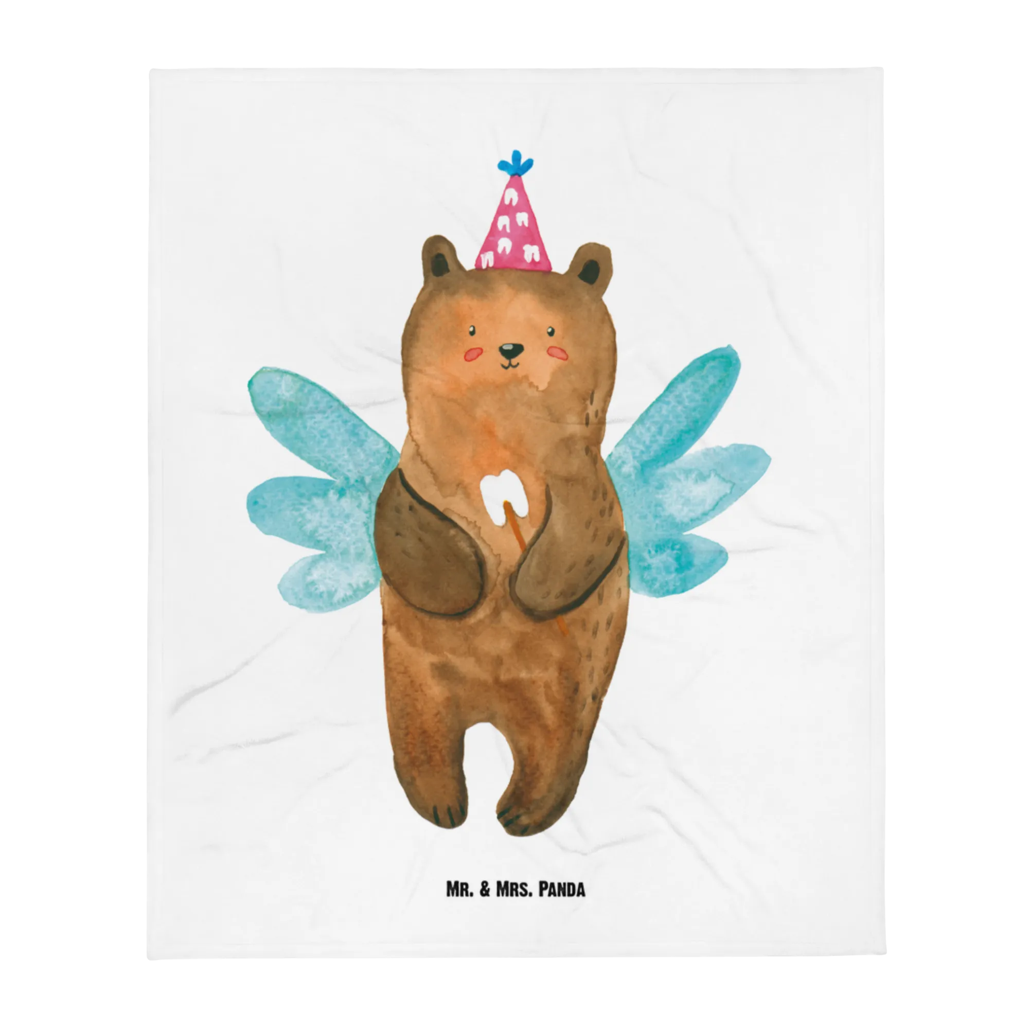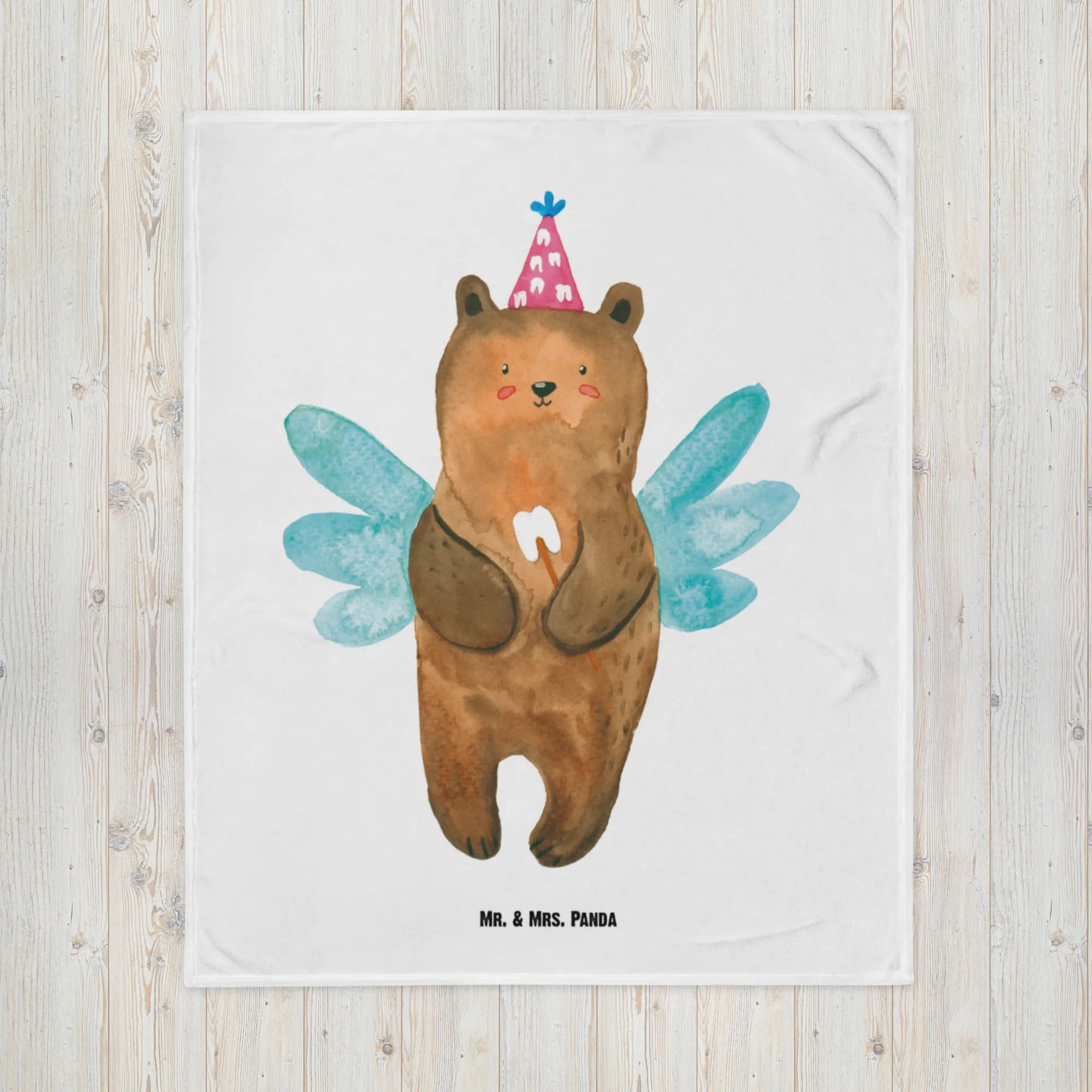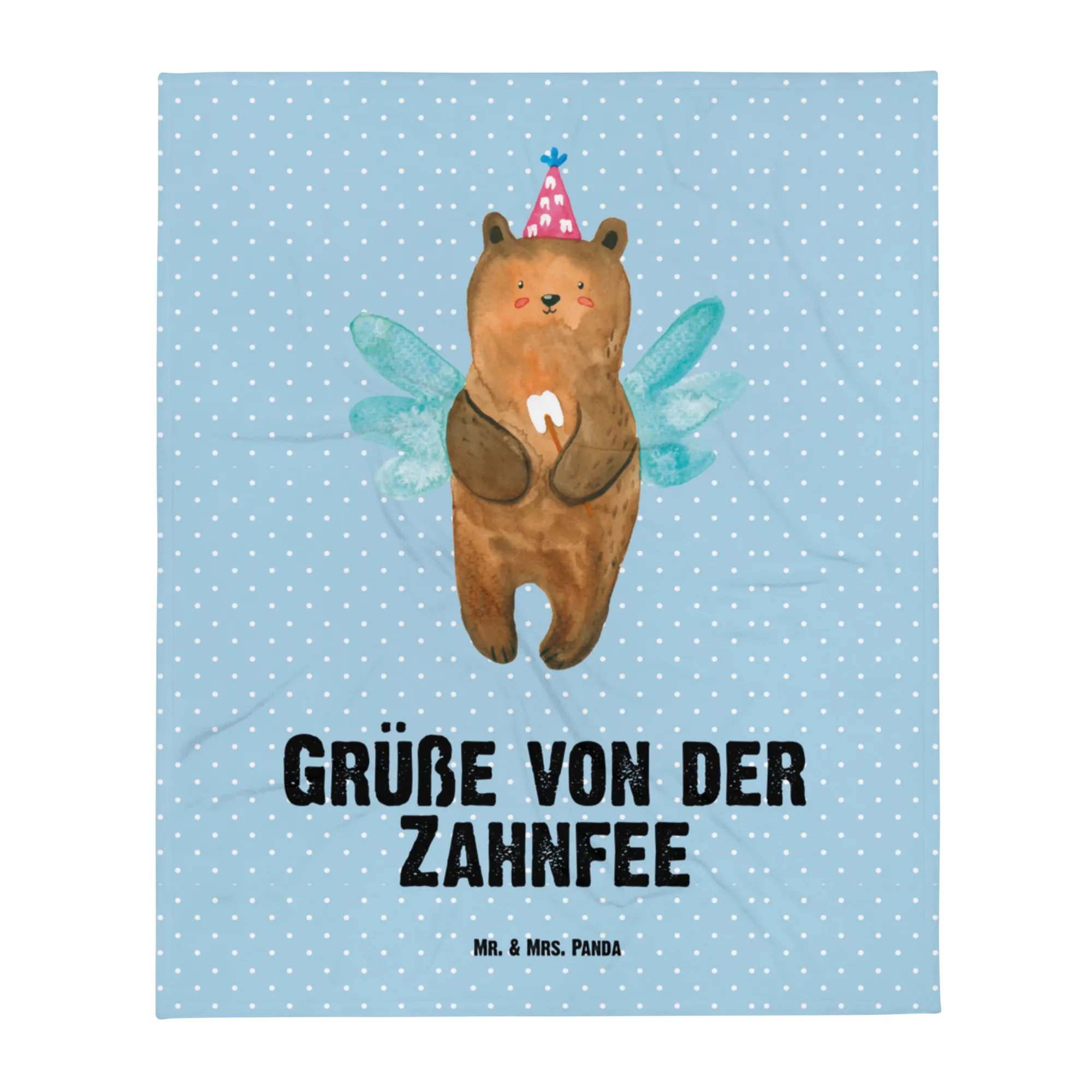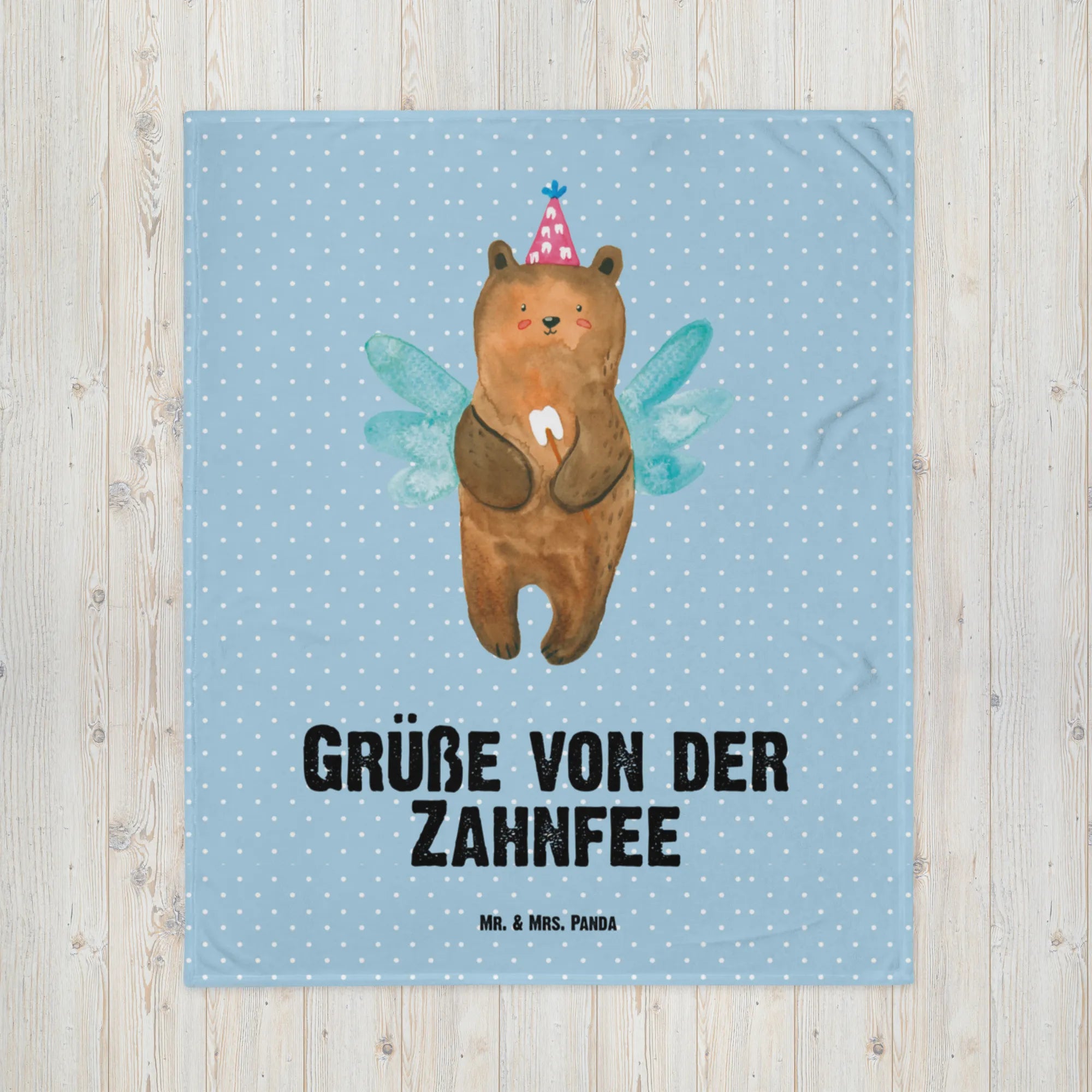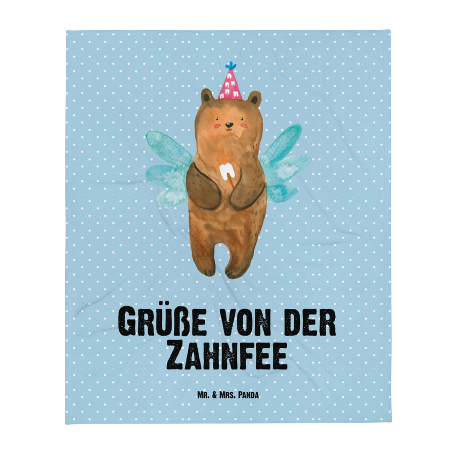 Baby blanket bear tooth fairy - with a saying - Blue Pastel