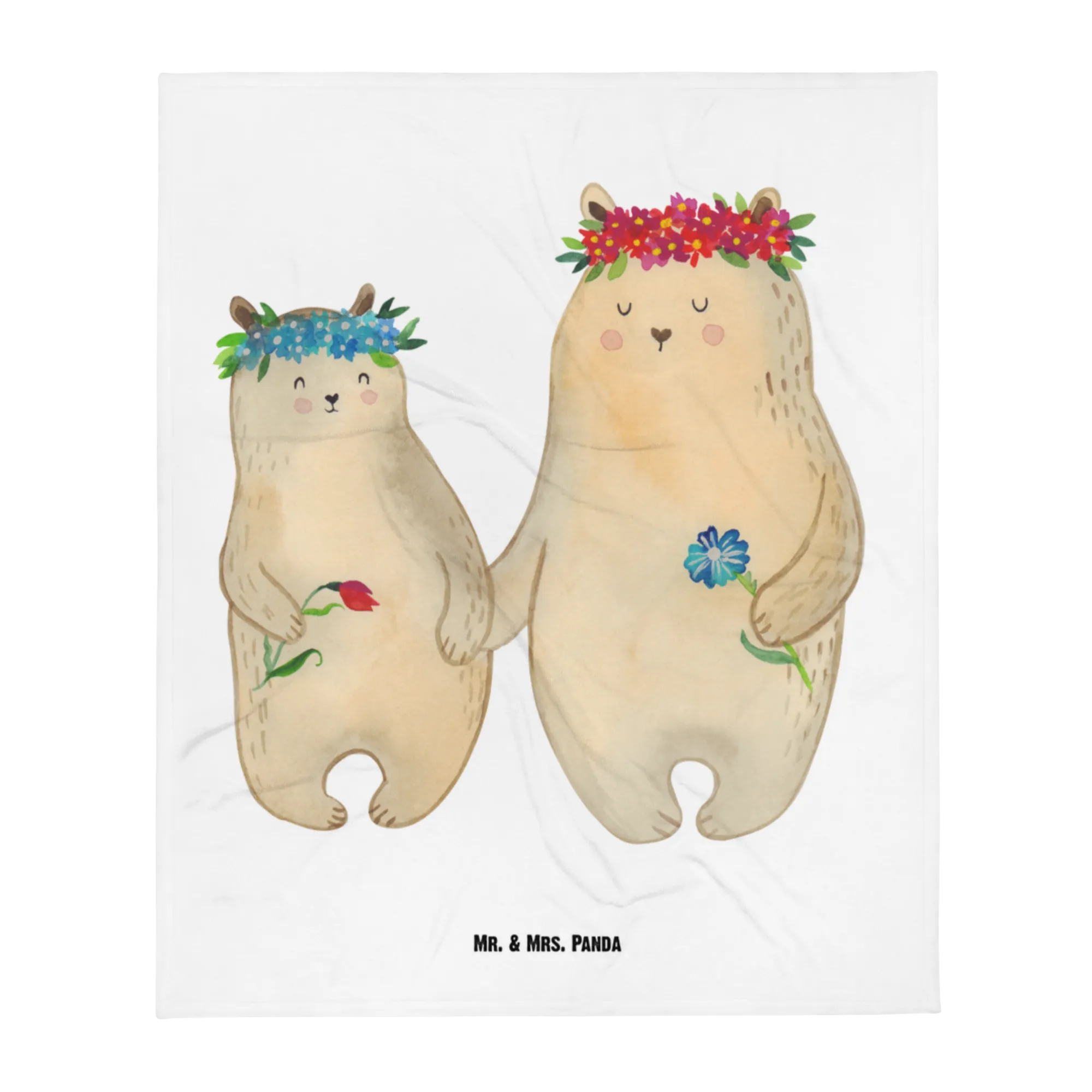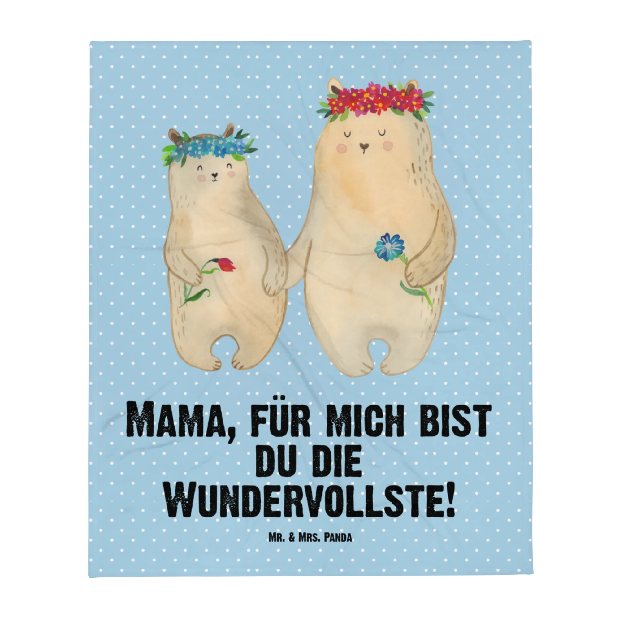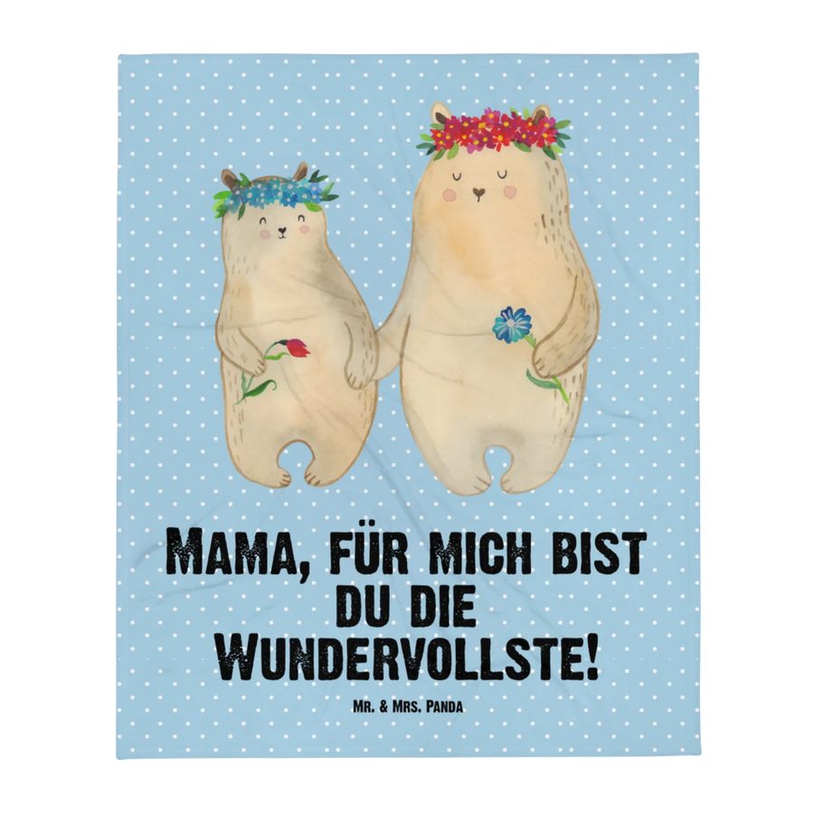 Baby blanket Bears with flower crown - with saying - Pastel Blue