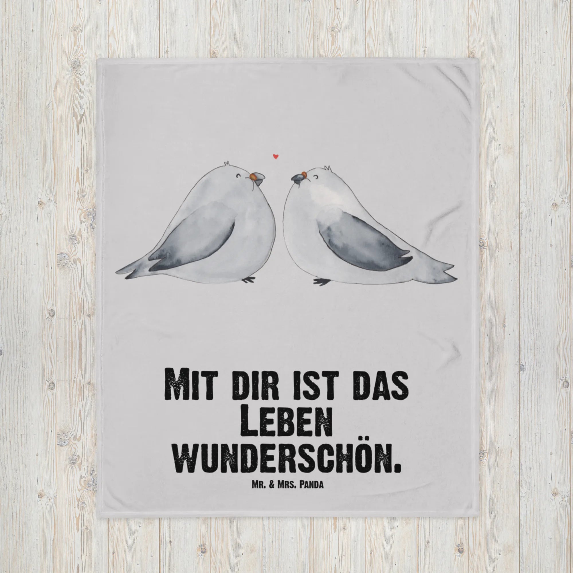 Baby blanket Turtledoves in love - with saying - Pastel Gray