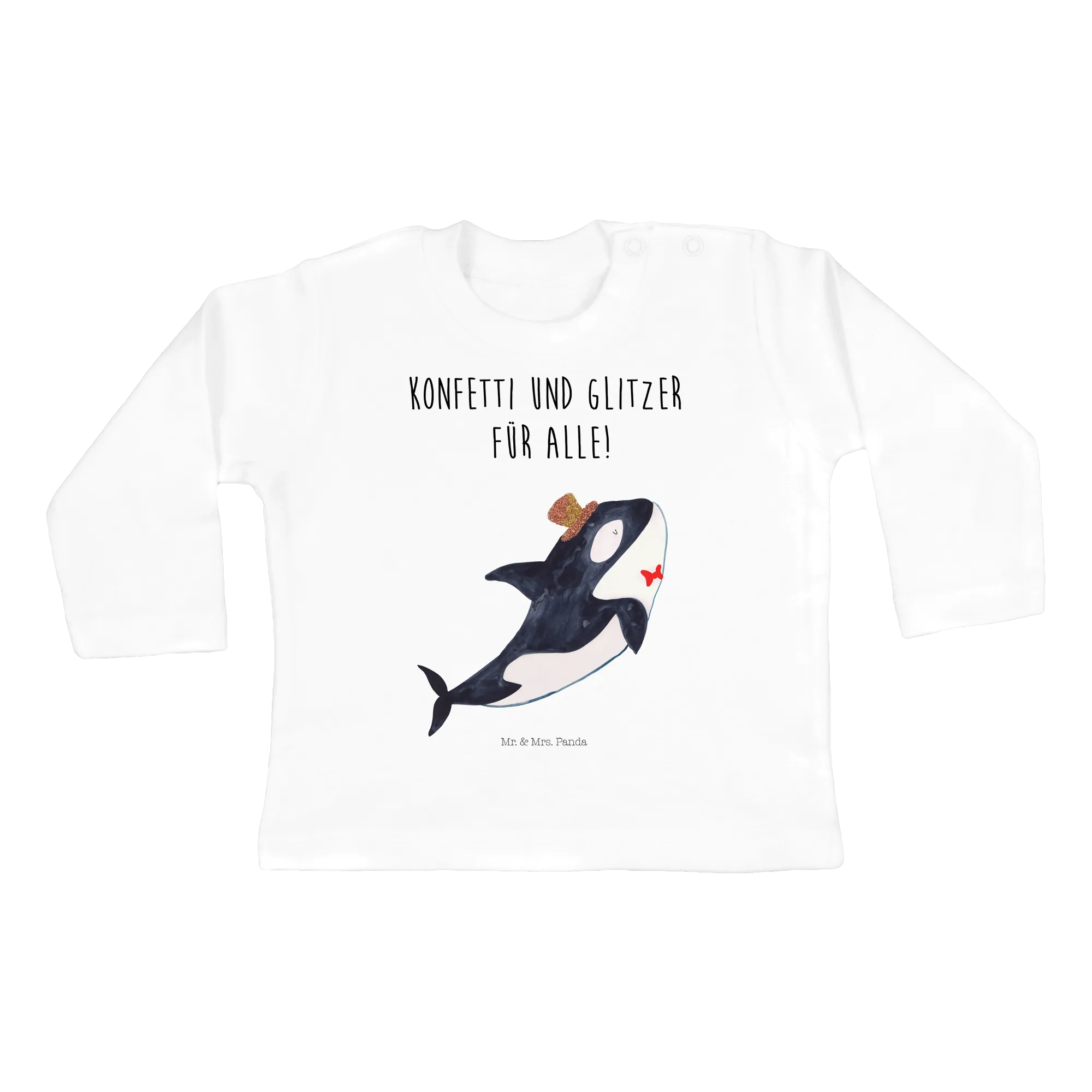 Baby long-sleeve orca cylinder Langarm, Bio, Baby Shower, Kleidung, Meer, Meerestiere, Urlaub, Glückwunsch, Glitter, Fete, Glitzer, Konfetti, Fest, Narwal, Feier, Geburtstag, Orca