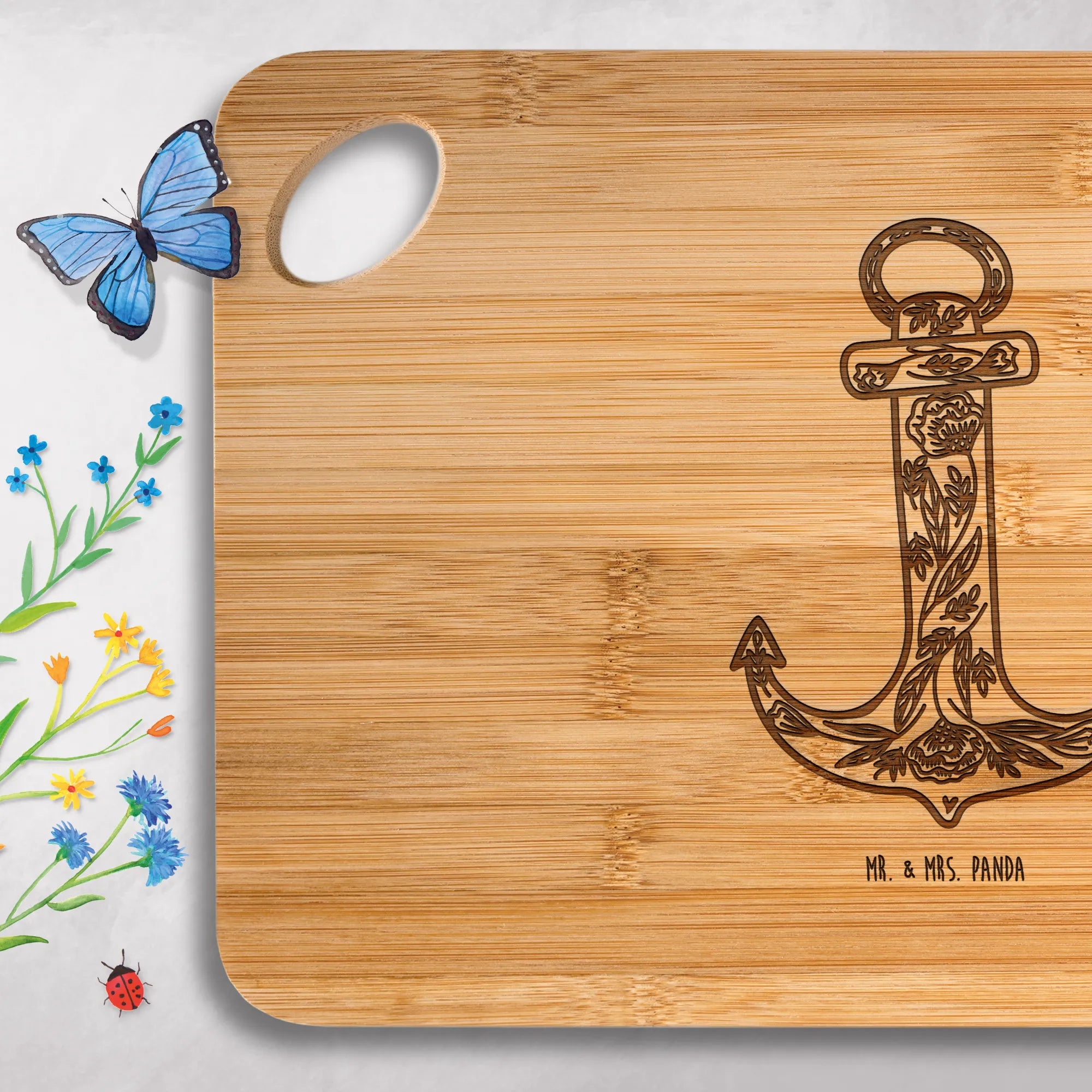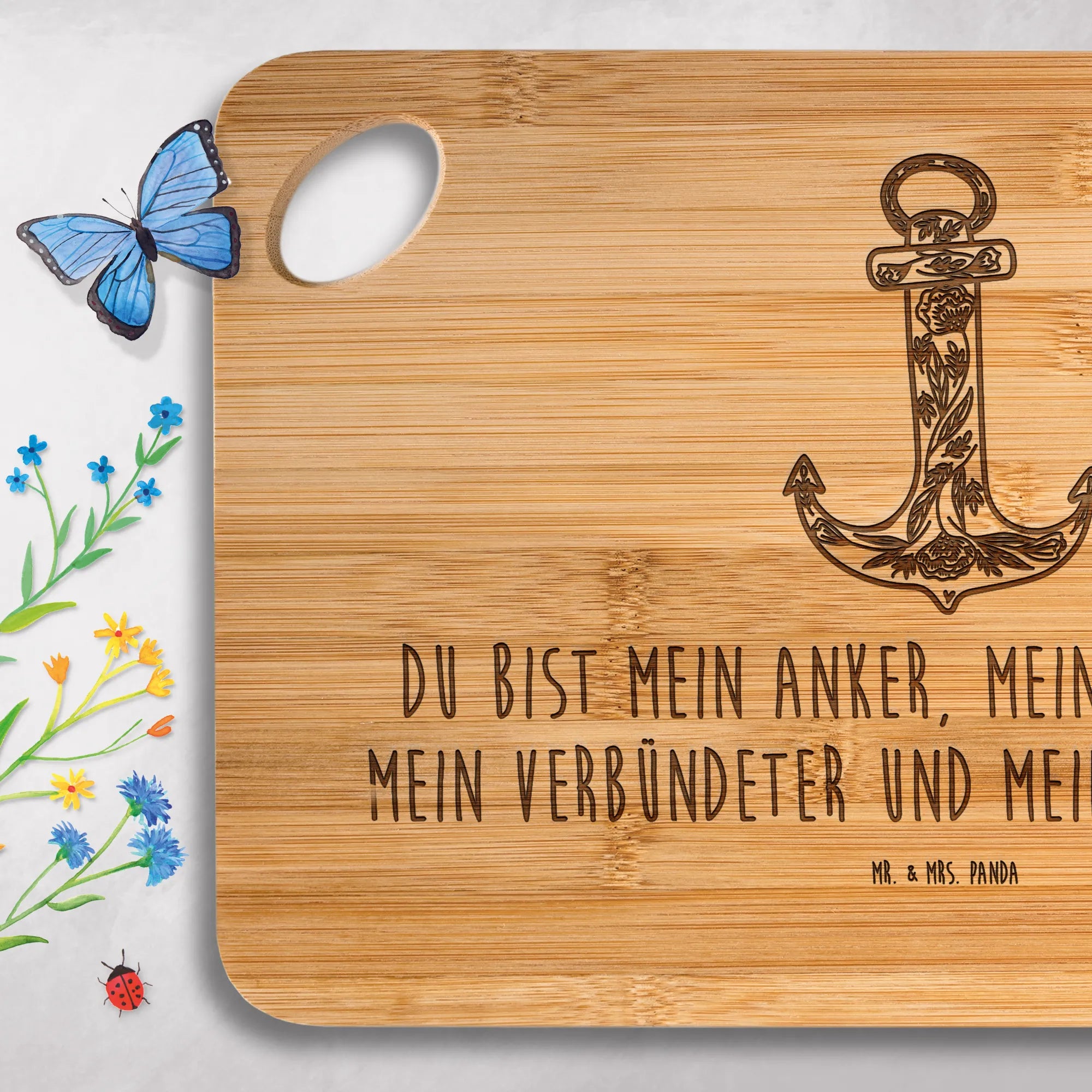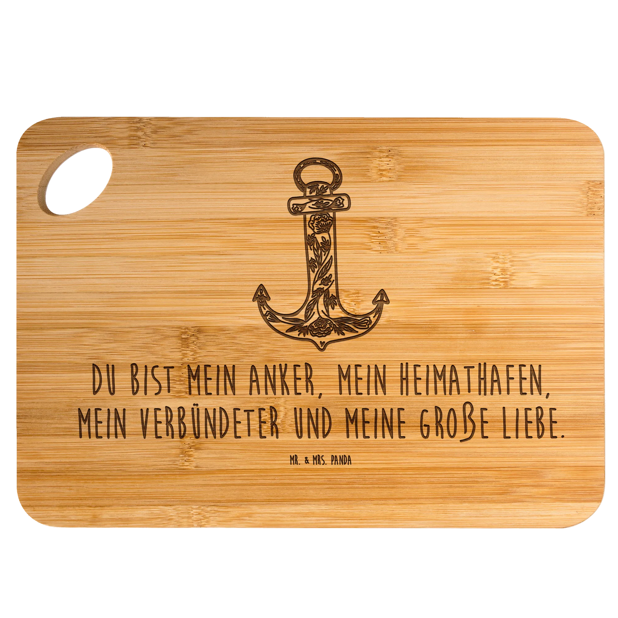 Bamboo chopping board anchor Blue - with saying