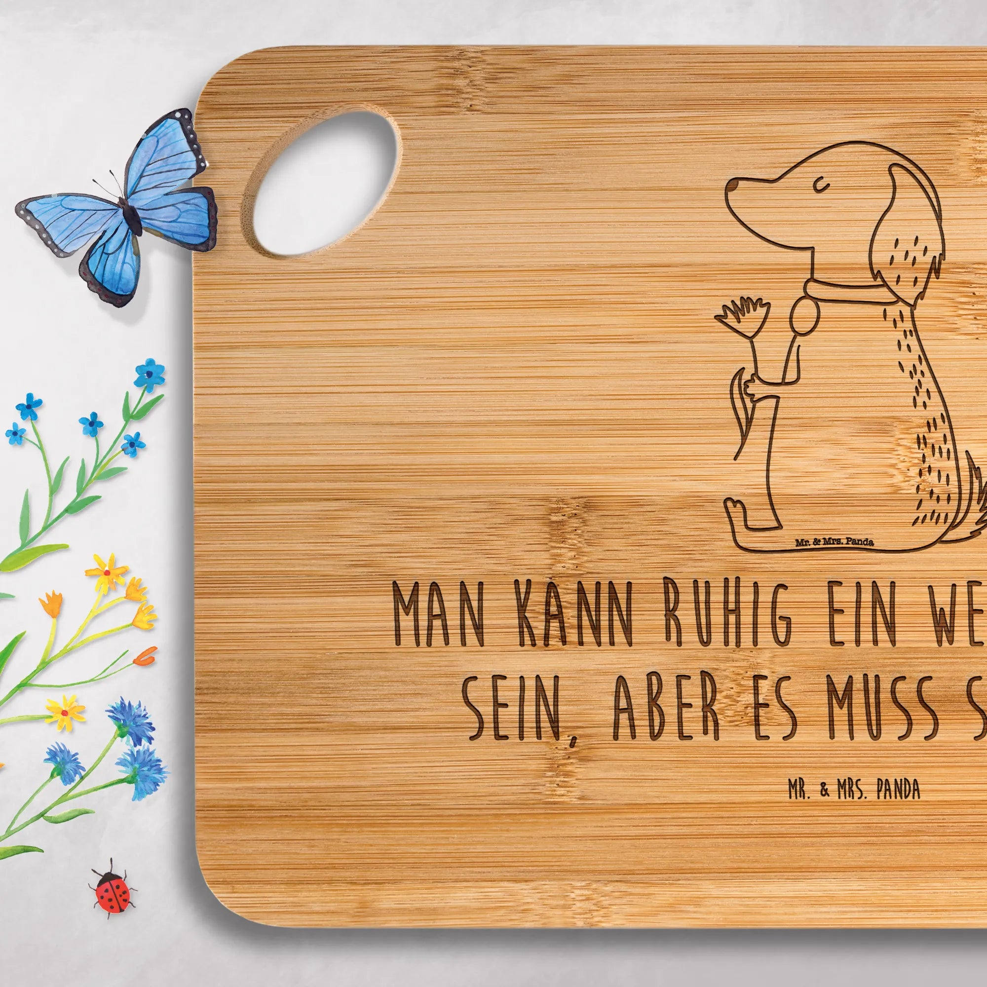 Dieses Frühstücksbrettchen aus der liebevollen Hunde Kollektion von Mr. & Mrs. Panda kombiniert praktische Funktion mit liebevollem Design. Die süße Hündin mit Blume im Fell und der freche Spruch „Man kann ruhig ein wenig verrückt sein, aber es muss Stil haben.“ wurden von Mrs. Panda handgezeichnet und als langlebige Lasergravur auf das Brett gebracht.