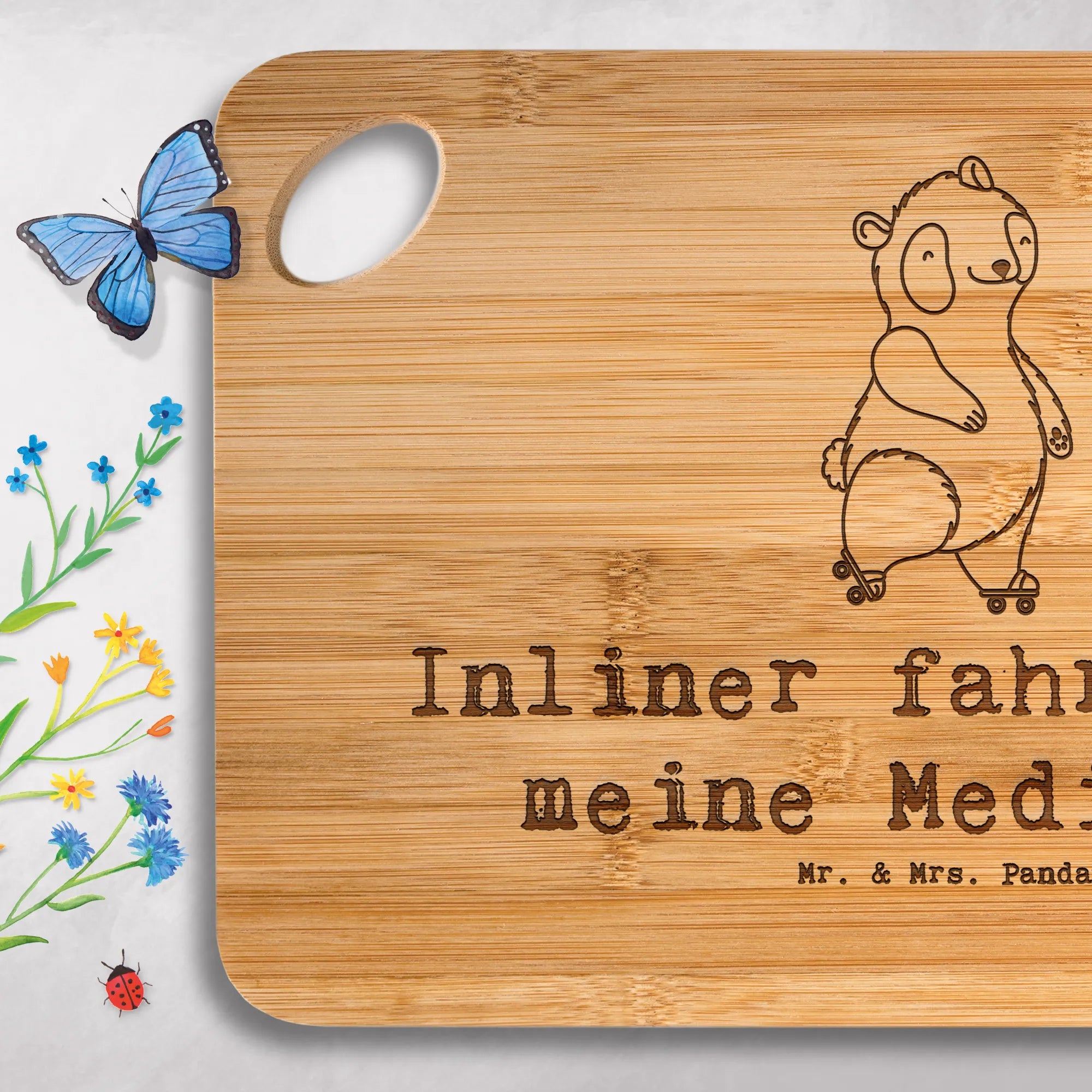 Discover the perfect gift for your favorite inline skating enthusiast with our Mr. & Mrs. Panda Bamboo Chopping Board featuring the charming motif "Panda inline skates ride medicine." Crafted from high-quality bamboo, this durable and robust cutting board is not only functional but also adds a delightful touch to any kitchen. Its unique design, featuring a cute panda joyfully skating, is sure to bring smiles during meal prep or breakfast serving.