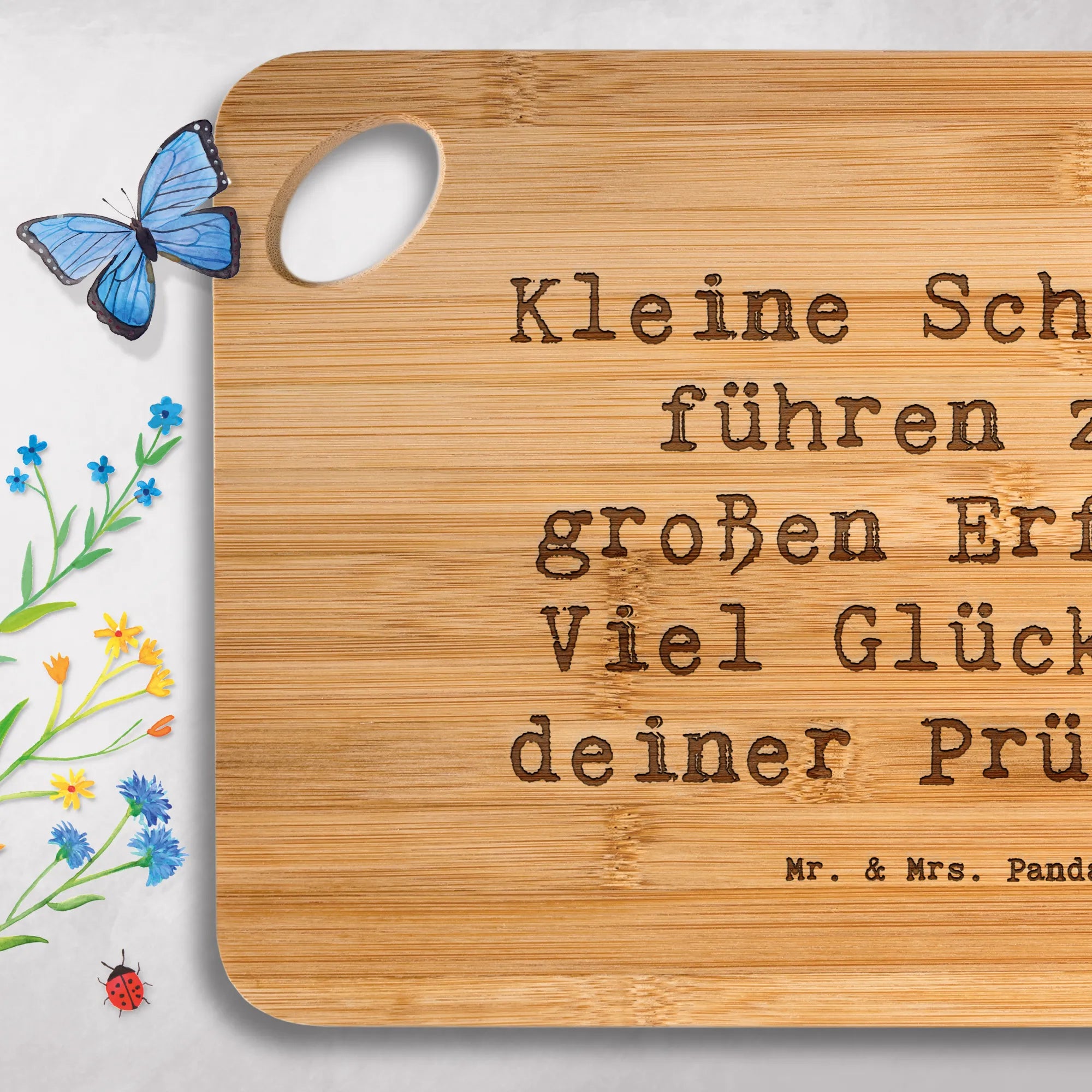 Bamboo chopping board Saying Kleine Schritte führen zum großen Erfolg! Viel Glück bei deiner Prüfung!