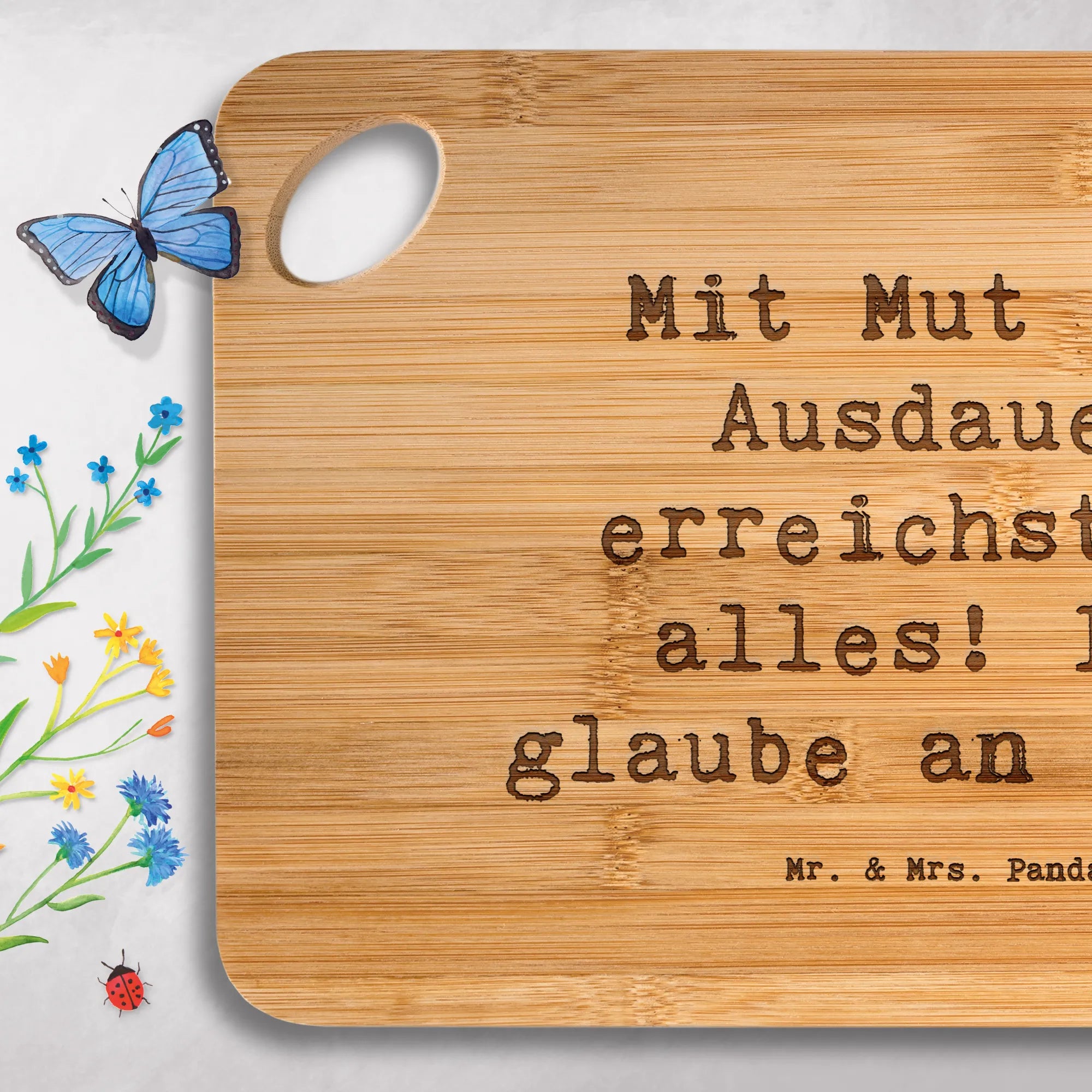 Bamboo chopping board Saying Mit Mut und Ausdauer erreichst du alles! – Mr. & Mrs. Panda
