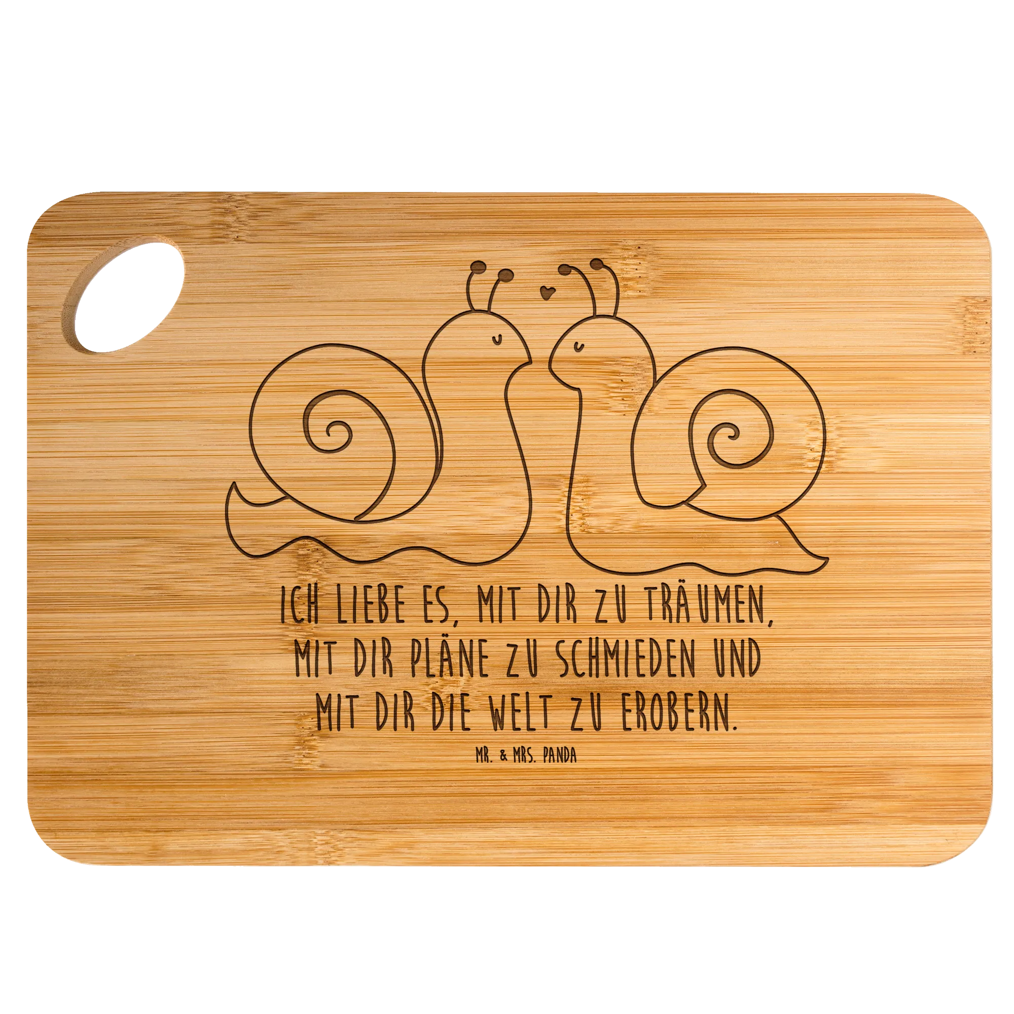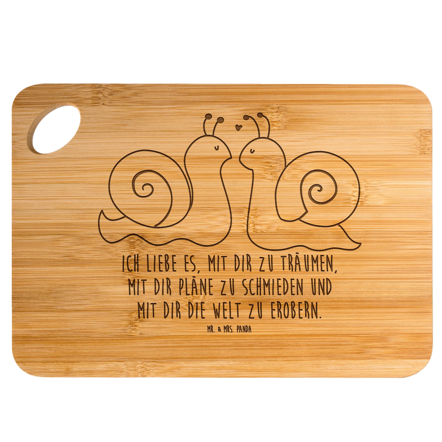 Bamboo chopping board Snails in love - with saying