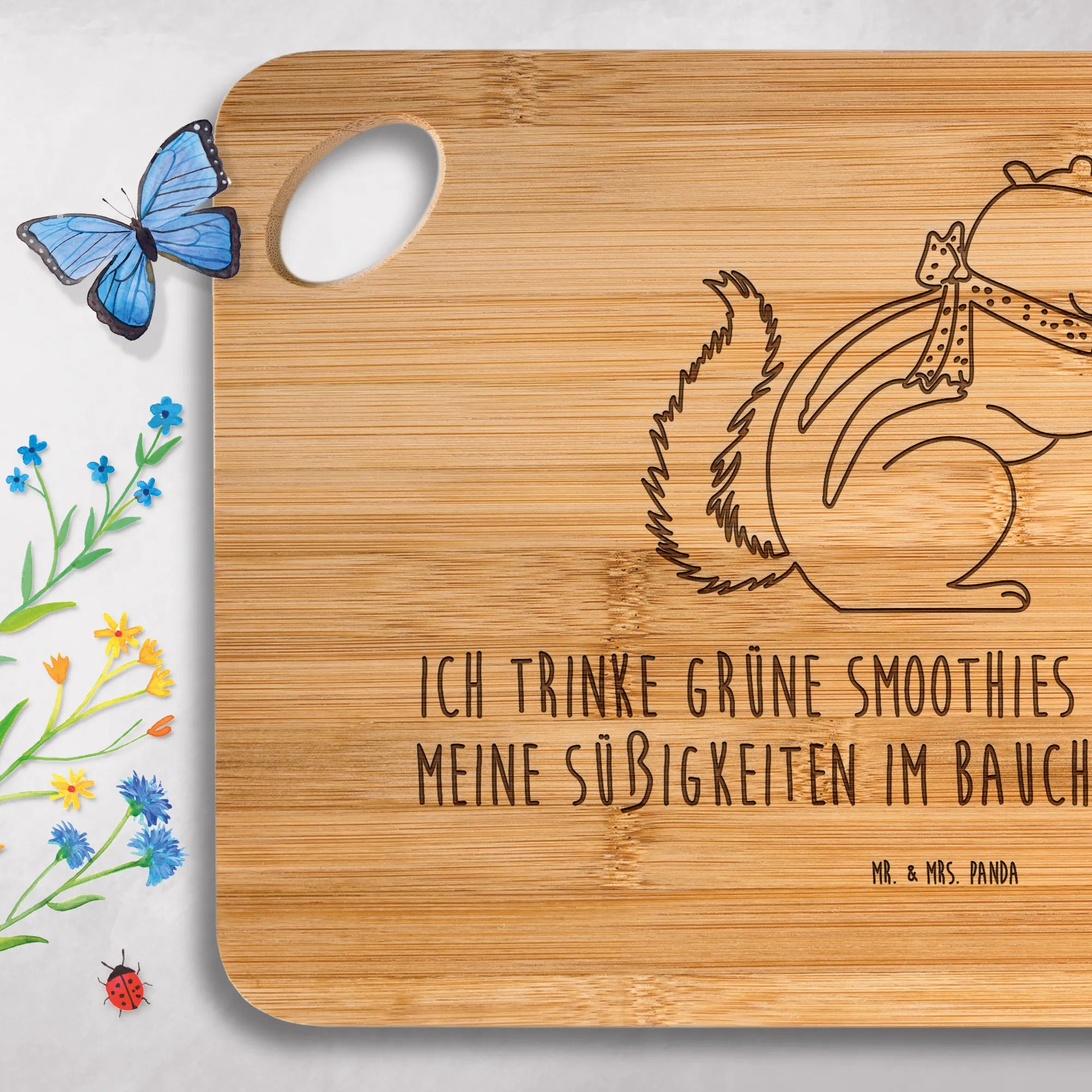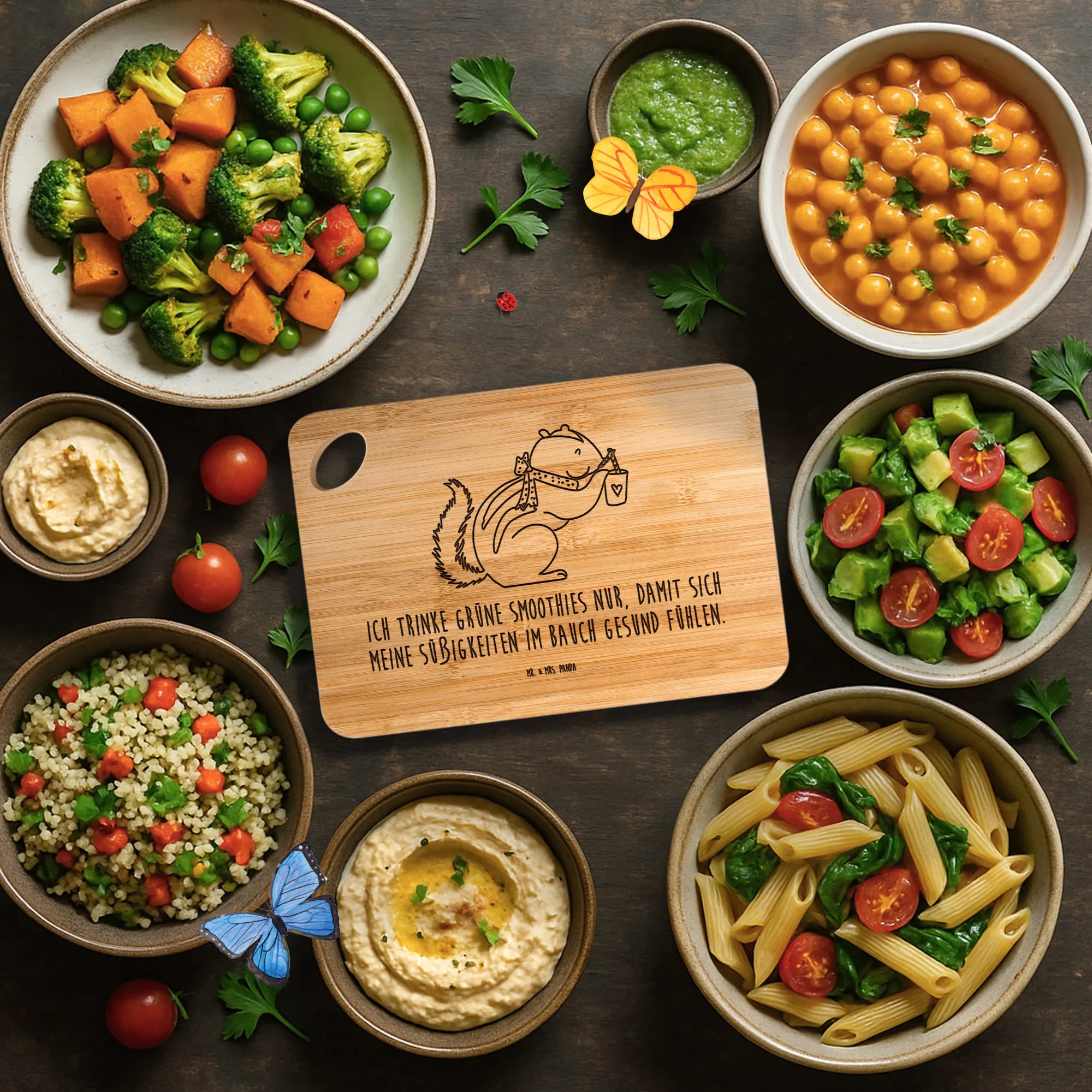 Fröhlich in den Tag starten: Das Mr. & Mrs. Panda Schneidebrett „Eichhörnchen Smoothie“ aus der Small World Kollektion ist ein liebevoll gestaltetes Frühstücksbrett, das mit einem niedlichen Streifenhörnchen und dem witzigen Spruch „Ich trinke grüne Smoothies nur, damit sich meine Süßigkeiten im Bauch gesund fühlen.“ für gute Laune sorgt. Perfekt für alle, die Frühstück, Vesper oder Käseplatten mit einem Augenzwinkern genießen.