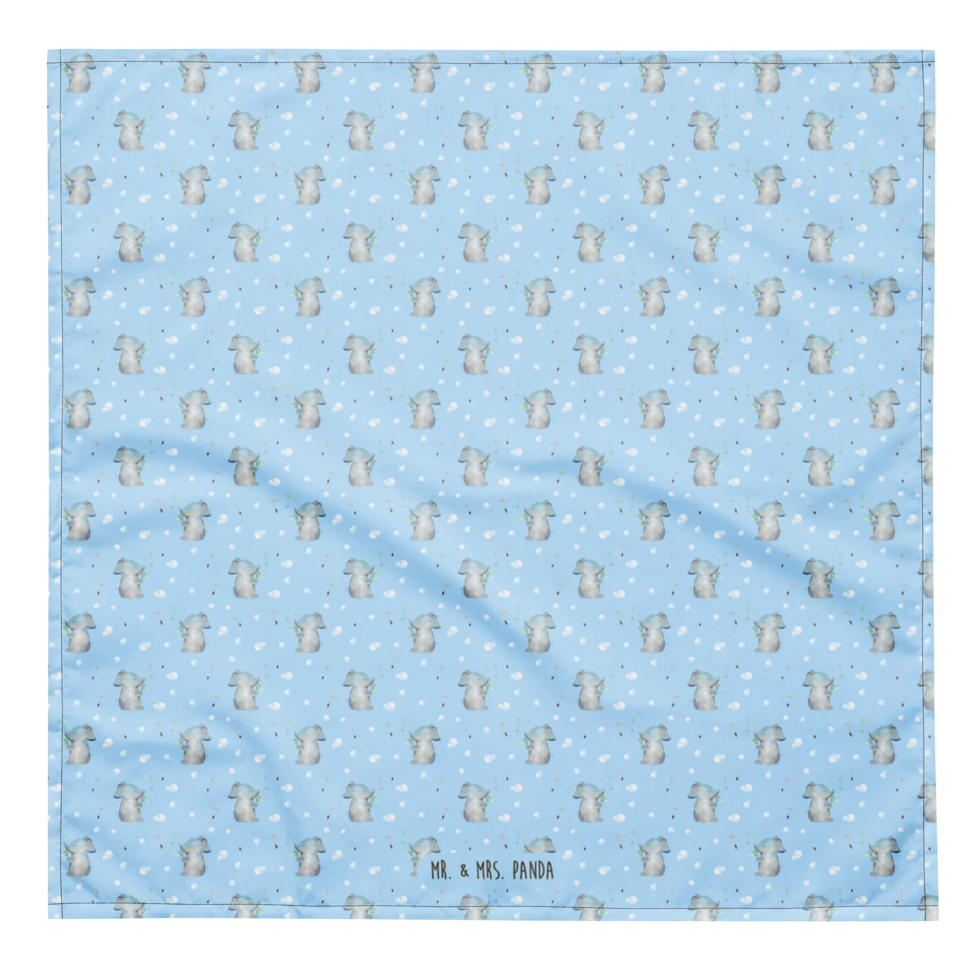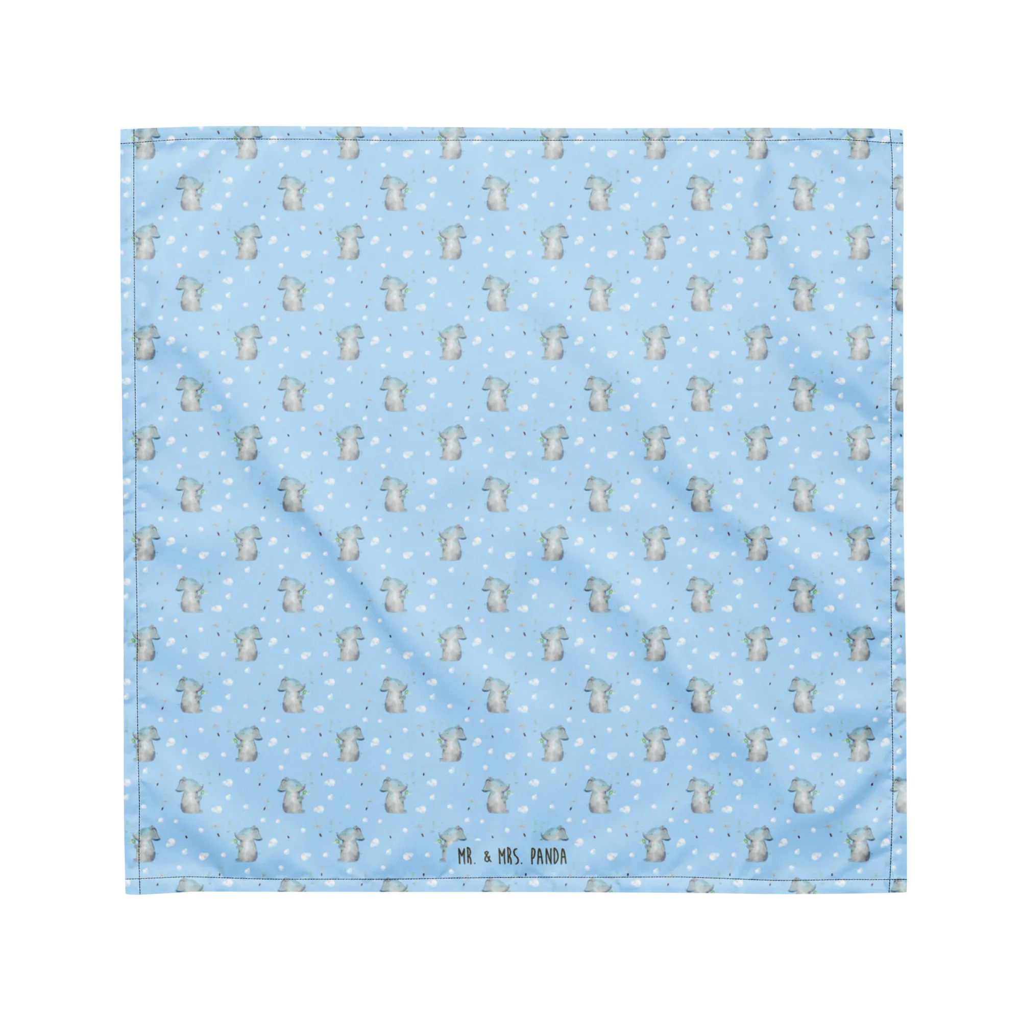 Introducing the charming Mr. & Mrs. Panda Bandana featuring our sweet elephant, Lasse, blowing soap bubbles! This delightful bandana is more than just an accessory; it’s a treasure from our Small World collection, a world filled with adorable animals and heartfelt sentiments. Measuring at 440 mm (17 inches) square, it's the perfect size to be versatile—use it as a headband, neck scarf, or even as a stylish addition to your pet’s outfit!