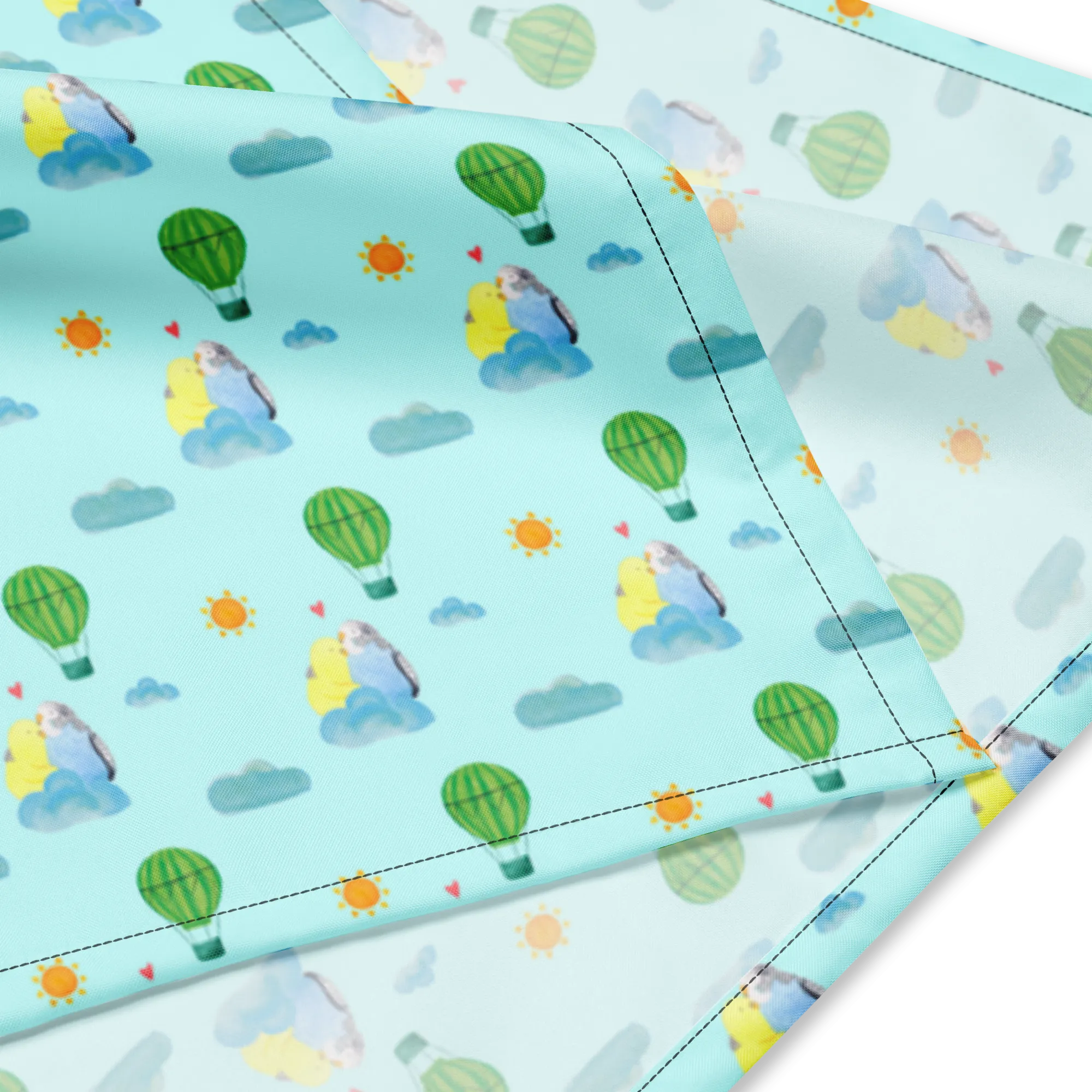 Are you looking for a gift that perfectly captures love, trust, and closeness? Look no further than our beautiful Parakeets in Love bandana from the Love collection by Mr. & Mrs. Panda! This delightful bandana features a stunning motif of two adorable parakeets cuddling, beautifully rendered in soft watercolor colors of pastel yellows and blues. It's the ideal gift for loved ones on special occasions like anniversaries, proposals, weddings, or simply to say 'I love you.'