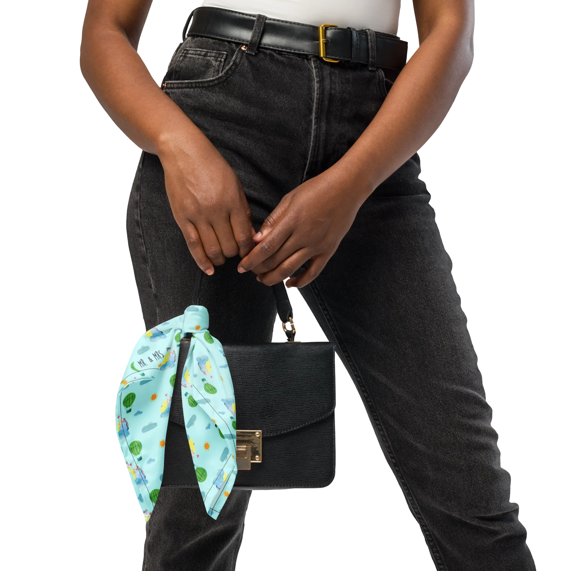 Embrace style and versatility with the Mr. & Mrs. Panda Bandana! This beautifully designed bandana can be transformed into a headband, bracelet, neck scarf, pocket accessory, or even a stylish piece for your beloved pet. Measuring 540 mm x 540 mm (21 inches x 21 inches), it's the perfect size for all your needs. Crafted from 65% recycled polyester and 35% polyester, this lightweight fabric weighs 100 g/m² (2.95 oz/yd²), making it breathable and moisture-wicking. With a double-turned hem and a detailed one-sided print, our bandana promises durability and a long-lasting style. Perfect for those who love a touch of eco-friendliness, as the fabric meets Oeko-Tex Standard and Global Recycled Standard (GRS) certifications, ensuring sustainability in your accessories. Keep in mind that the smallest size is suitable only for small pets, so choose M or L for adult use. Make a fashionable statement while being kind to the planet!