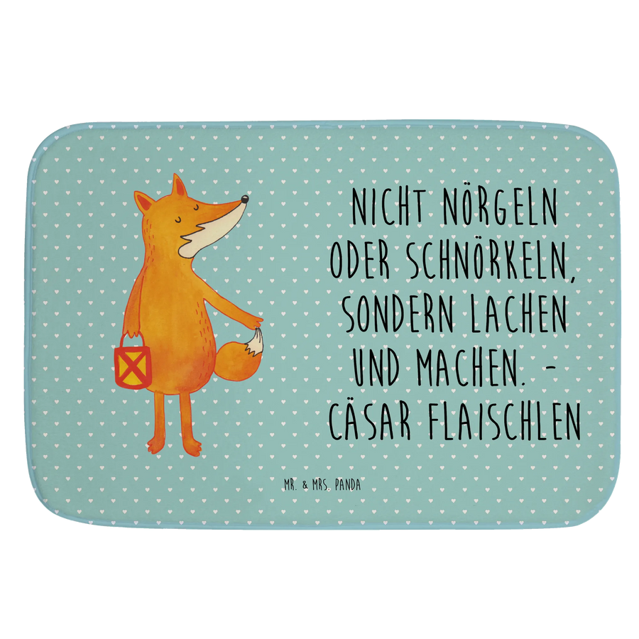 Bath mat Fox Lantern - with a saying - Turquoise Pastel