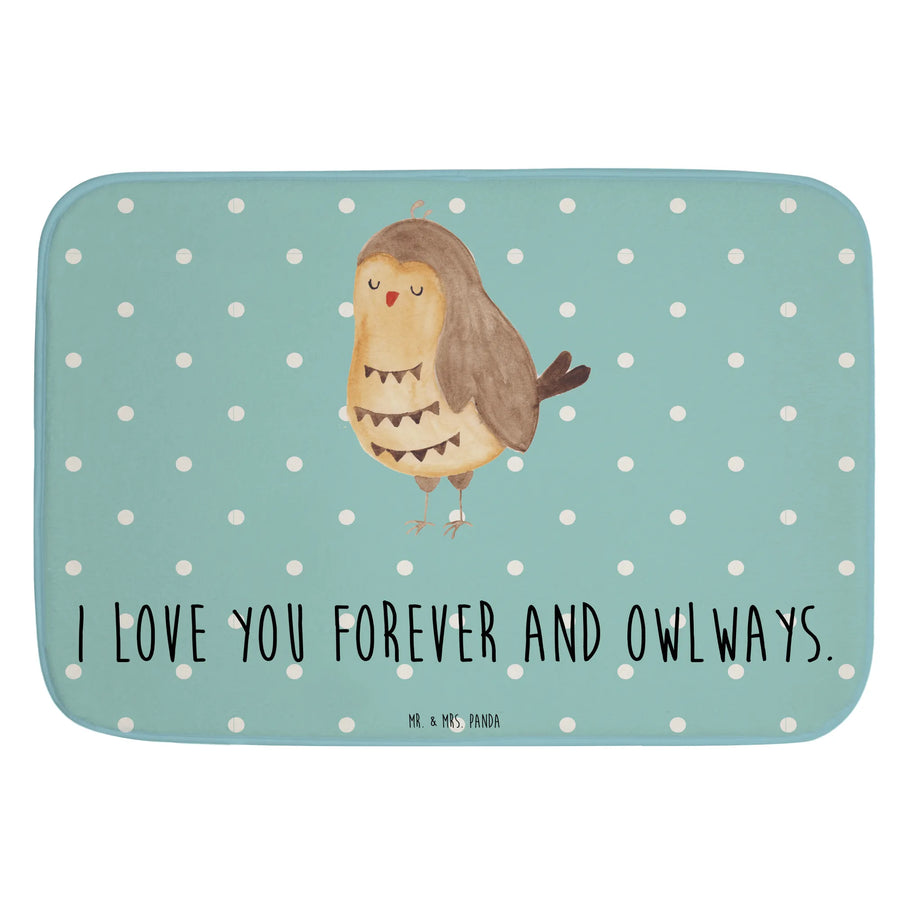 Bath mat Owl Satisfied - with a saying - Turquoise Pastel