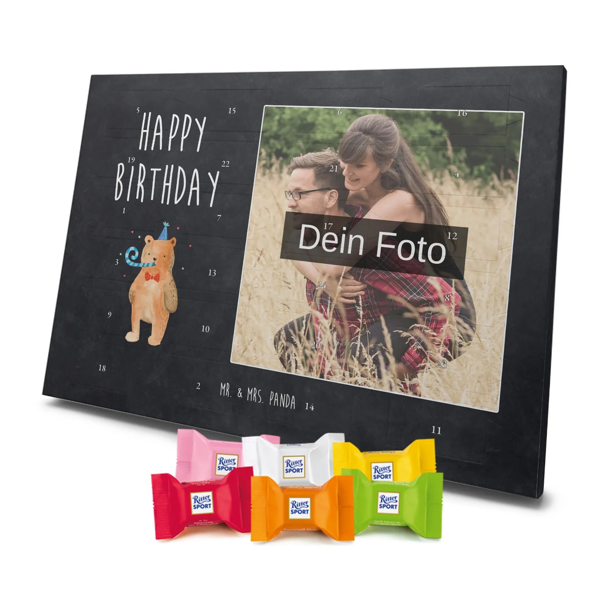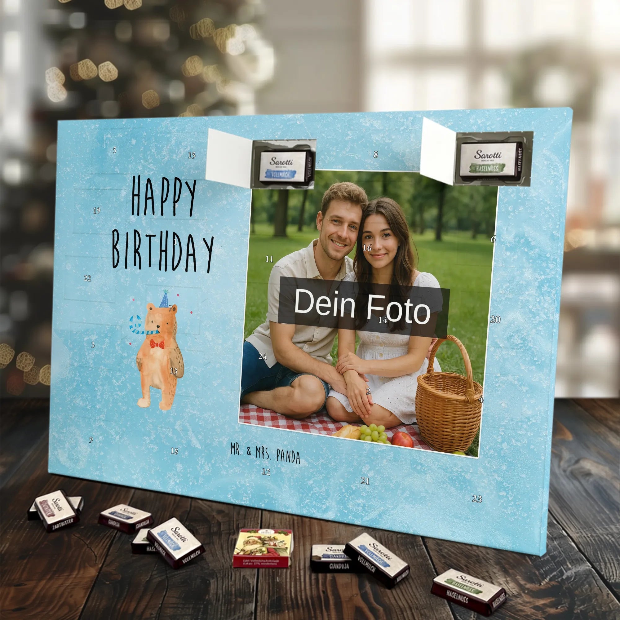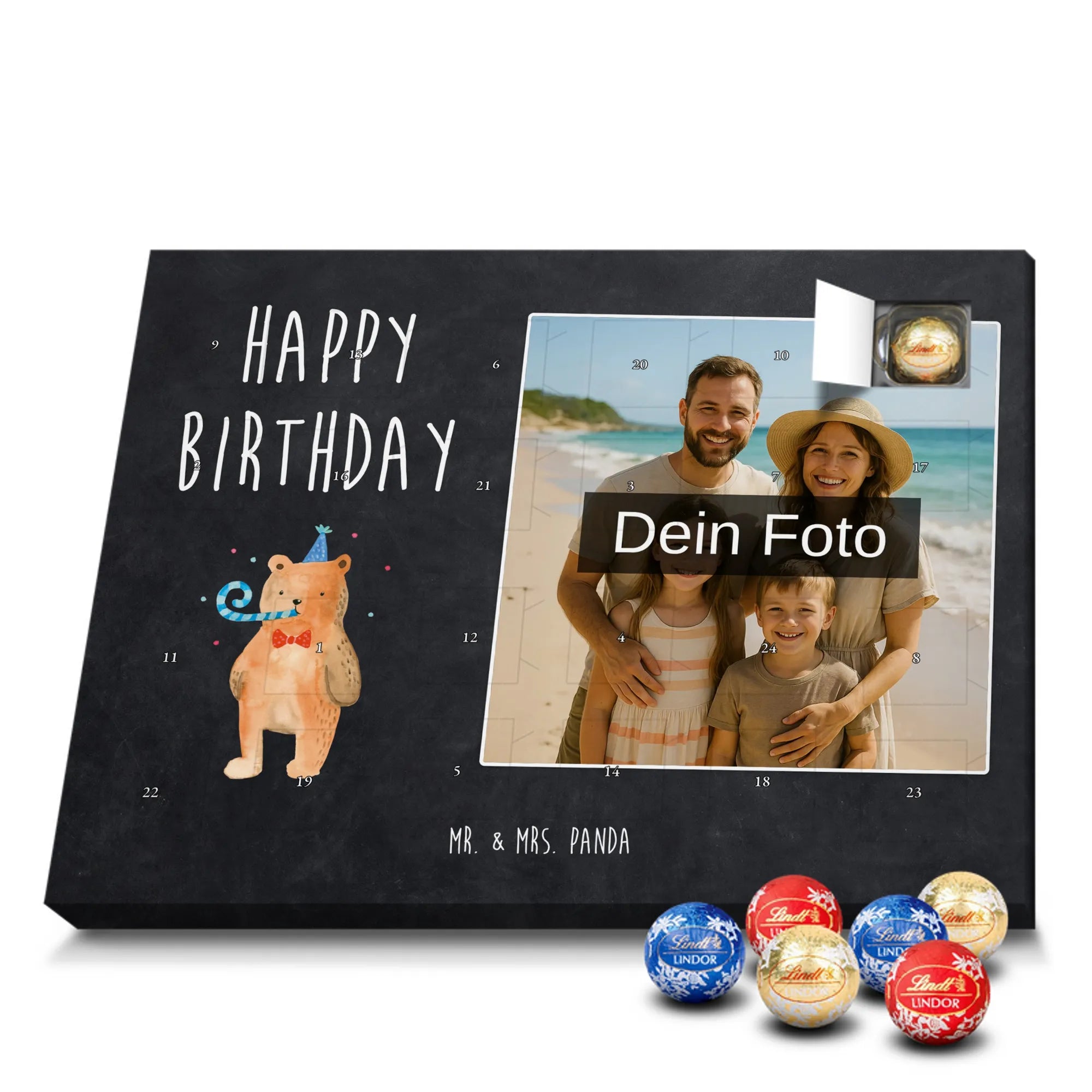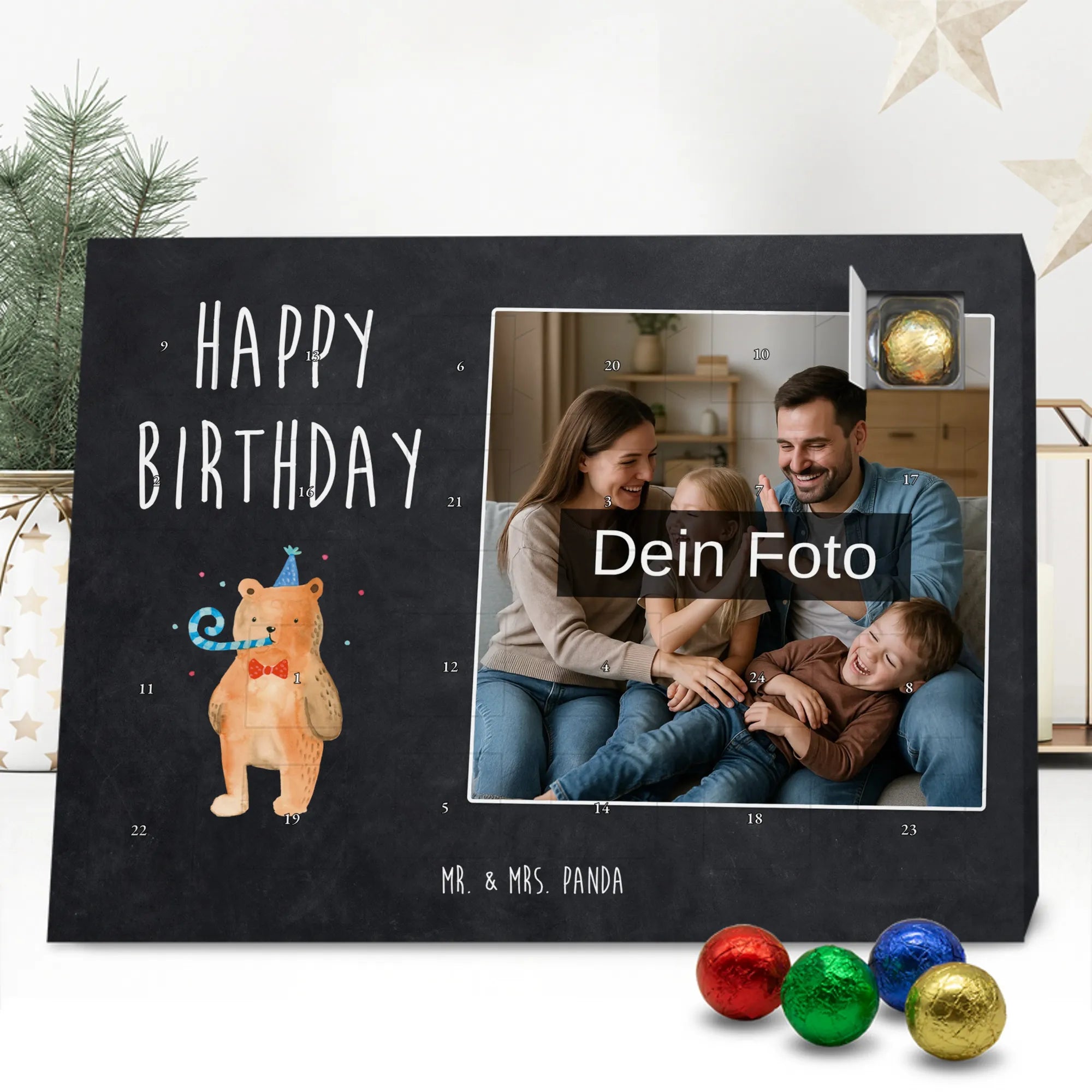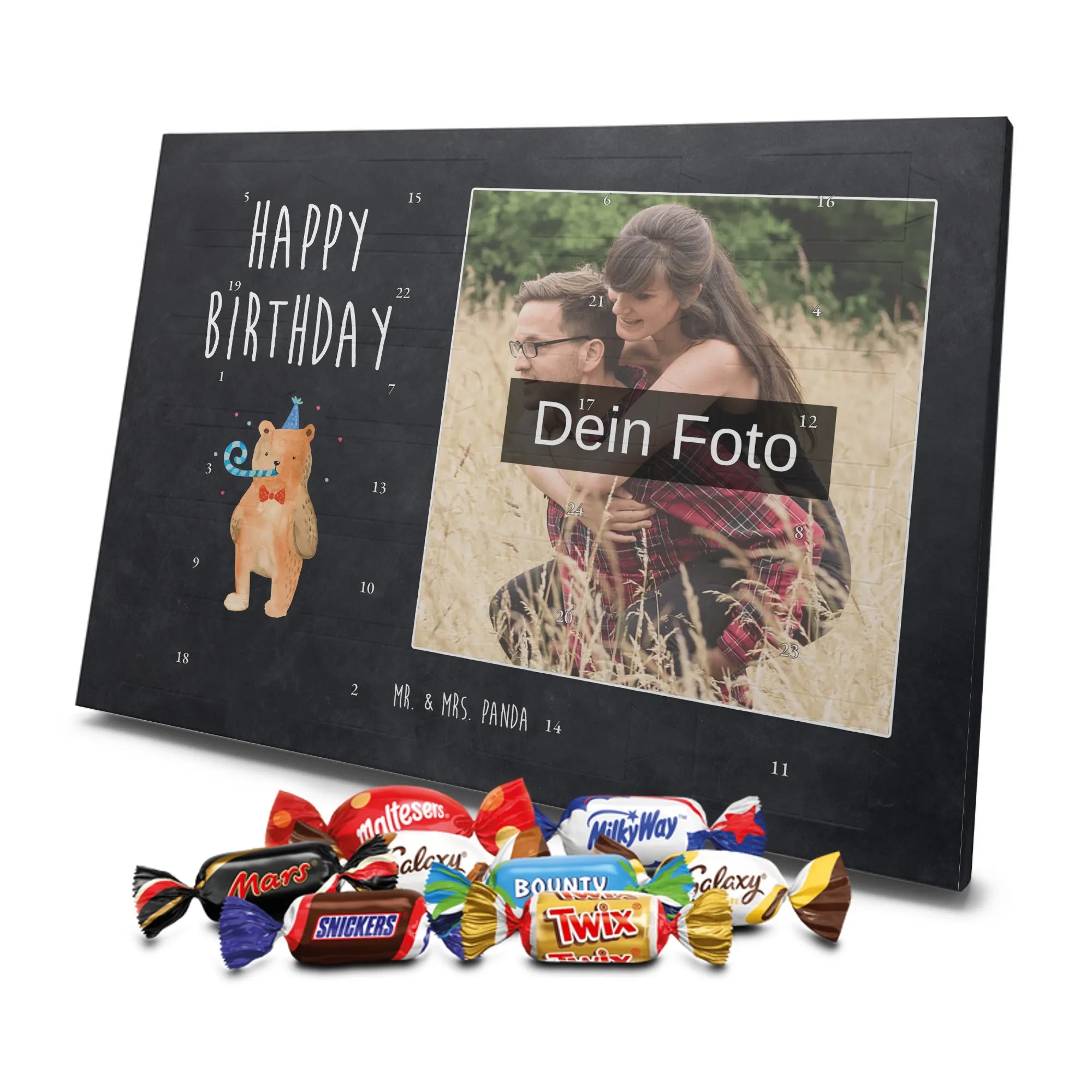 Feiere Geburtstag mit Herz und Süße! Unser Personalisierter Schoko Foto Adventskalender im niedlichen Birthday Bär Design von Mr. & Mrs. Panda ist das ideale Geschenk für alle Bärenfans und Teddybär-Liebhaber. Du kannst ein persönliches Foto einfügen und den Kalender so zu einem ganz besonderen Geburtstagsgeschenk machen. Der fröhliche Bär mit bunten Luftballons und der Slogan „Happy Birthday“ verleiht dem Kalender eine fröhliche, festliche Note. 🎉