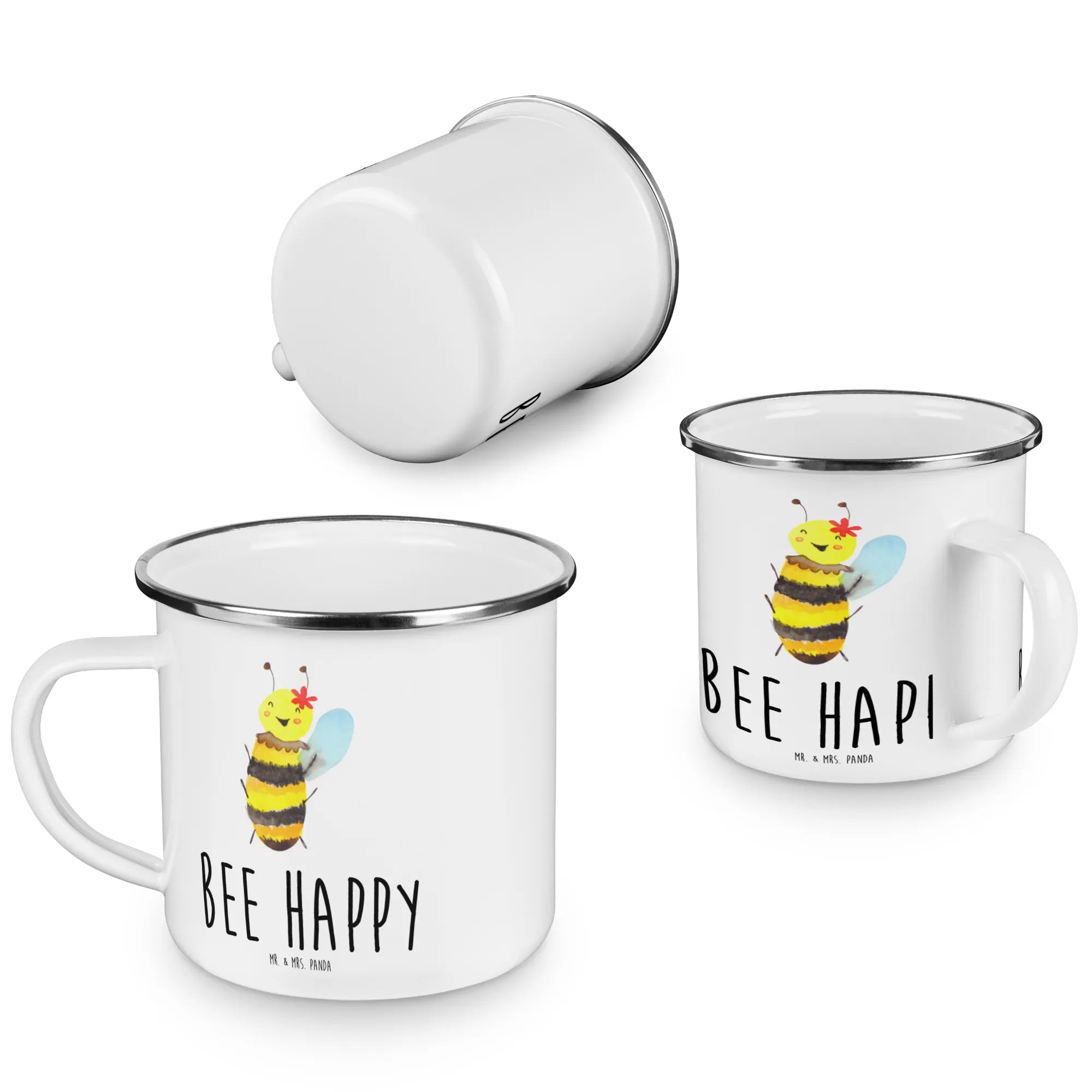 Made from durable, scratch-resistant enamel, this mug is built to withstand outdoor adventures, yet is lightweight enough to carry on your backpacking journey. It's not just a camping cup, but a symbol of joy and positivity! The delightful motif of the Happy Bee, complete with a cute little flower on her head, is sure to put a smile on your face and remind you to "Bee Happy!" every time you take a sip.