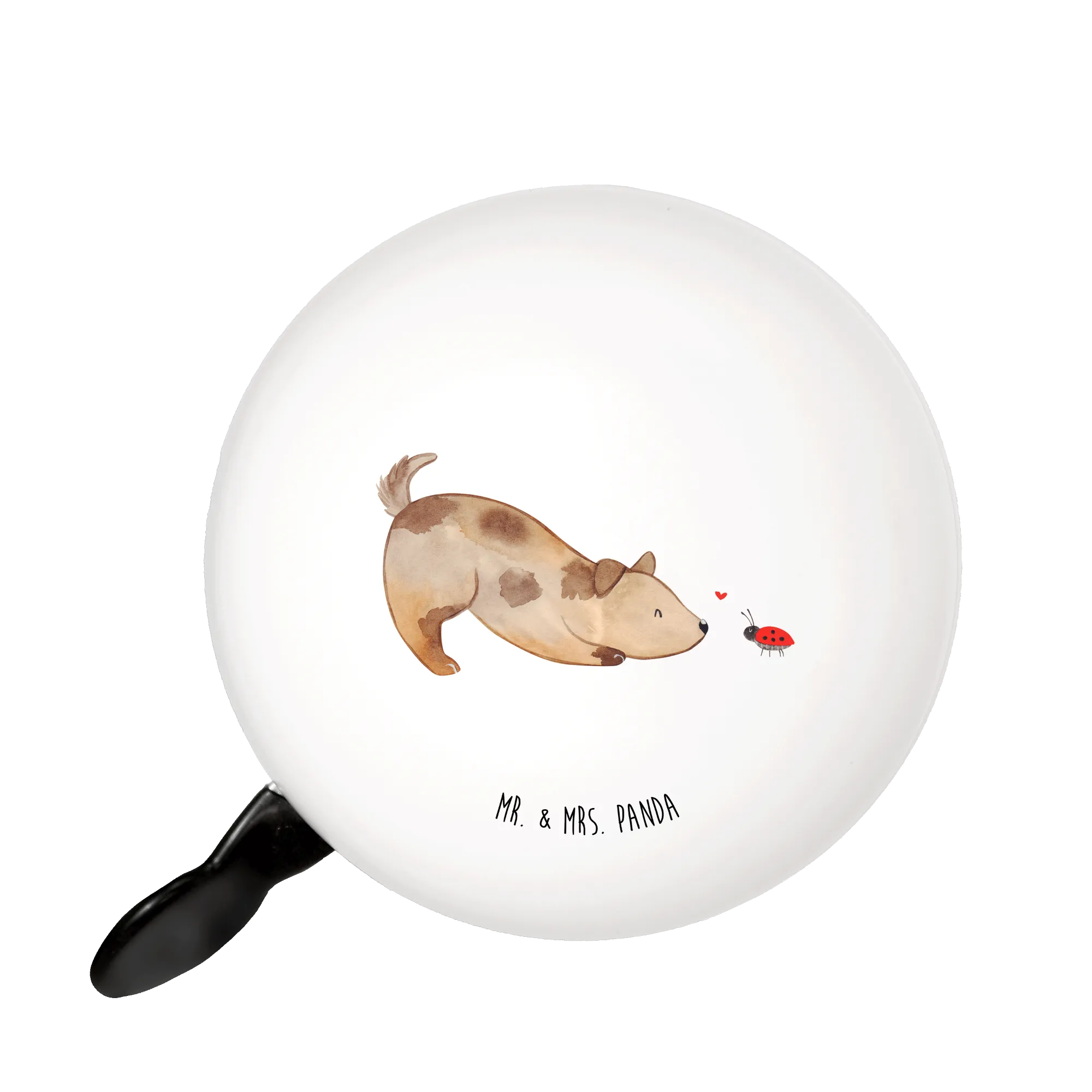 Introducing the delightful Mr. & Mrs. Panda Bicycle Bell featuring an adorable motif of a dog with a ladybird, part of our enchanting Dog Collection! This unique bicycle bell isn't just a practical accessory; it's a heartwarming reminder that our furry friends fill our lives with joy and laughter.