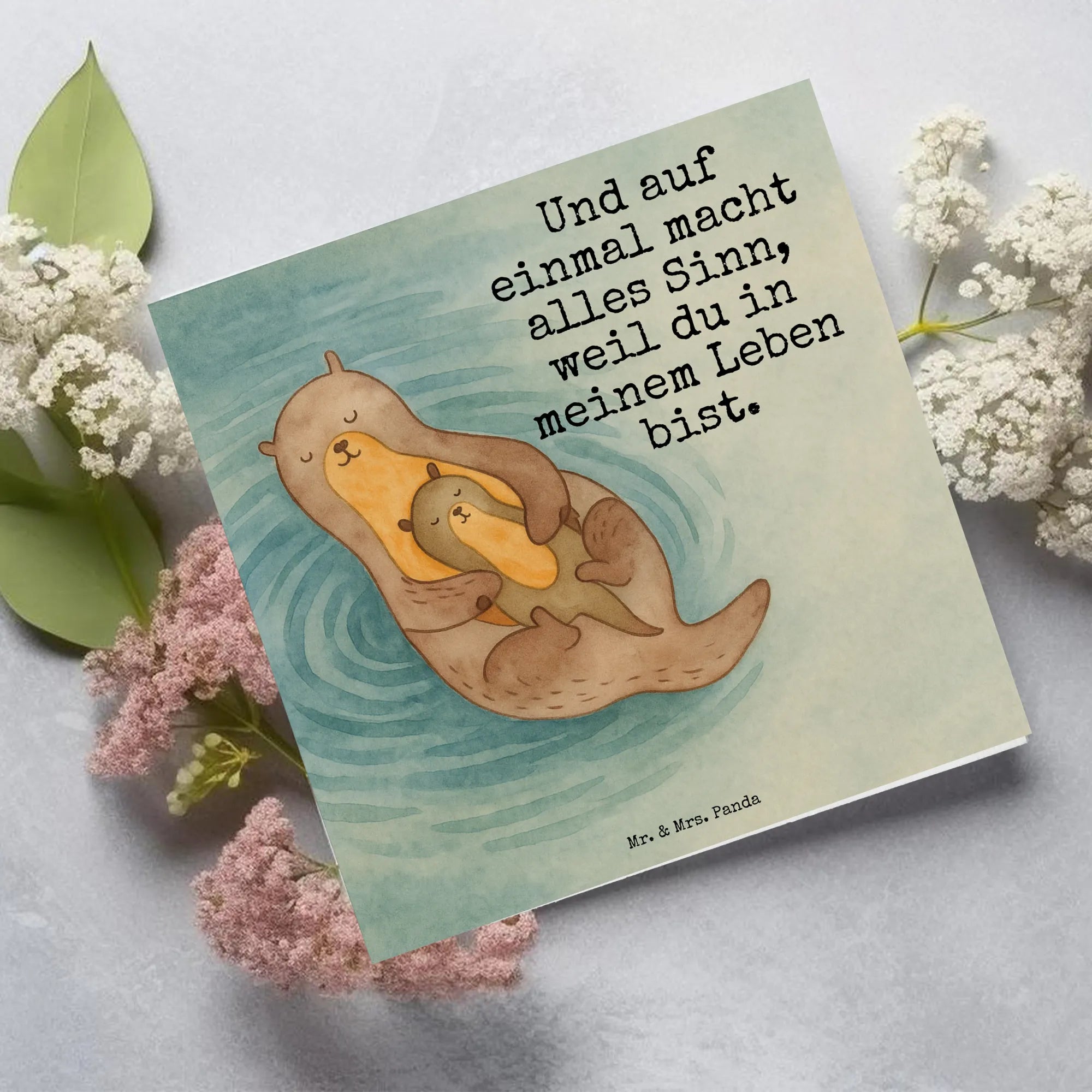 Mit der Deluxe Karte von Mr. & Mrs. Panda kannst du deine Botschaften auf ganz besondere Weise überbringen. Diese quadratische Klappkarte (140 mm x 140 mm) aus hochwertigem Karton hat eine hochglänzende Vorderseite, die mit süßen Motiven und herzlichen Sprüchen verziert ist. Die matte Innenseite lässt dir genug Platz für deine individuellen Wünsche und Grüße. Egal, ob du eine Einladung zur Hochzeit, Geburtstagsgrüße oder einfach einen lieben Gruß verschicken möchtest, diese Karte ist die perfekte Wahl. Sie kommt in einem edlen Umschlag, der das Geschenk noch schöner macht. Lass dein Herz sprechen und erfreue deine Freunde und Familie mit dieser einzigartigen Glückwunschkarte!