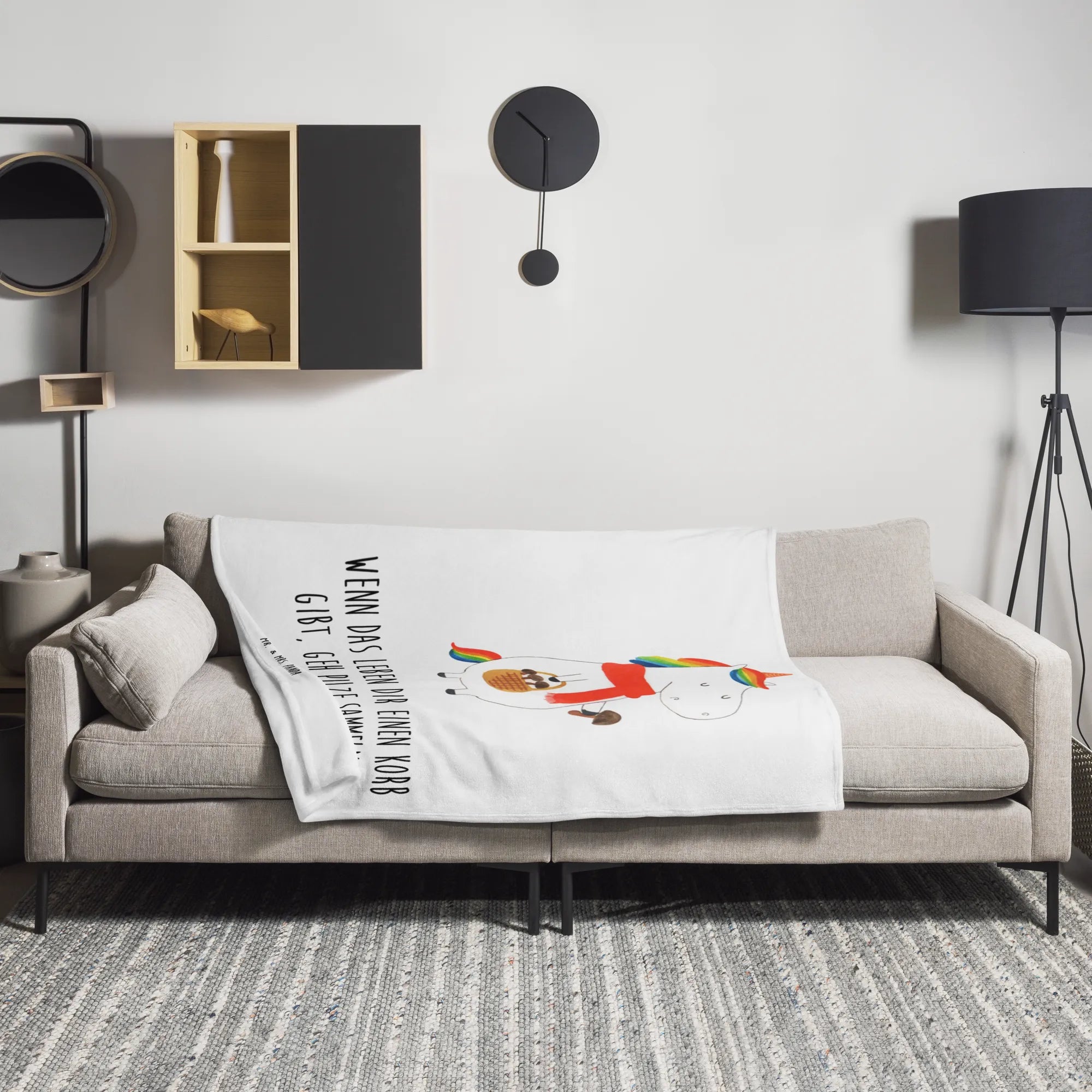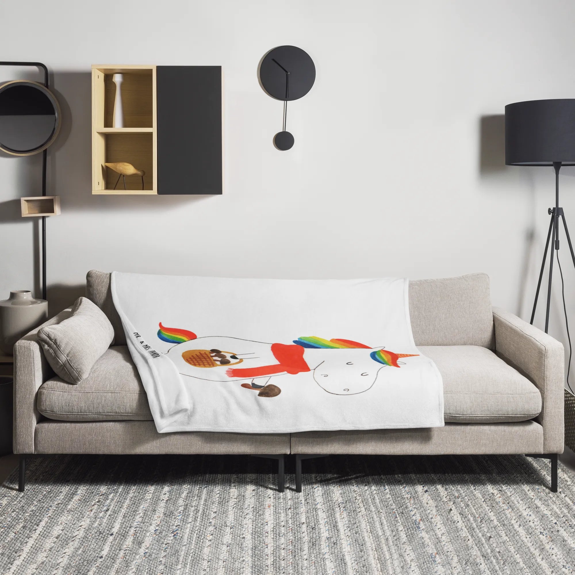 Ein Hauch von Magie für dein Zuhause: Unsere Kuscheldecke „Einhorn Pilz“ aus der Einhorn - Kollektion von Mr. & Mrs. Panda vereint niedliches Design und warmen Komfort. Das liebevoll von Mrs. Panda handgezeichnete Motiv zeigt ein entzückendes Einhorn beim Pilze sammeln und bringt mit strahlenden Farben sofort gute Laune in dein Wohnzimmer oder Kinderzimmer.