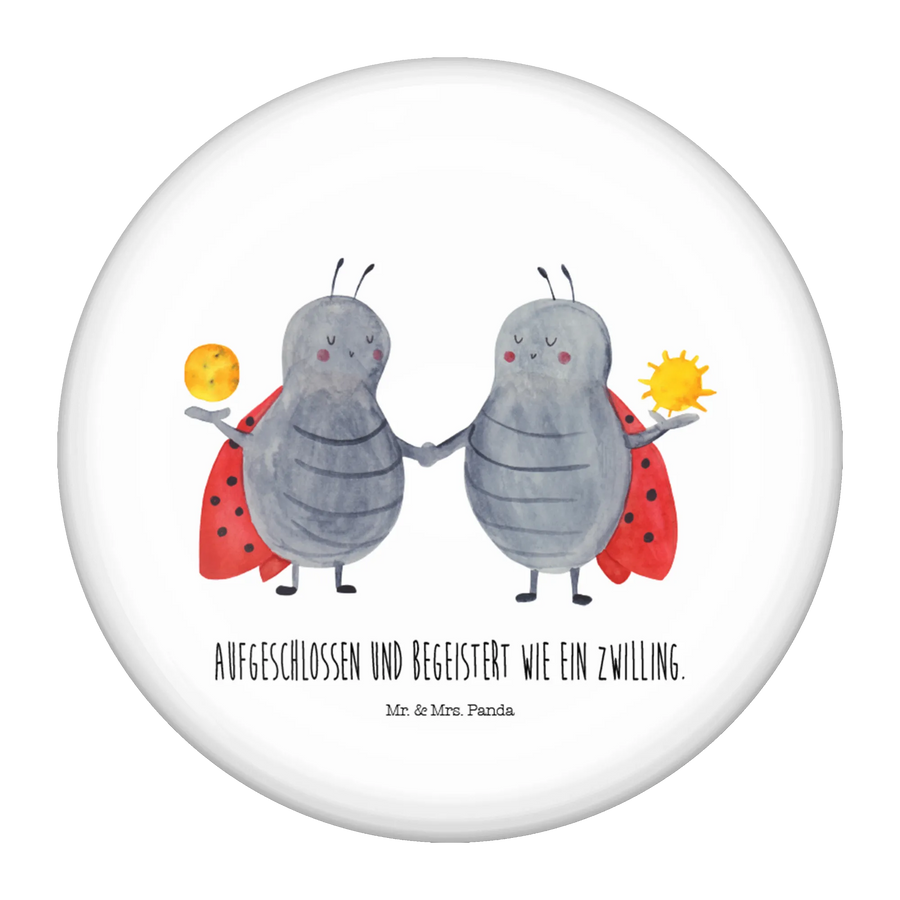 Whether it’s for a birthday in May or June, this button makes for a thoughtful twin gift or a delightful piece of flair to attach to bags, jackets, or hats. The lighthearted slogan "Aufgeschlossen und begeistert wie ein Zwilling" (Open-minded and enthusiastic like a twin) reflects the joyous spirit of Gemini, adding a hint of fun to any outfit.