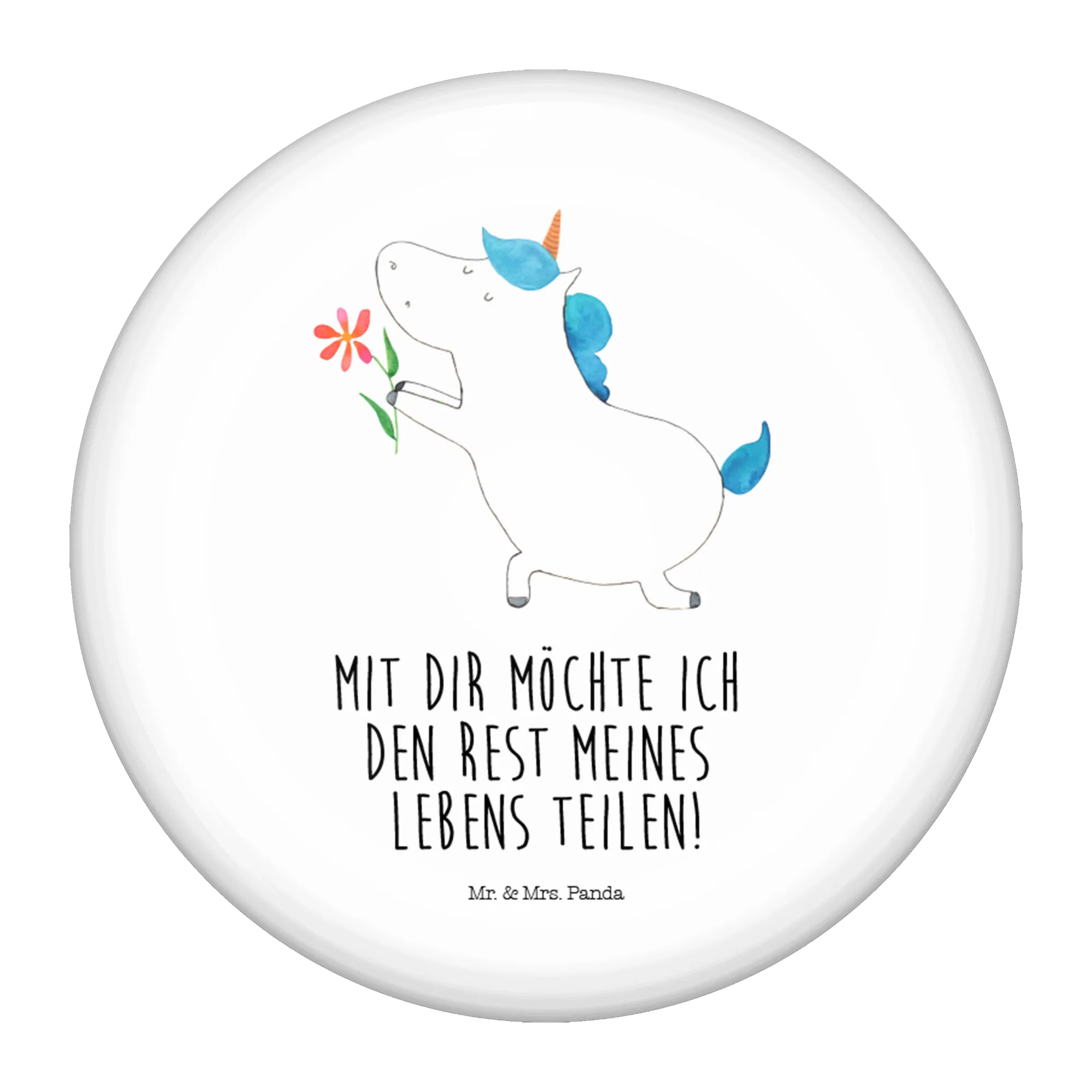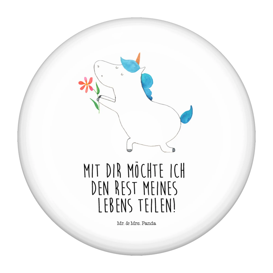 This charming 50mm button features an adorable unicorn, gracefully kneeling as it presents a flower. It's a heartwarming symbol of affection and thoughtfulness, making it an ideal gift for couples in love.