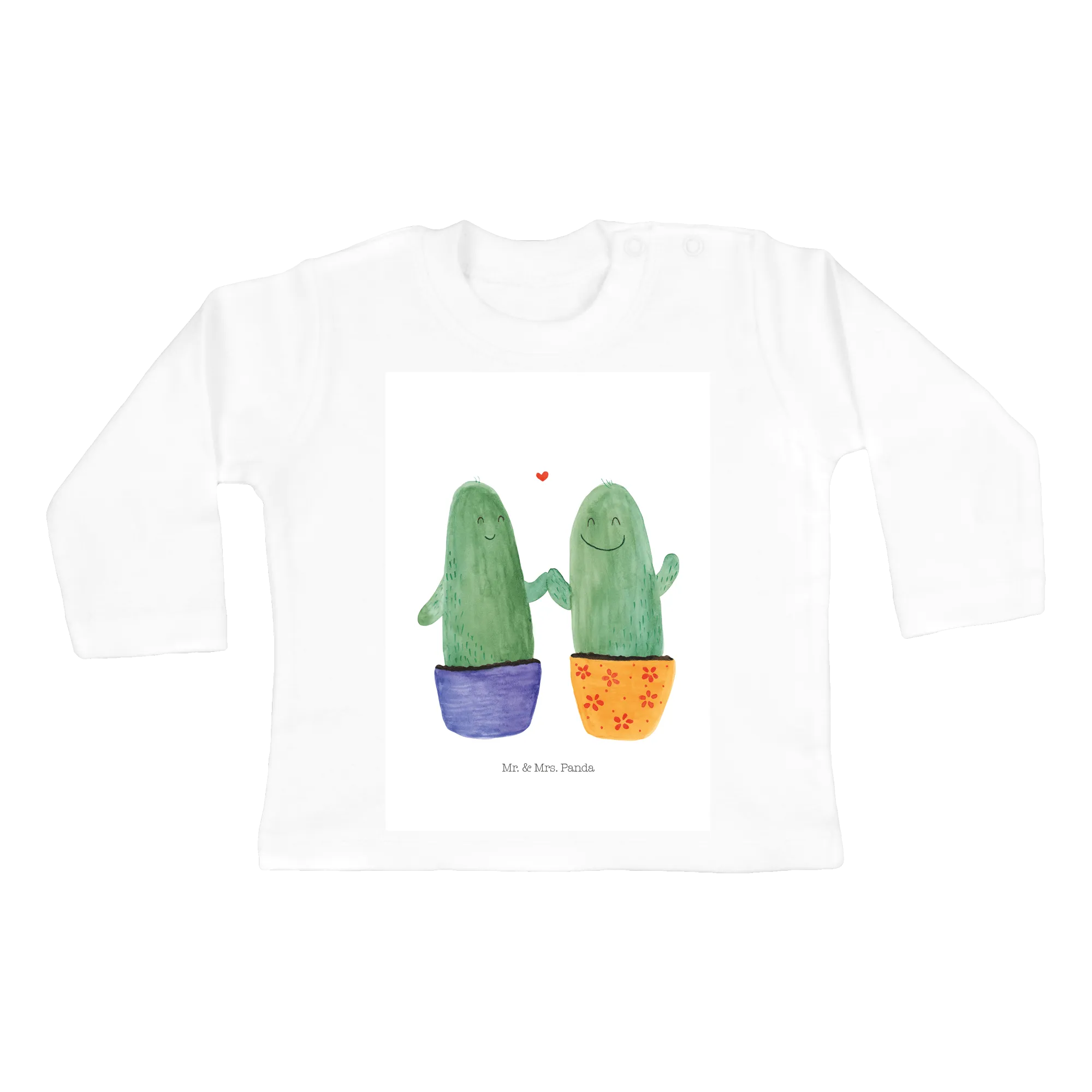 With a design featuring two delightful cactuses gazing at each other, this long-sleeve shirt beautifully embodies the theme of love in every stitch. Hand-painted in watercolor by Mrs. Panda, the cheerful cactuses are not only cute but also symbolize resilience and affection. They remind us that, like these little plants, love can thrive anywhere, even when things get prickly!