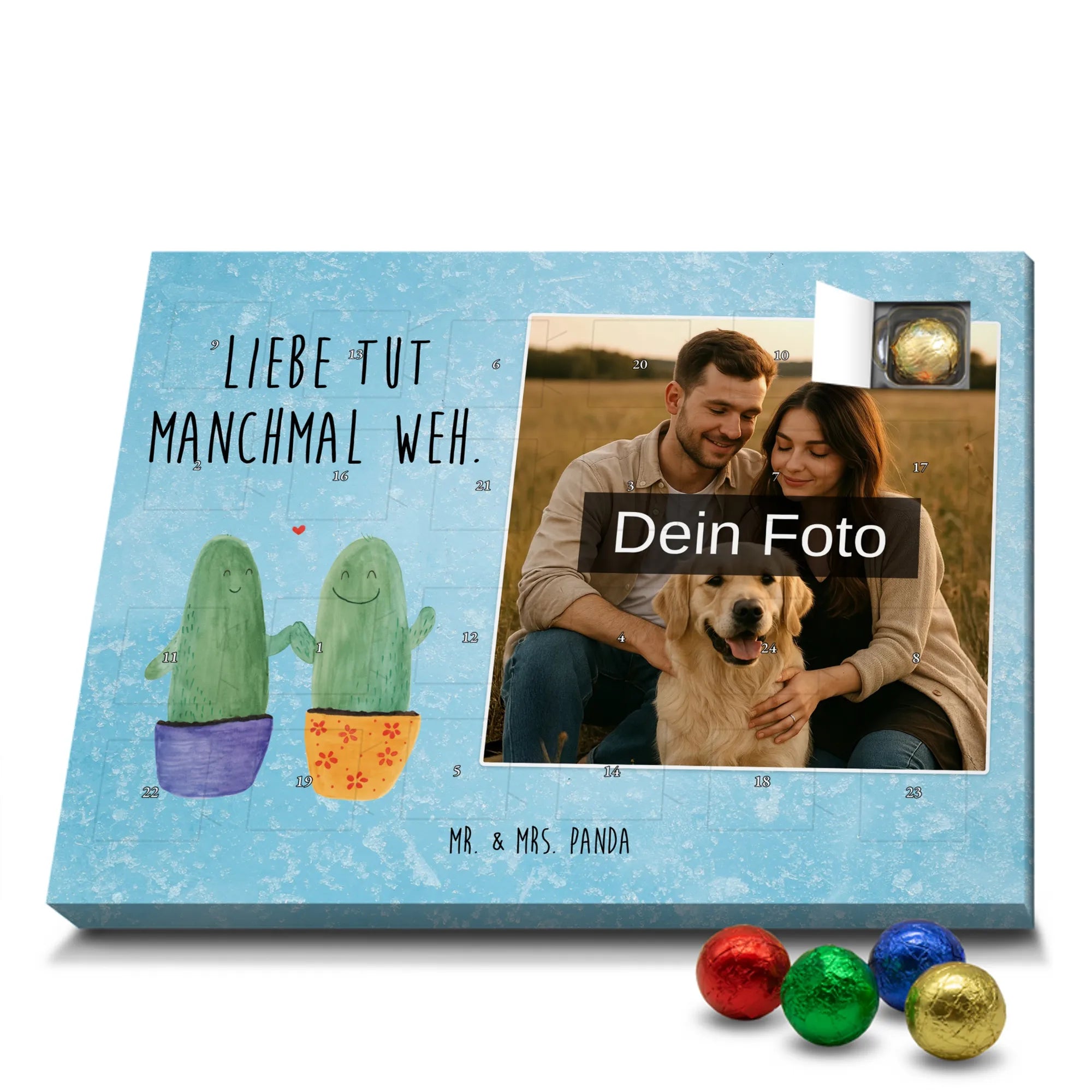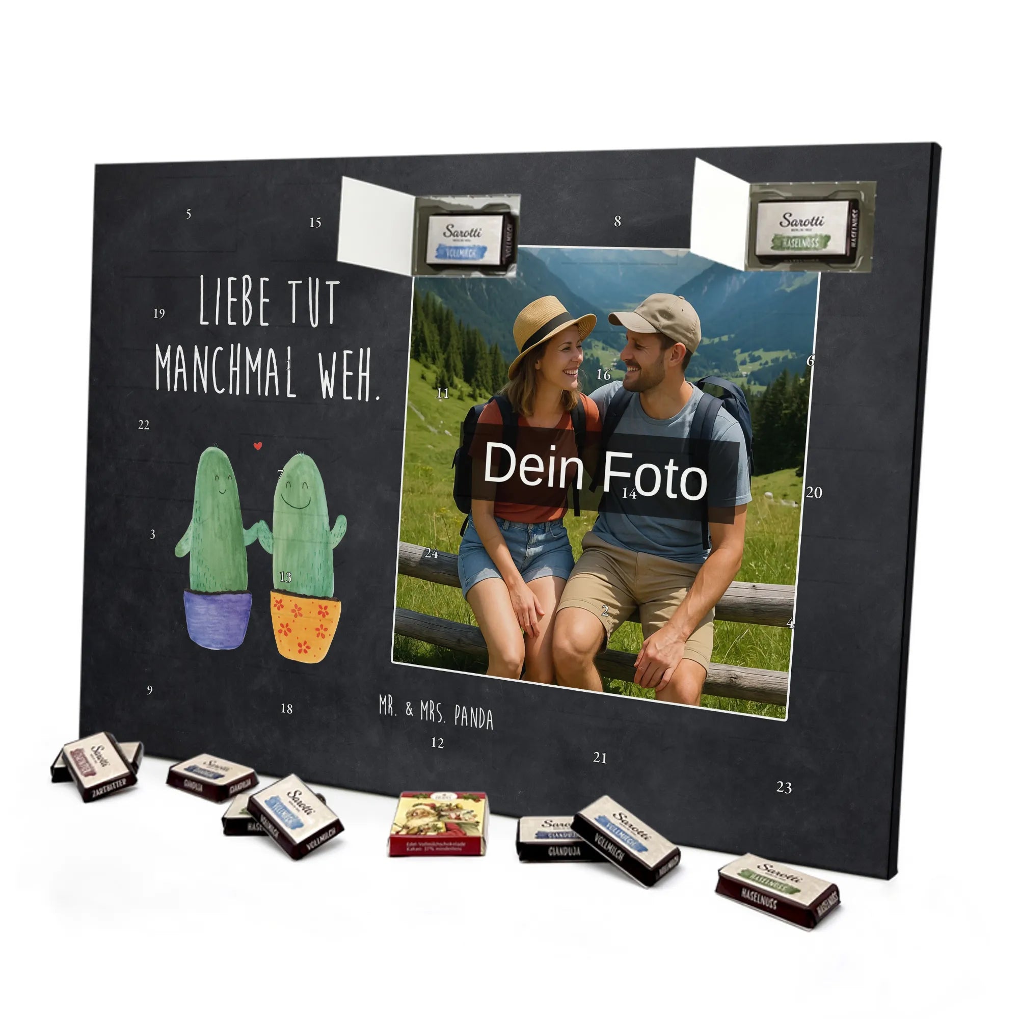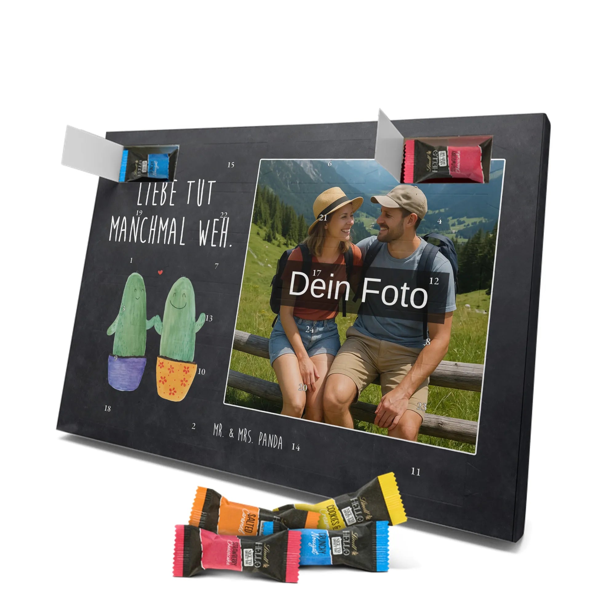 Personalisierter Schoko Foto Adventskalender „Kaktus Liebe“ – das liebevolle Adventsgeschenk von Mr. & Mrs. Panda, das Schokolade, Persönlichkeit und ein Augenzwinkern vereint. Perfekt für Paare, Verliebte, Verlobte oder Freunde, die eine süße und leicht ironische Liebesbotschaft mögen: „Liebe tut manchmal weh.“