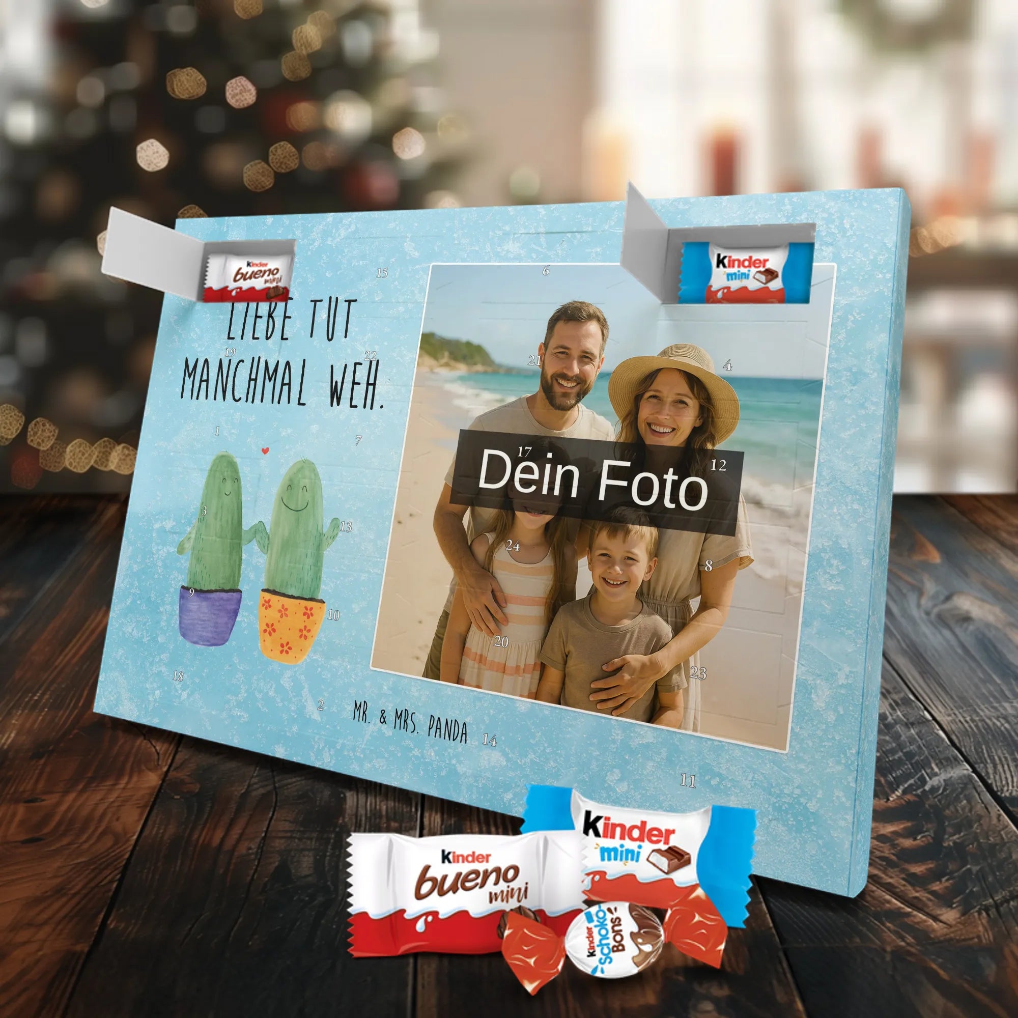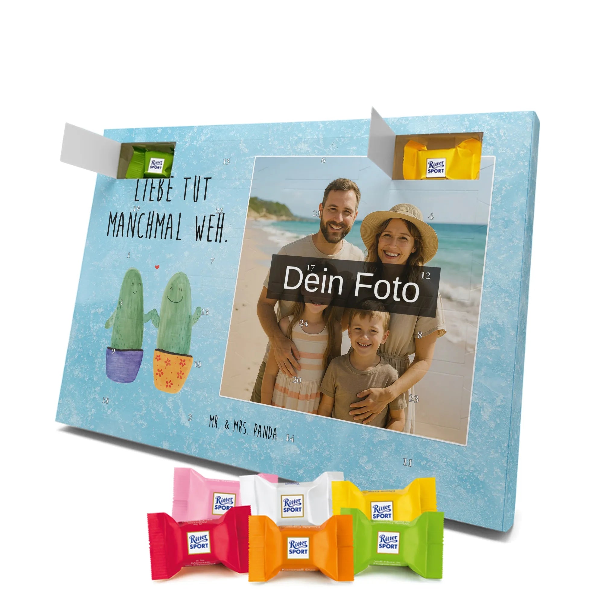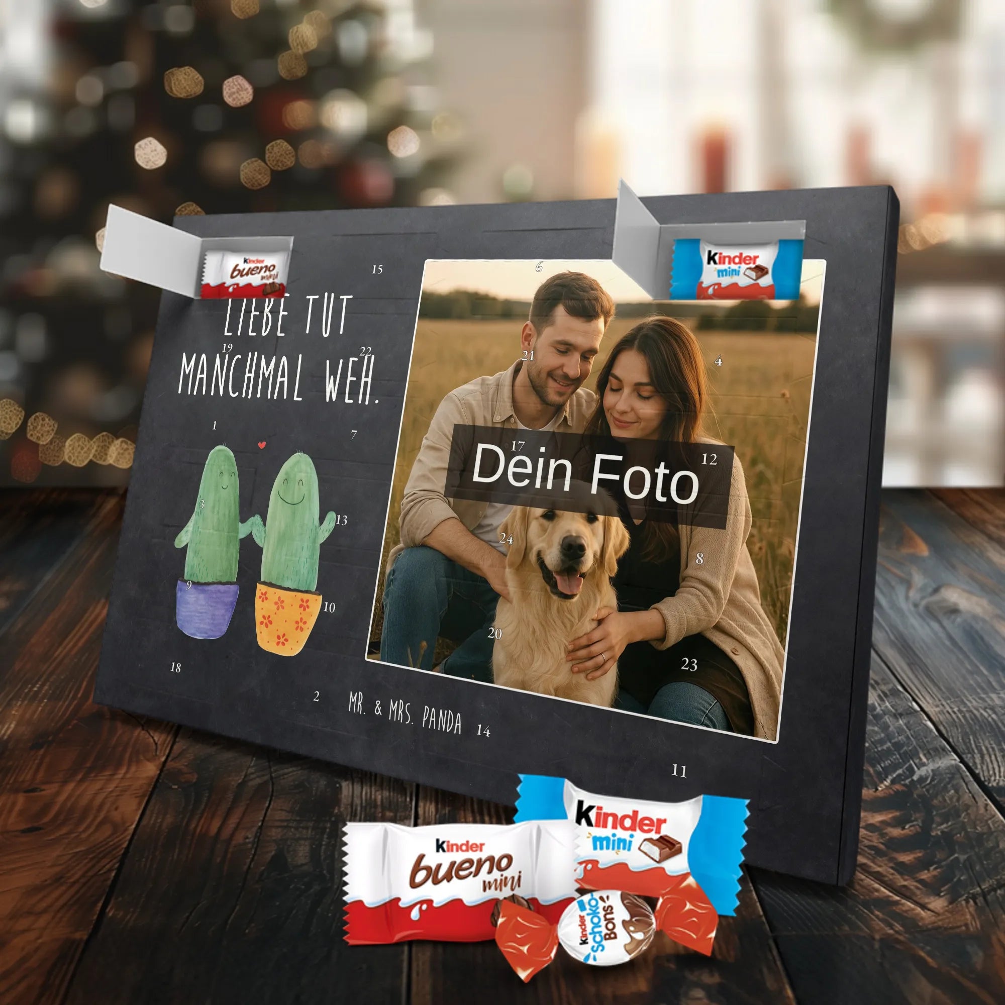 Personalisierter Schoko Foto Adventskalender „Kaktus Liebe“ – das liebevolle Adventsgeschenk von Mr. & Mrs. Panda, das Schokolade, Persönlichkeit und ein Augenzwinkern vereint. Perfekt für Paare, Verliebte, Verlobte oder Freunde, die eine süße und leicht ironische Liebesbotschaft mögen: „Liebe tut manchmal weh.“