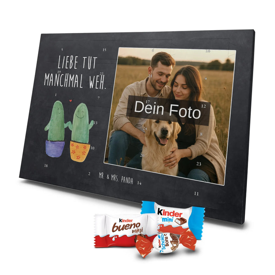 Verschenke Aufmerksamkeit, Humor und Schokolade – mit dem personalisierten Schoko Foto Adventskalender „Kaktus Liebe“ von Mr. & Mrs. Panda. Ein liebevoller Liebesbeweis für die Adventszeit.