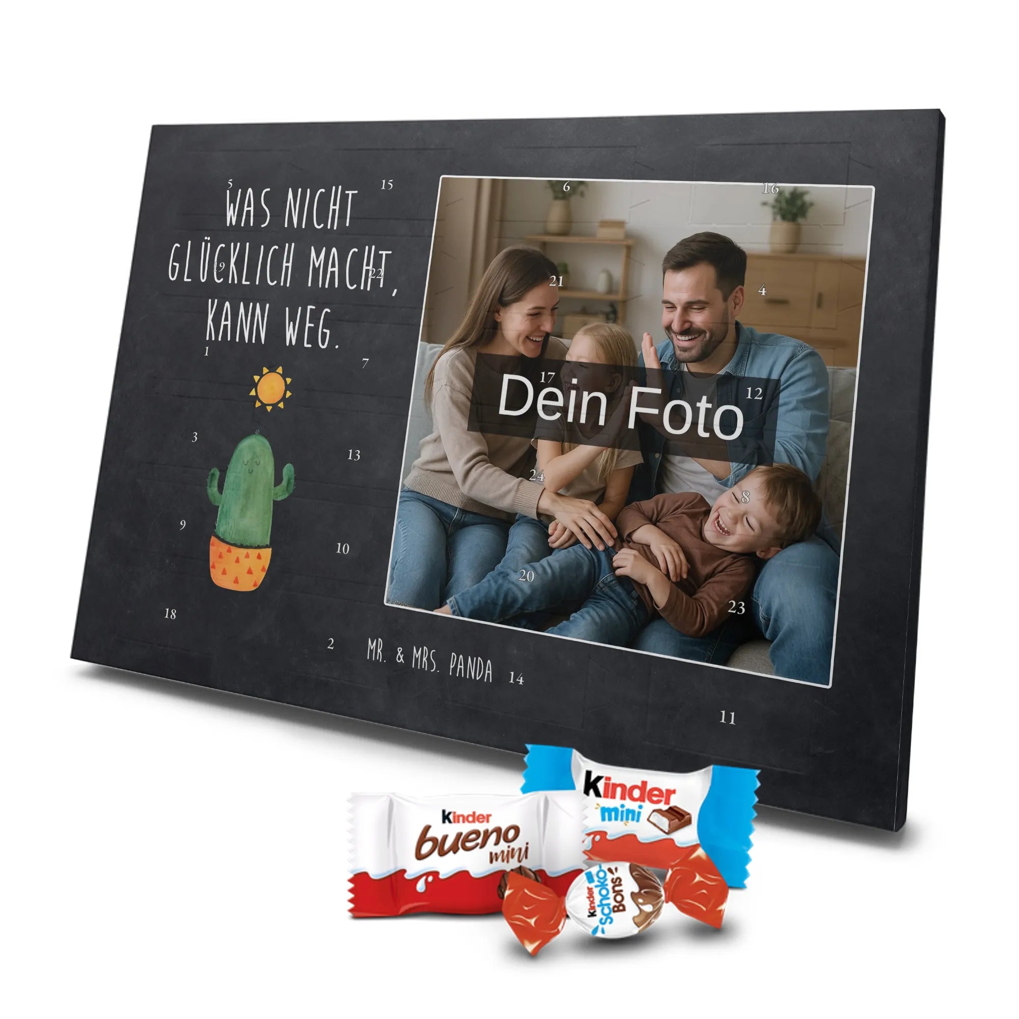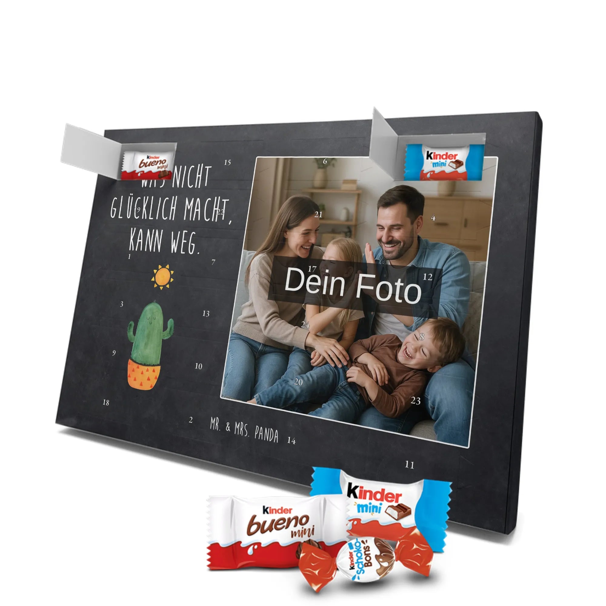 Personalisierter Schoko Foto Adventskalender von Mr. & Mrs. Panda – ein liebevoll gestaltetes Geschenk, das Vorfreude und Genuss vereint. In diesem personalisierten Schoko Foto Adventskalender kannst du dein Lieblingsfoto einsetzen und so jeden Tag im Dezember mit einem kleinen Lächeln öffnen. Der Kalender ist bedruckt mit unseren typischen Mr. & Mrs. Panda Motiven und süßen Sprüchen, die perfekt zu deinem Foto passen. Achte bitte bei der Bildauswahl auf hohe Auflösung, damit der Druck klar und brillant wird. Wähle einen passenden Bildausschnitt, damit keine wichtigen Details abgeschnitten werden. Lade nur Bilder hoch, bei denen du die Bildrechte besitzt oder die Zustimmung der abgebildeten Personen vorliegt. Die Fotos werden weder nachbearbeitet noch zugeschnitten; Rücknahme bei personalisierten Foto-Artikeln ist ausgeschlossen. Die Druckqualität ist brillant mit einer seidenmatten Oberflächenveredelung und bedruckten Seitenflächen für ein rundum schönes Erscheinungsbild. Maße: 355 mm x 245 mm x 11 mm. Praktisch: Du kannst den Adventskalender entweder aufstellen oder an die Wand hängen. Gefüllt ist der Kalender mit kinder® Schokolade – genauer: kinder® Schoko-Bons, kinder® Bueno mini und kinder® Schokolade mini. Bitte beachte: Um das beste Druckergebnis zu erzielen, lade ein hochwertiges Foto hoch und kontrolliere vor dem Bestellen den Bildausschnitt. Dieser Adventskalender ist das perfekte, persönliche Geschenk für Familie, Freunde oder für dich selbst – voller Liebe, süßer Überraschungen und dem unverwechselbaren Mr. & Mrs. Panda Charme.