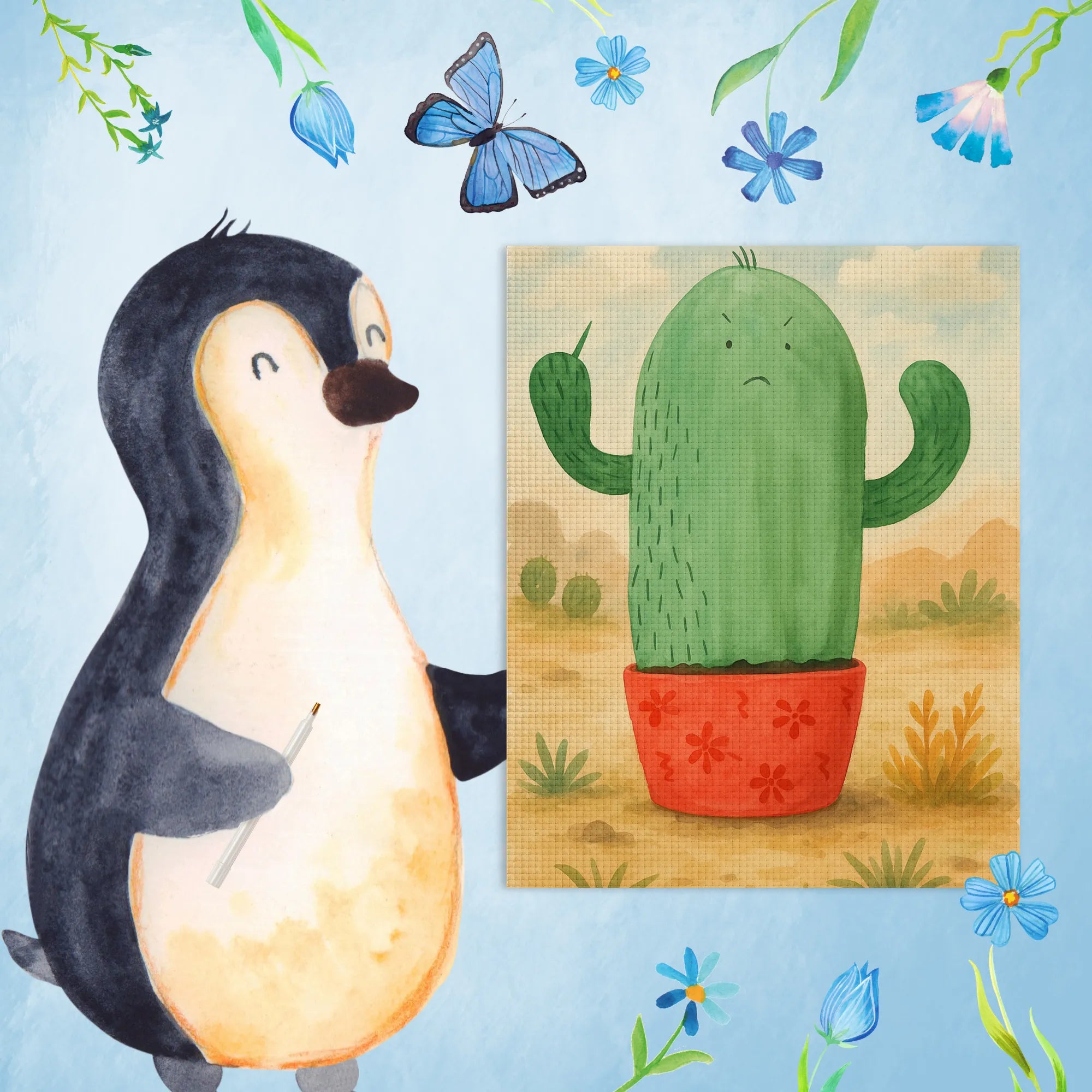 Der wütende Kaktus ist nicht nur ein Motiv, sondern auch ein wahrer Stimmungsaufheller für all die Alltagssituationen, in denen wir einfach mal das Gefühl haben, dass genug genug ist. Seine süße, wütende Faust, die energetisch nach oben zeigt, bringt all die kleinen Ärgernisse des Büroalltags und der Schulzeit auf den Punkt. Er ist der perfekte Begleiter, wenn dein Kollege mal wieder zu laut redet oder die Aufgaben einem über den Kopf wachsen. dieser Kaktus hilft uns, die Dinge mit einem Lachen zu nehmen und uns daran zu erinnern, auch mal wütend sein zu dürfen. Seine charmante Aquarell-Umsetzung lässt ihn zudem so lebendig erscheinen, dass man ihn am liebsten sofort umarmen möchte! Hol dir ein Stück dieser Positivität und nutze den Kaktus als Erinnerung daran, mit Humor durch die stressigen Zeiten zu kommen – er wird dir helfen, die Wut in kreative Energie umzuwandeln.