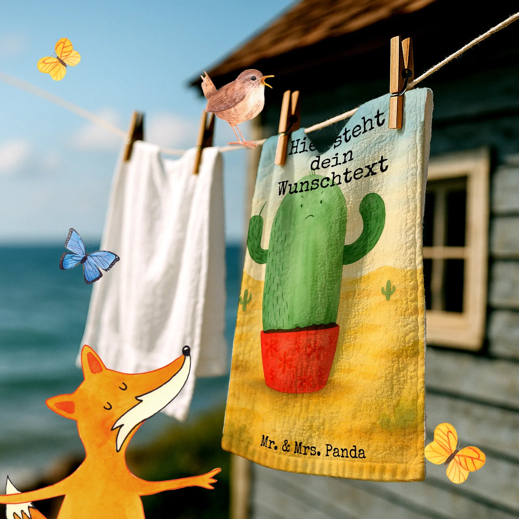 Personalisiertes Gästehandtuch „Kaktus wütend“ – das perfekte kleine Geschenk für Dein Gäste-WC, Badezimmer oder für Gastgeber. Ein frecher Kaktus, liebevoll als Aquarell von Mrs. Panda gezeichnet, reckt die Faust und trägt den Slogan „Nicht ärgern. Nur wundern.“ Das Motiv aus der Kaktus - Kollektion bringt gute Laune und Persönlichkeit in jeden Raum.