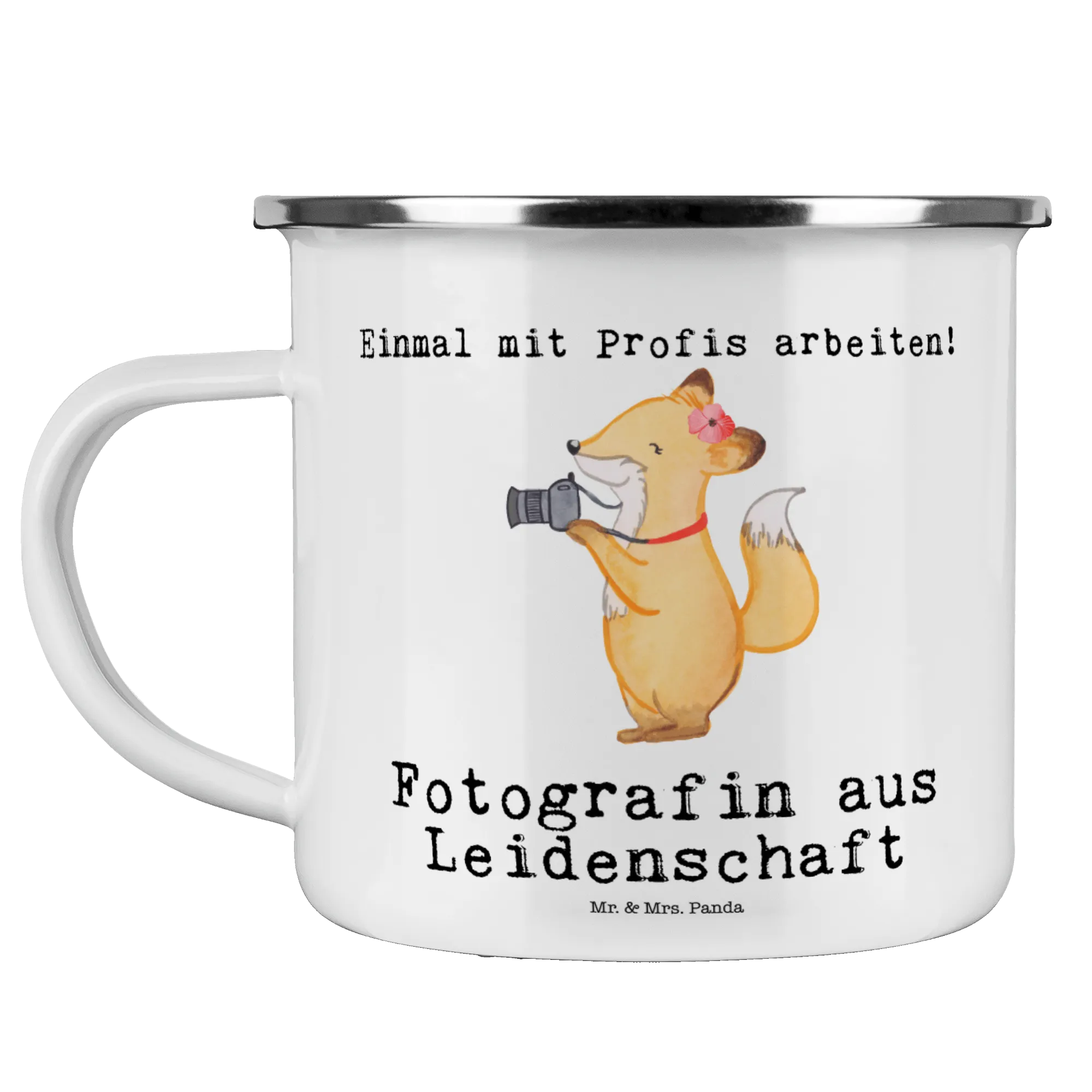 Enamel camping mug female photographer Passion