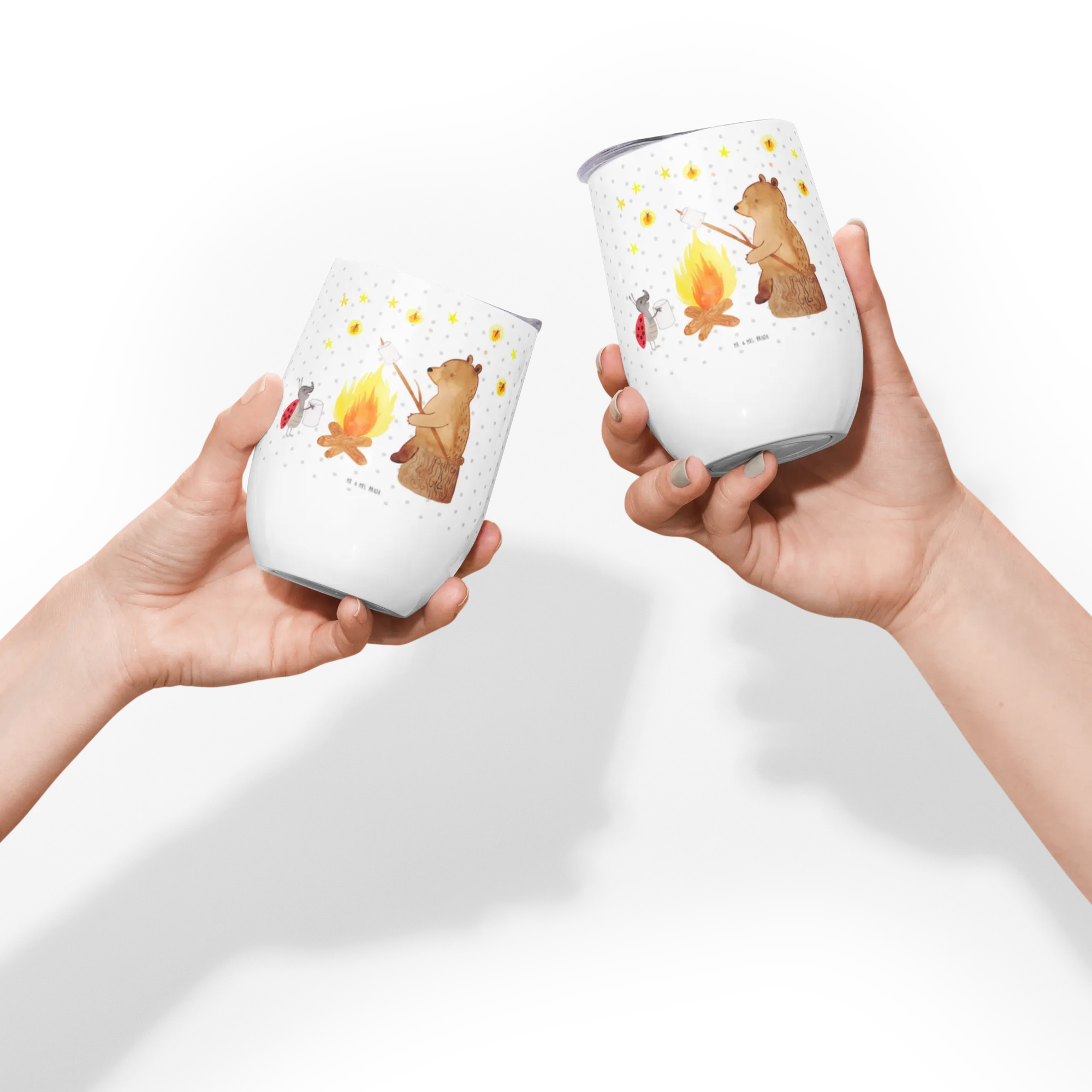Wine cup Bear & Ladybird campfire - with a saying