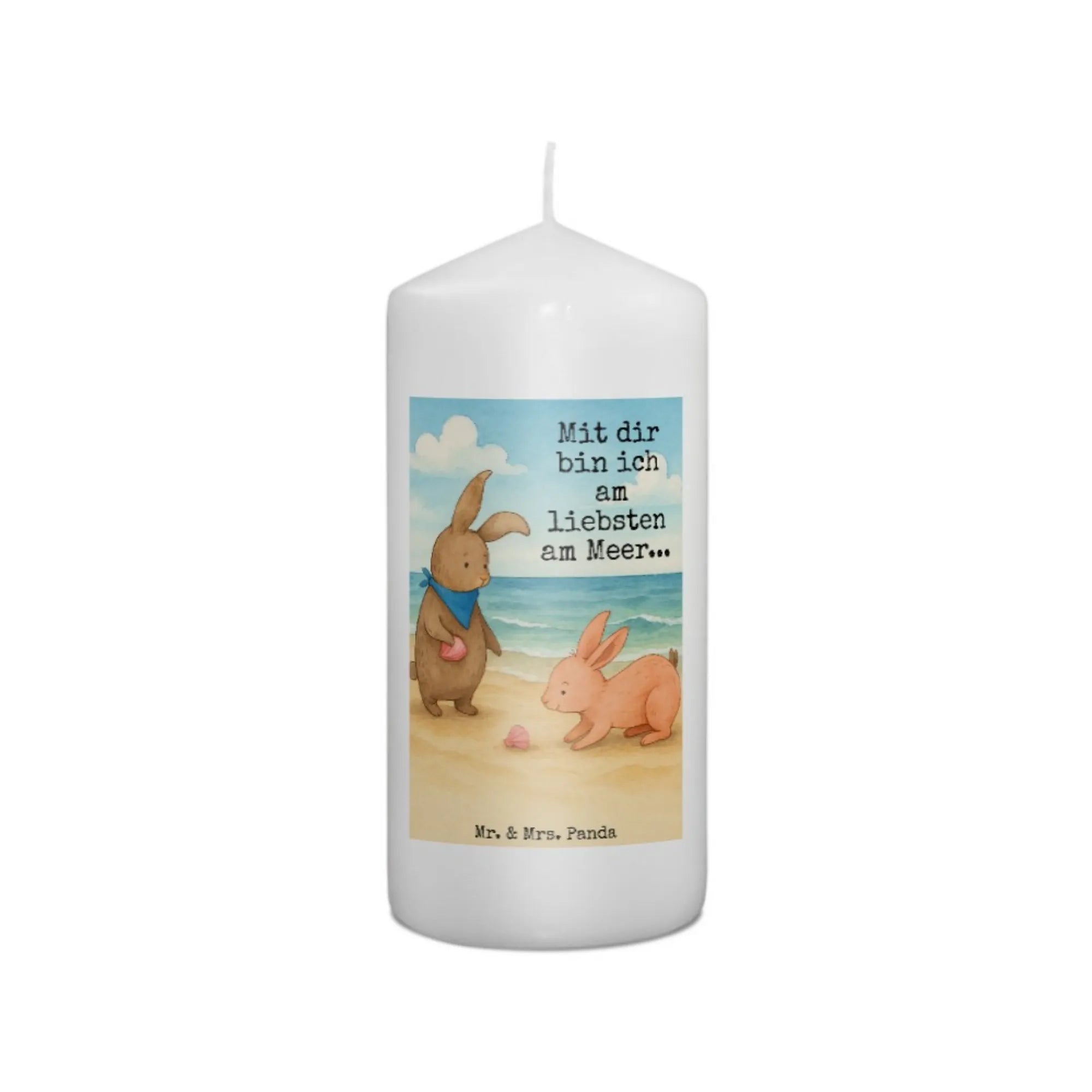 Candle Bunnies with seashell Design - 19 x 8 cm - with saying