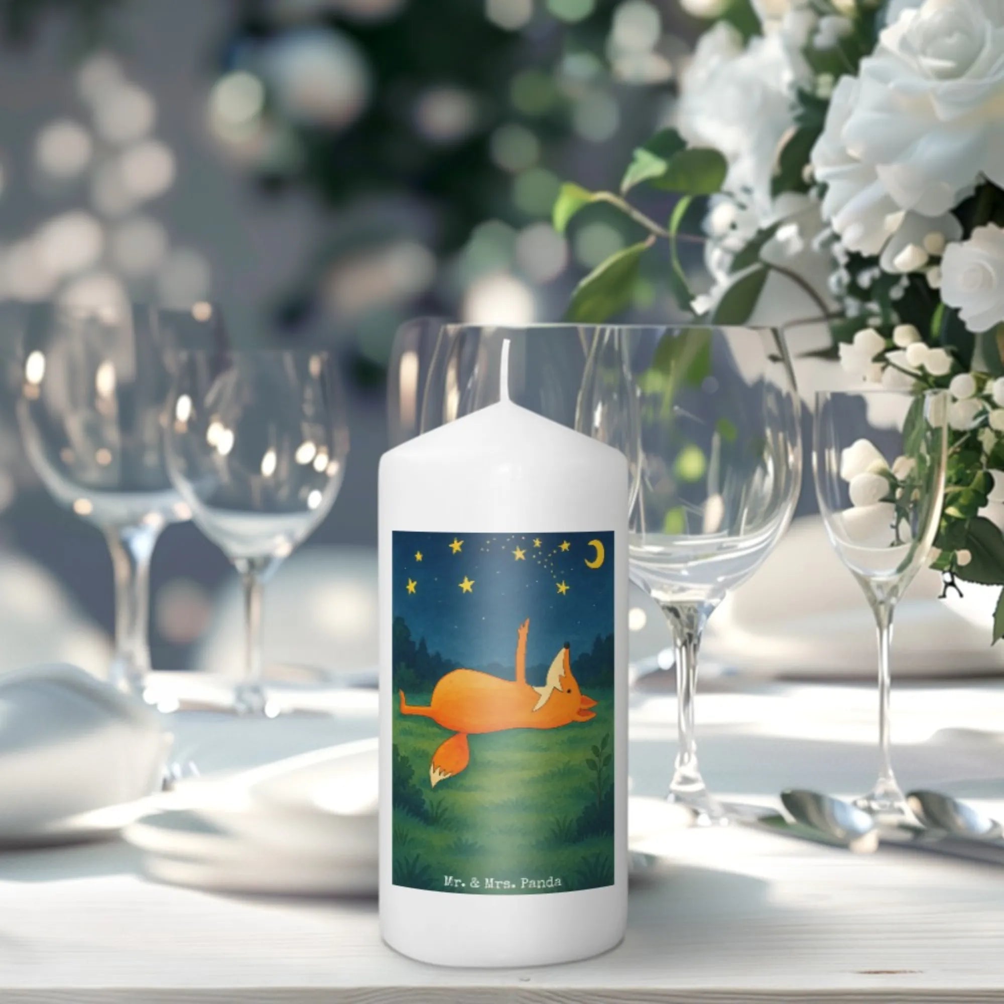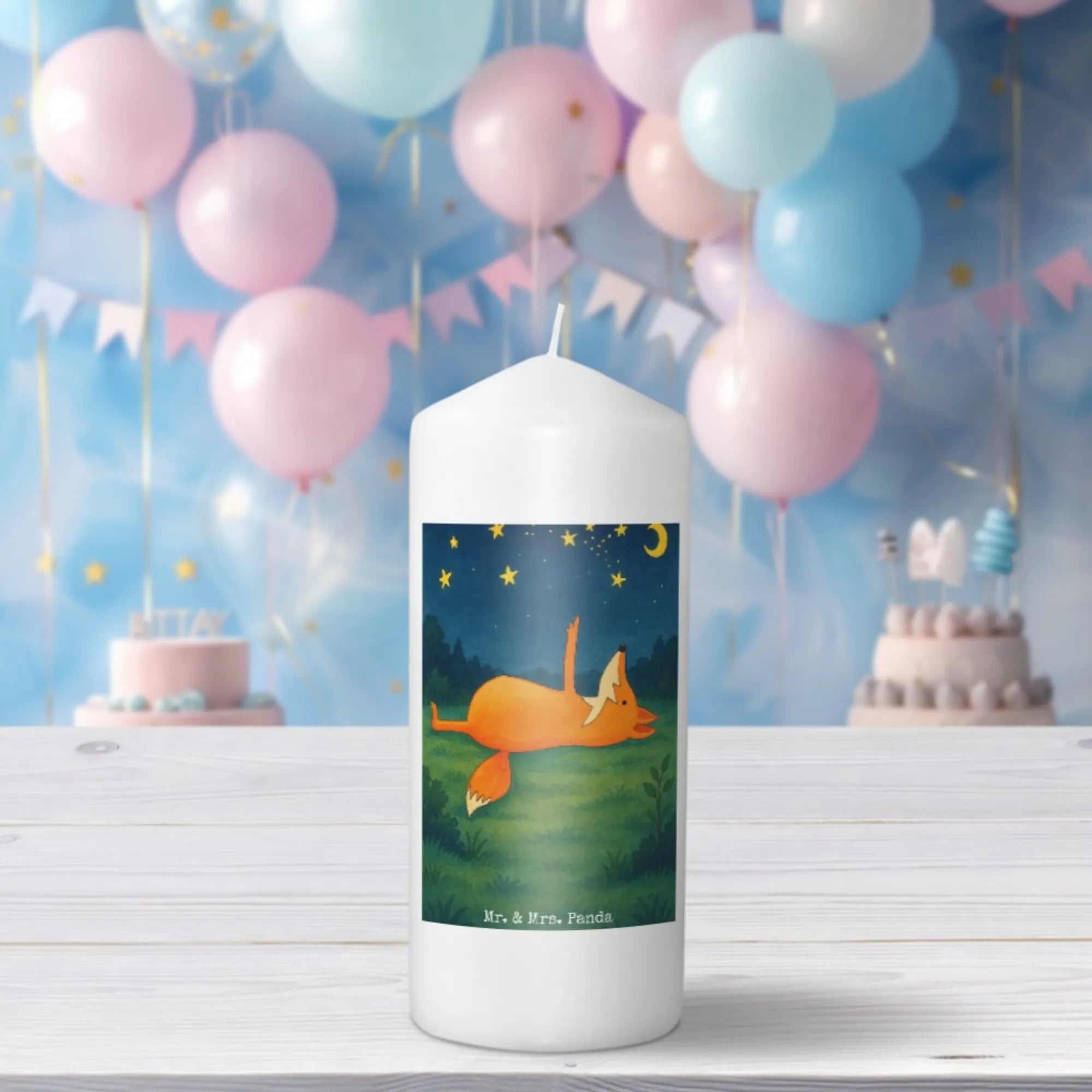 Candle Fox Stars Design - 15 x 7 cm - with saying