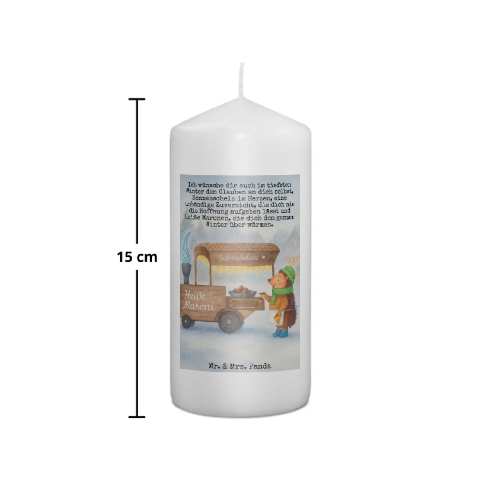 Candle hedgehog Chestnuts Design - 15 x 7 cm - with saying