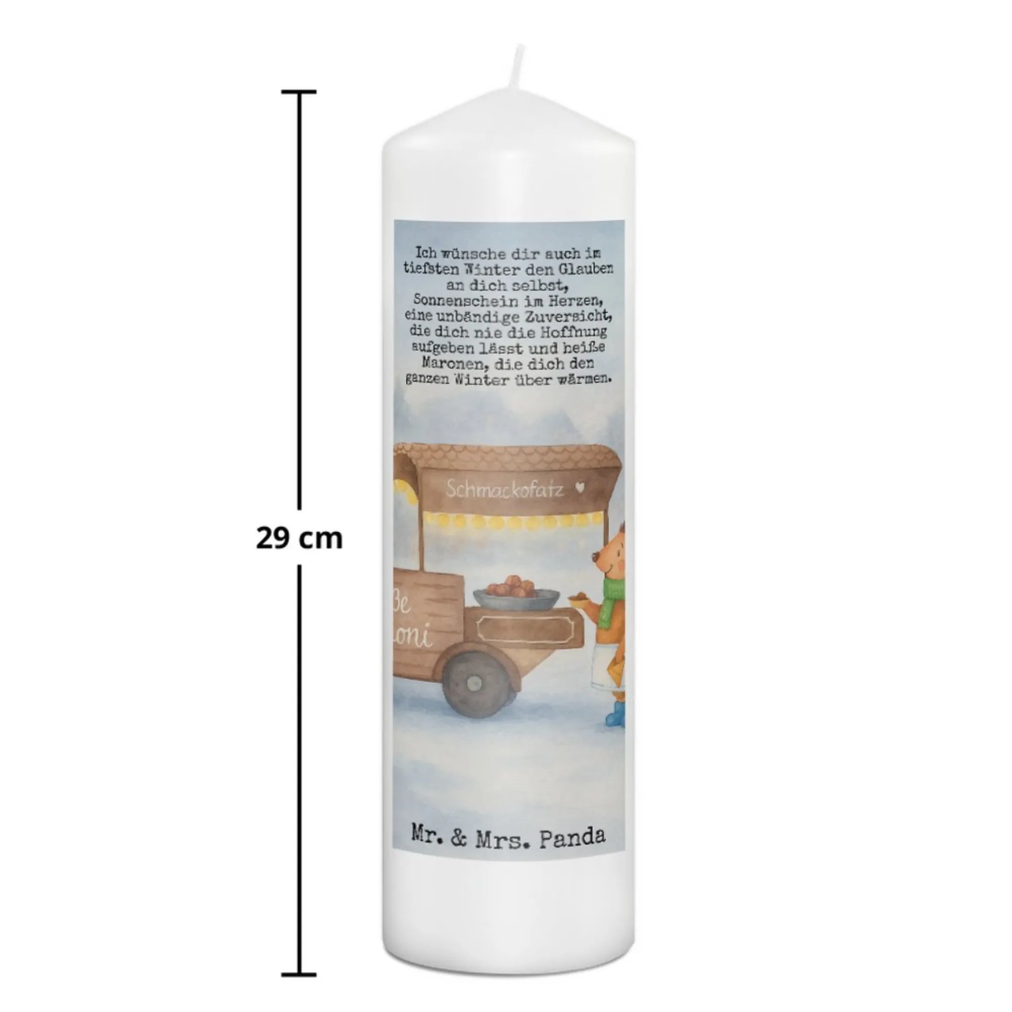 Die bezaubernde Kerze von Mr. & Mrs. Panda verschönert jede Ecke Ihres Zuhauses mit ihrem einzigartigen Design. Sie misst 290 mm in der Höhe und 80 mm im Durchmesser und hat ein Gewicht von 400 g. Aus hochwertigem Paraffinwachs gefertigt, bietet diese Kerze eine lange Brenndauer und sorgt für eine wundervolle Atmosphäre beim Feiern. Ihre besonderen Sprüche und niedlichen Motive sind nicht nur dekorativ, sondern bringen auch Freude und Gemütlichkeit in Ihr Zuhause. Die hauchdünne, transparente Wachsschicht, die beim Abbrennen schmilzt, sorgt für ein wunderschönes Flammenspiel. Ideal für Geburtstage oder Jubiläen, aber auch als Trostspender in schweren Zeiten als Trauerkerze. Pflegehinweis: Sanfte Reinigungsmittel und sanfte Handwäsche empfohlen, um die Schönheit dieser Kerze zu bewahren.