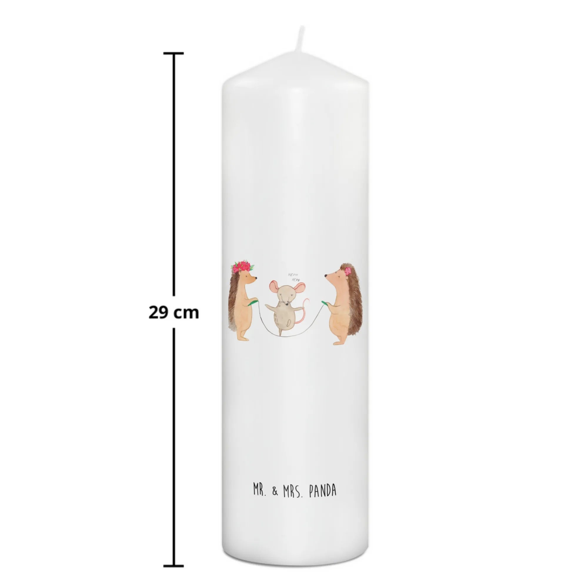 This candle, measuring 190mm x 80mm and weighing 250g, is made from high-quality paraffin wax, ensuring a long burn time that adds a lovely glow to any room. The whimsical design of our hedgehogs gleefully skipping rope is hand-drawn with love by Mrs. Panda, making it a truly unique addition to your home. Whether you are looking for a birthday gift, a special baptism candle, or a charming decoration for a communion celebration, this candle is the perfect choice!