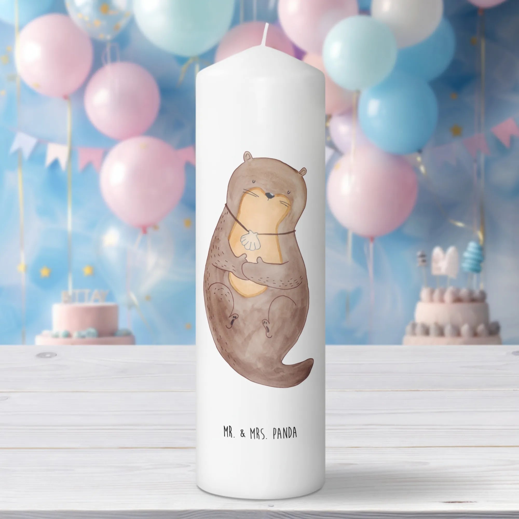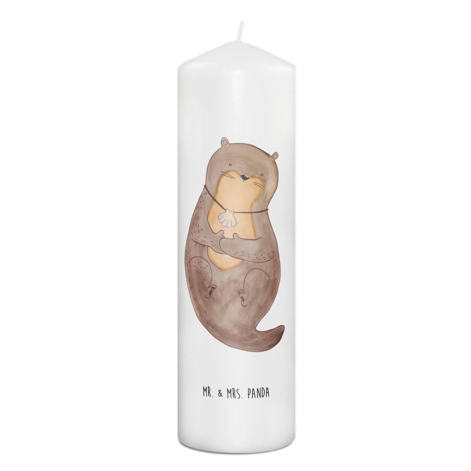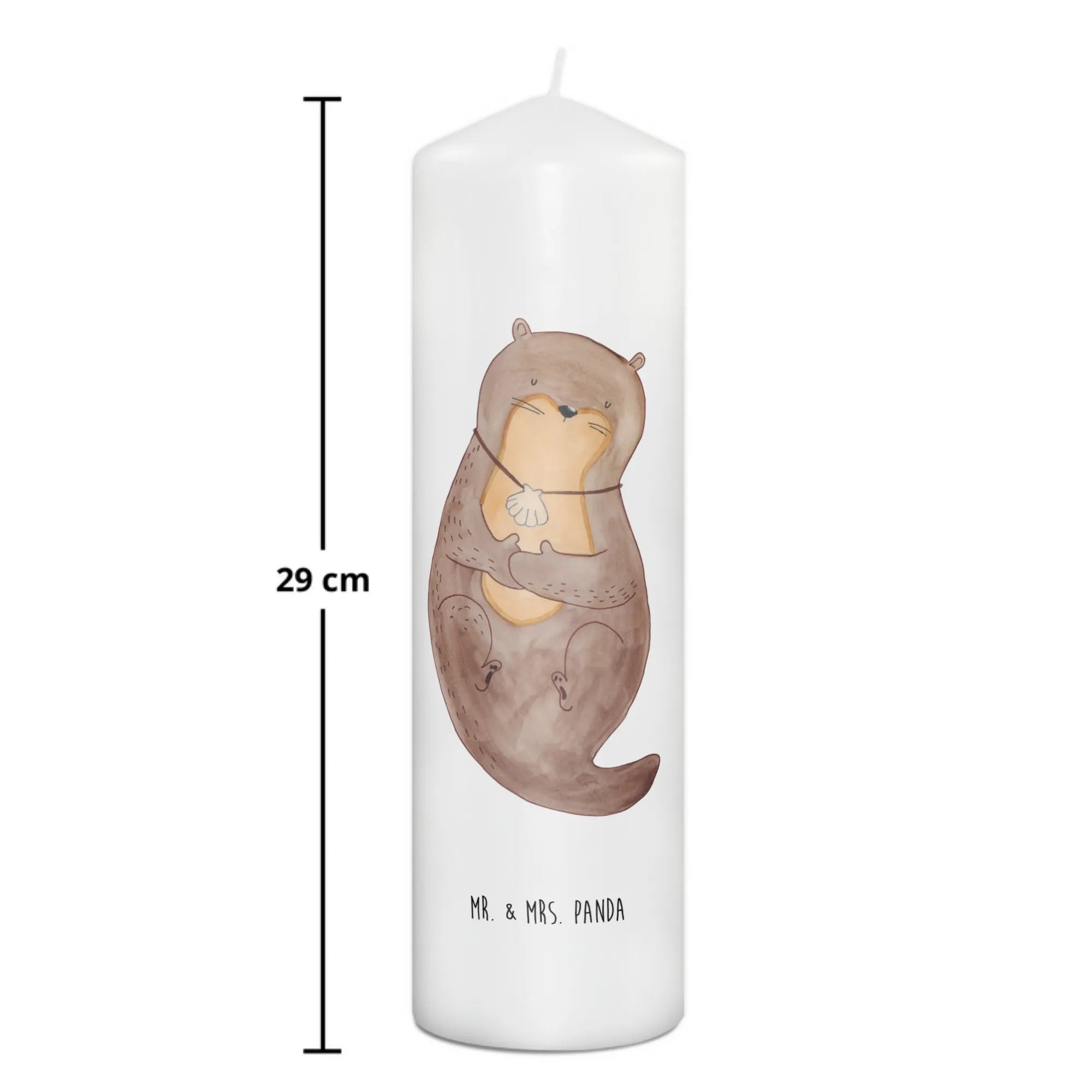 Discover the perfect gift for animal lovers or those seeking a touch of warmth in their home with the Mr. & Mrs. Panda Otter Candle with Seashell Necklace from our delightful Otter Collection. Measuring at 15 cm in height and 7 cm in diameter, this charming candle is crafted from premium paraffin wax and features a beautifully designed otter motif, where a sweet otter sports a seashell necklace.
