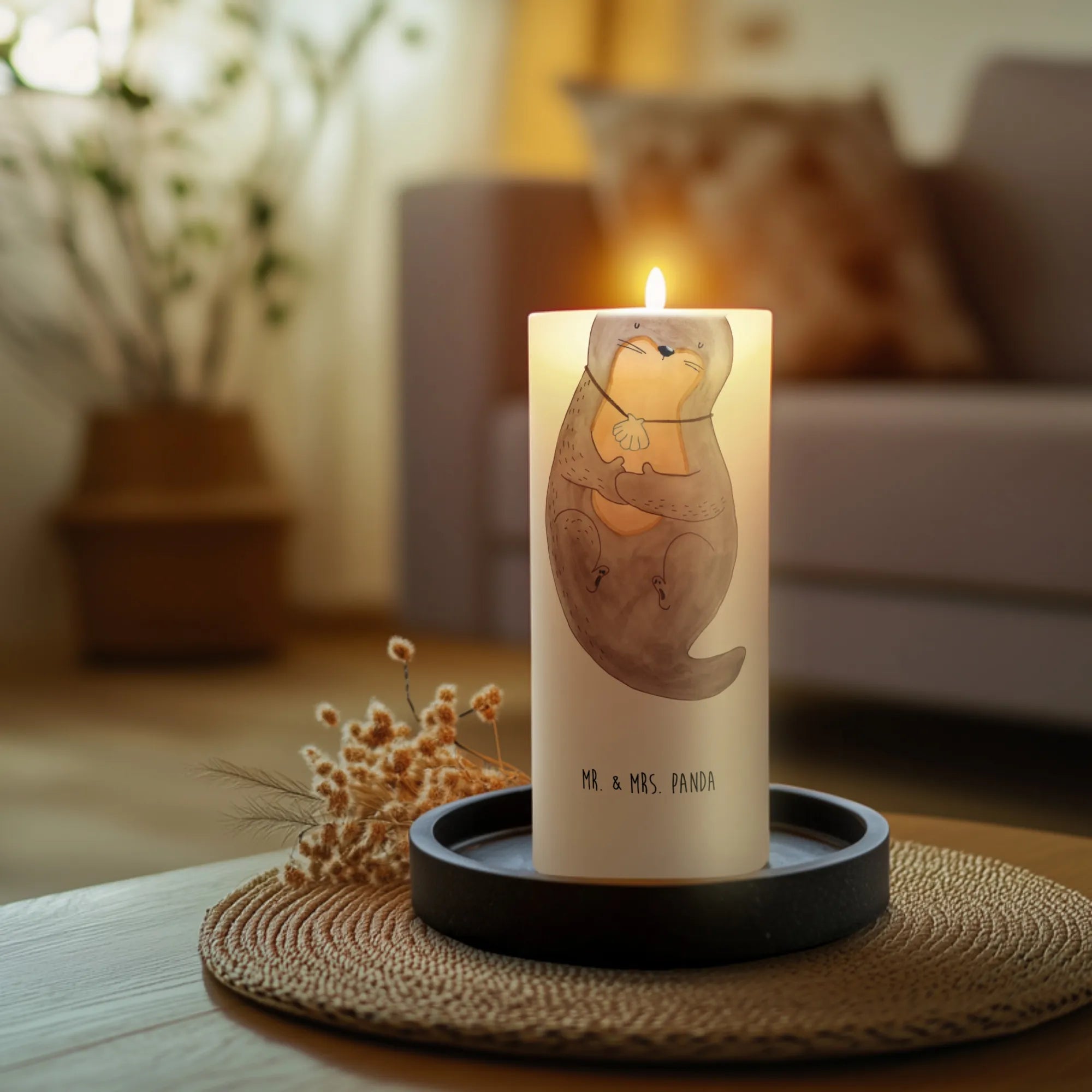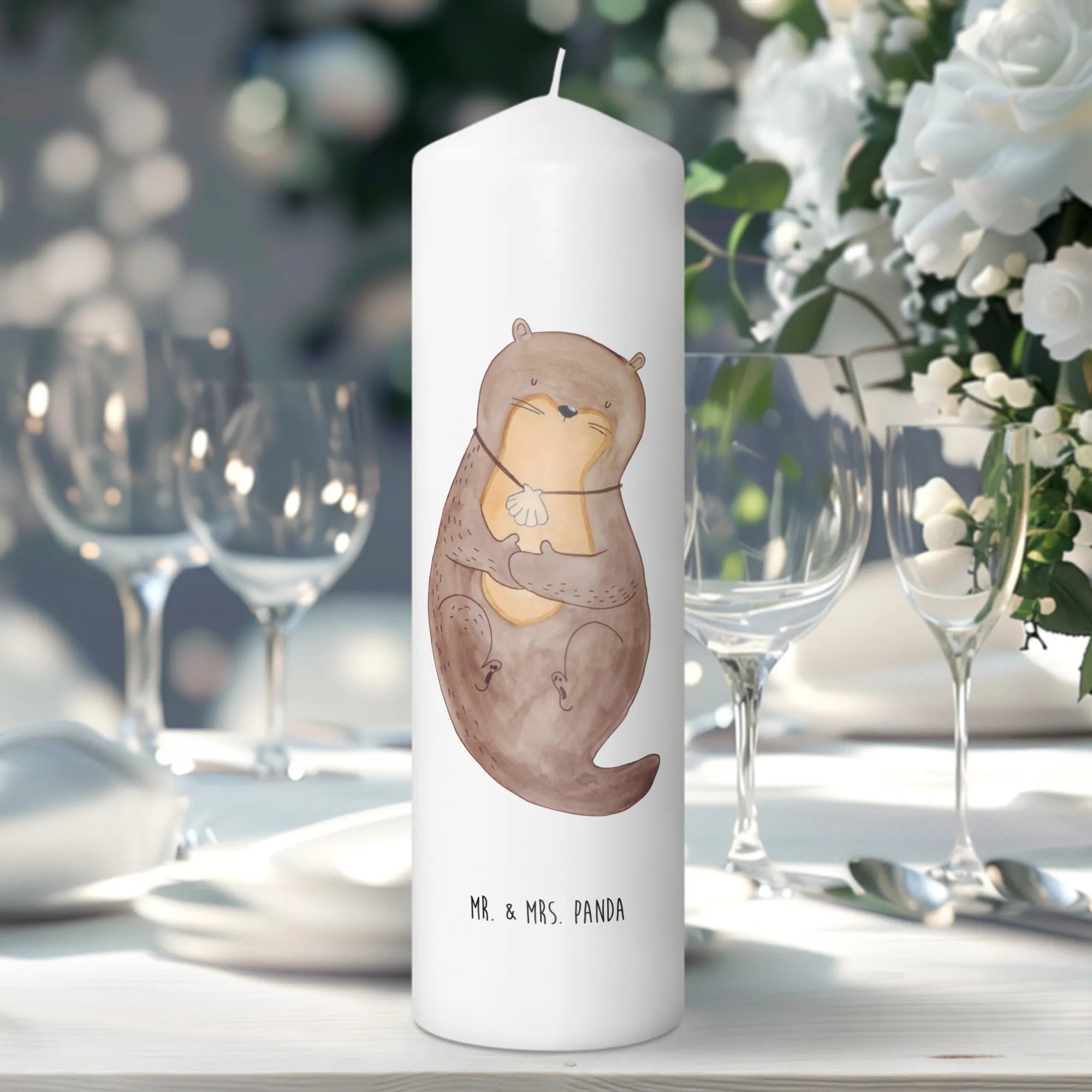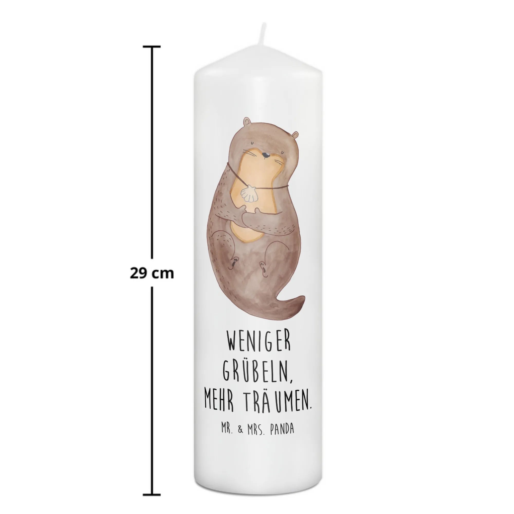 Discover the perfect gift for animal lovers or those seeking a touch of warmth in their home with the Mr. & Mrs. Panda Otter Candle with Seashell Necklace from our delightful Otter Collection. Measuring at 15 cm in height and 7 cm in diameter, this charming candle is crafted from premium paraffin wax and features a beautifully designed otter motif, where a sweet otter sports a seashell necklace.
