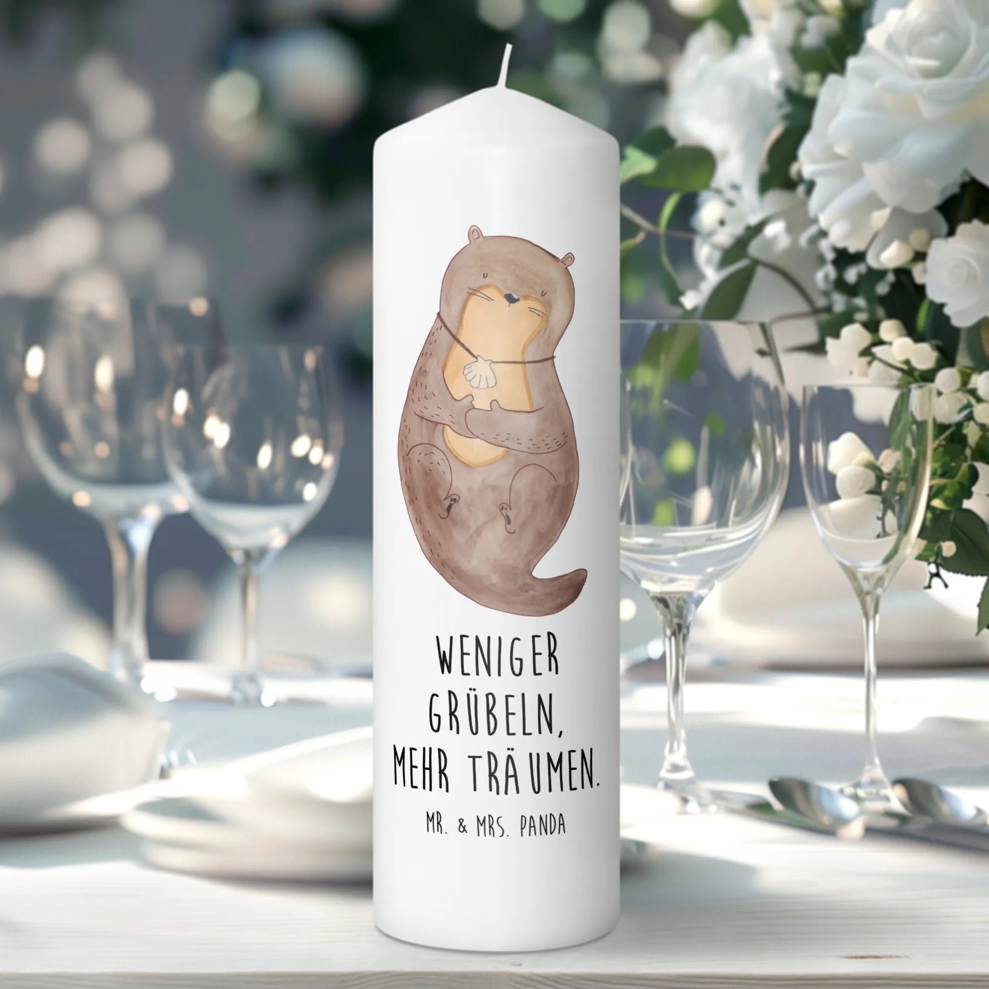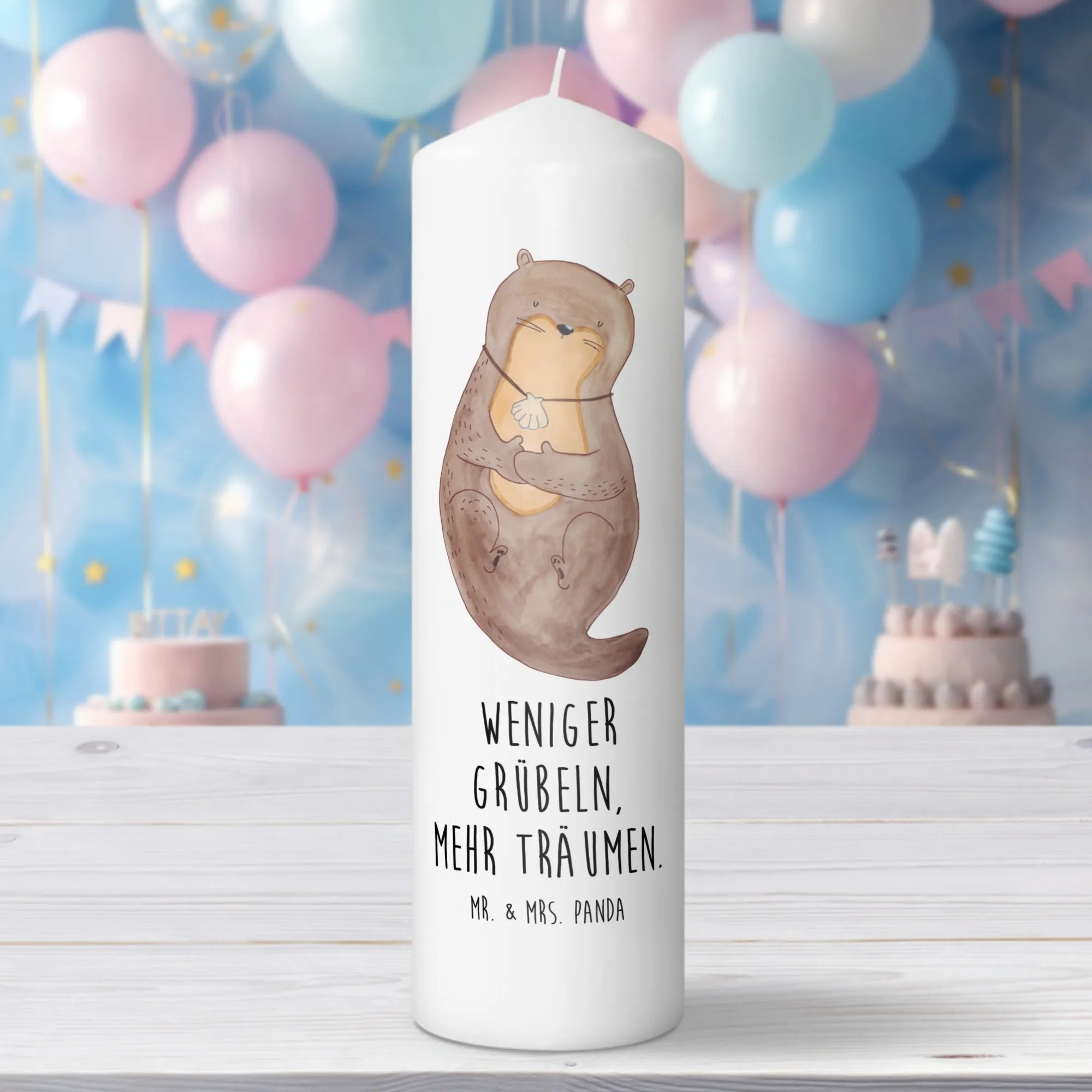 Introducing the charming Mr. & Mrs. Panda's Candle featuring the delightful otter with a seashell necklace from our exclusive Otter Collection! This adorable candle is not just a piece of decor; it's a heartwarming reminder to 'Love more. Worry less.' This unique piece makes for an ideal gift for a variety of occasions. Whether it’s a baptism, a communion, a birthday, or simply a thoughtful present for someone special, our otter candle is sure to bring a smile to their face.