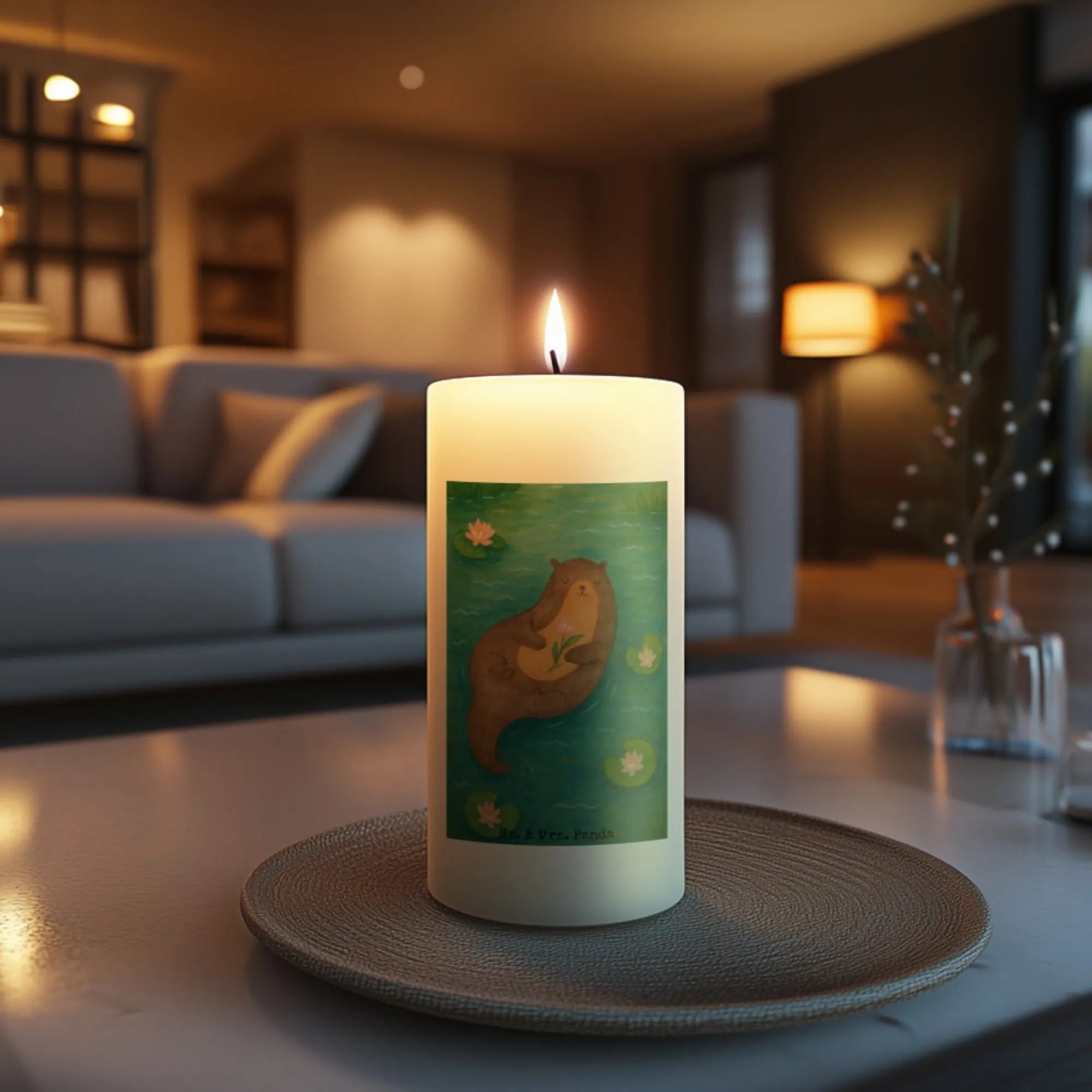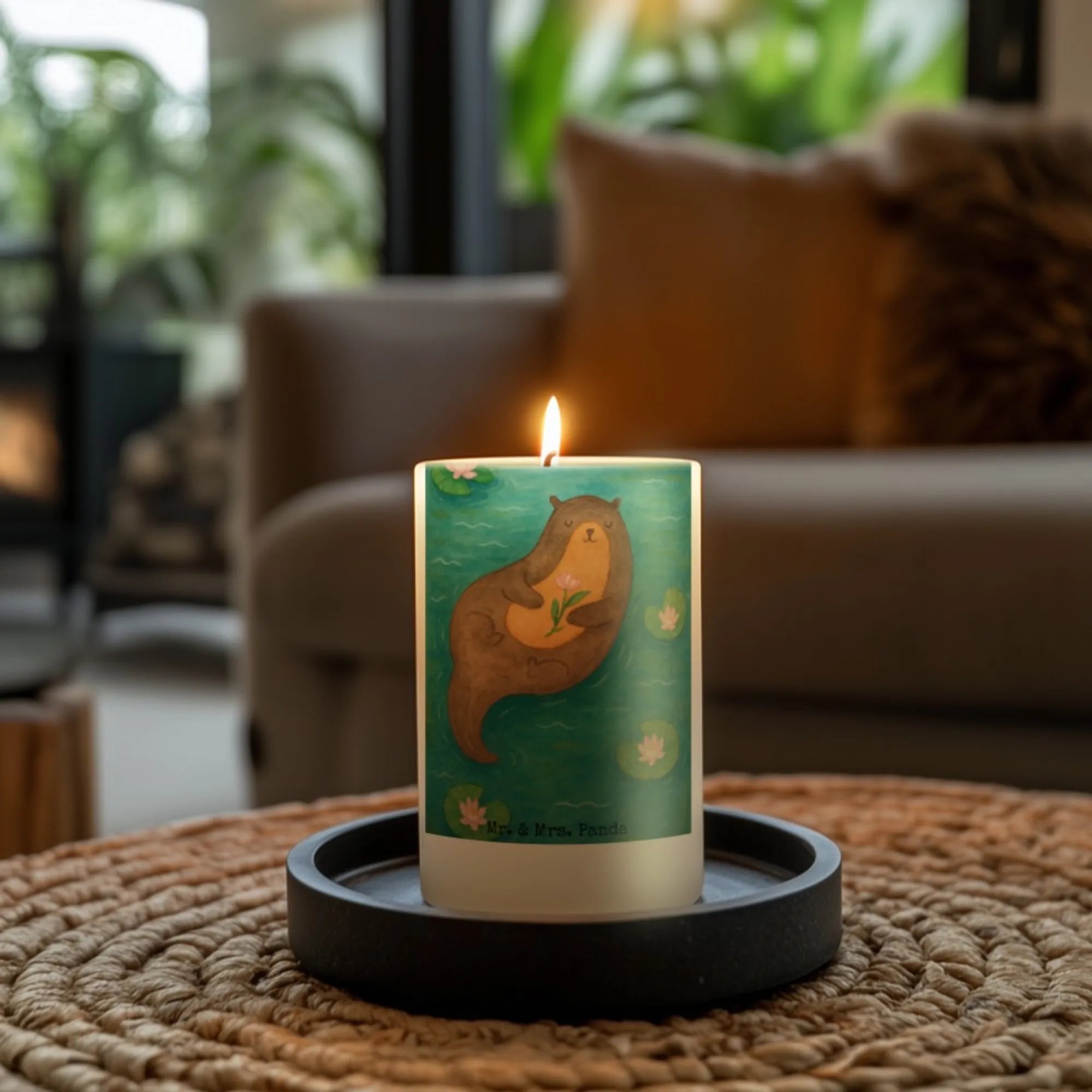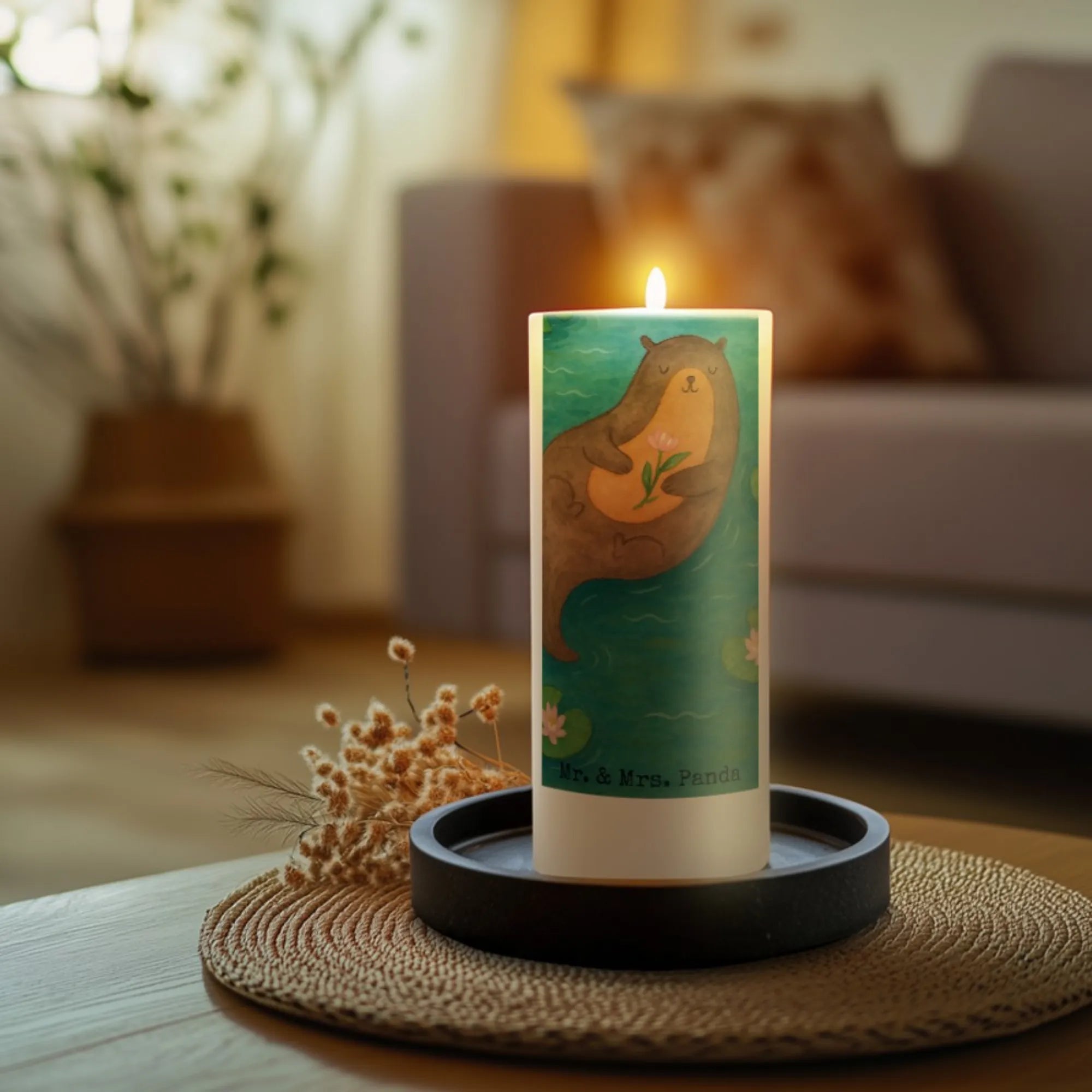 Candle otter Water Lily Design - 19 x 8 cm - with saying