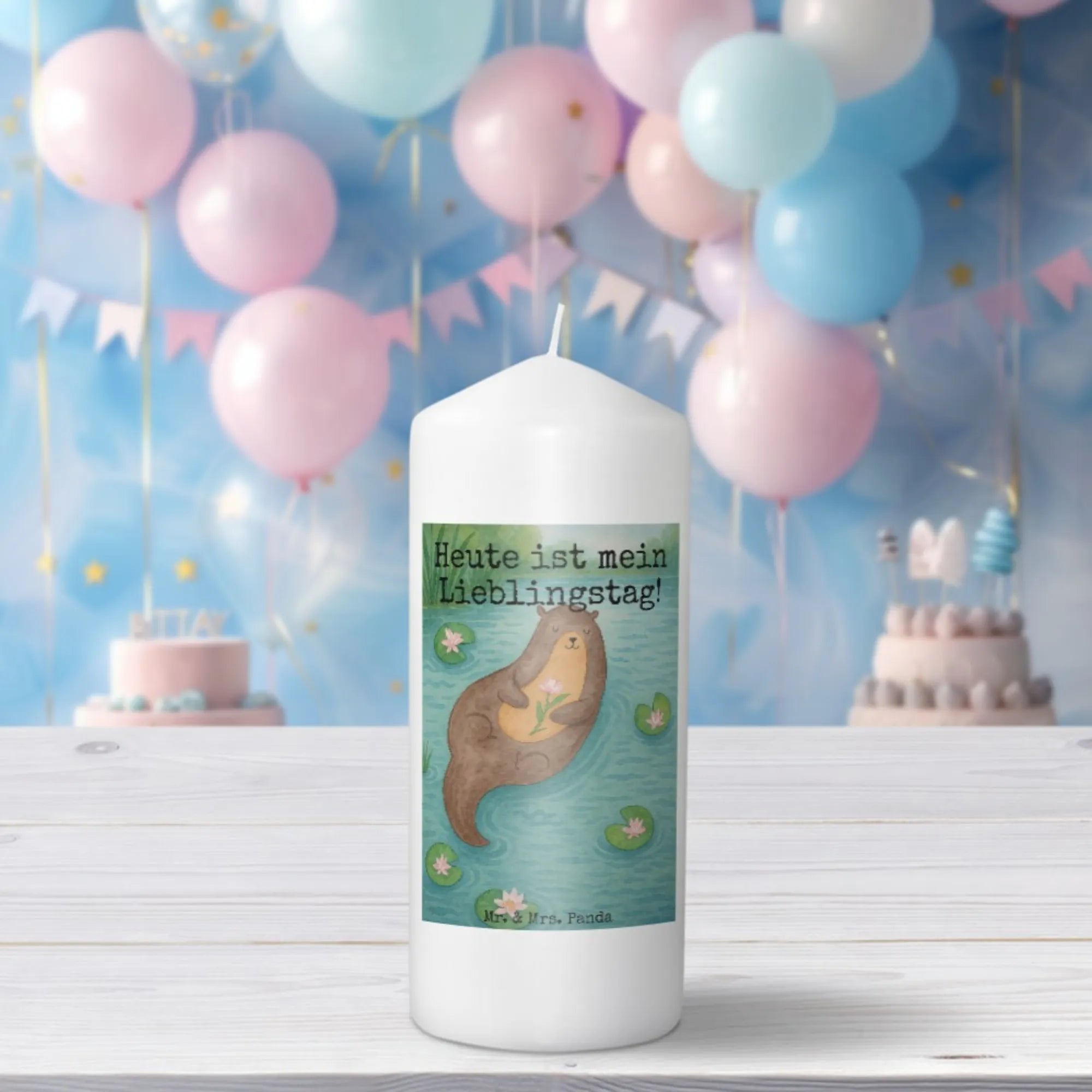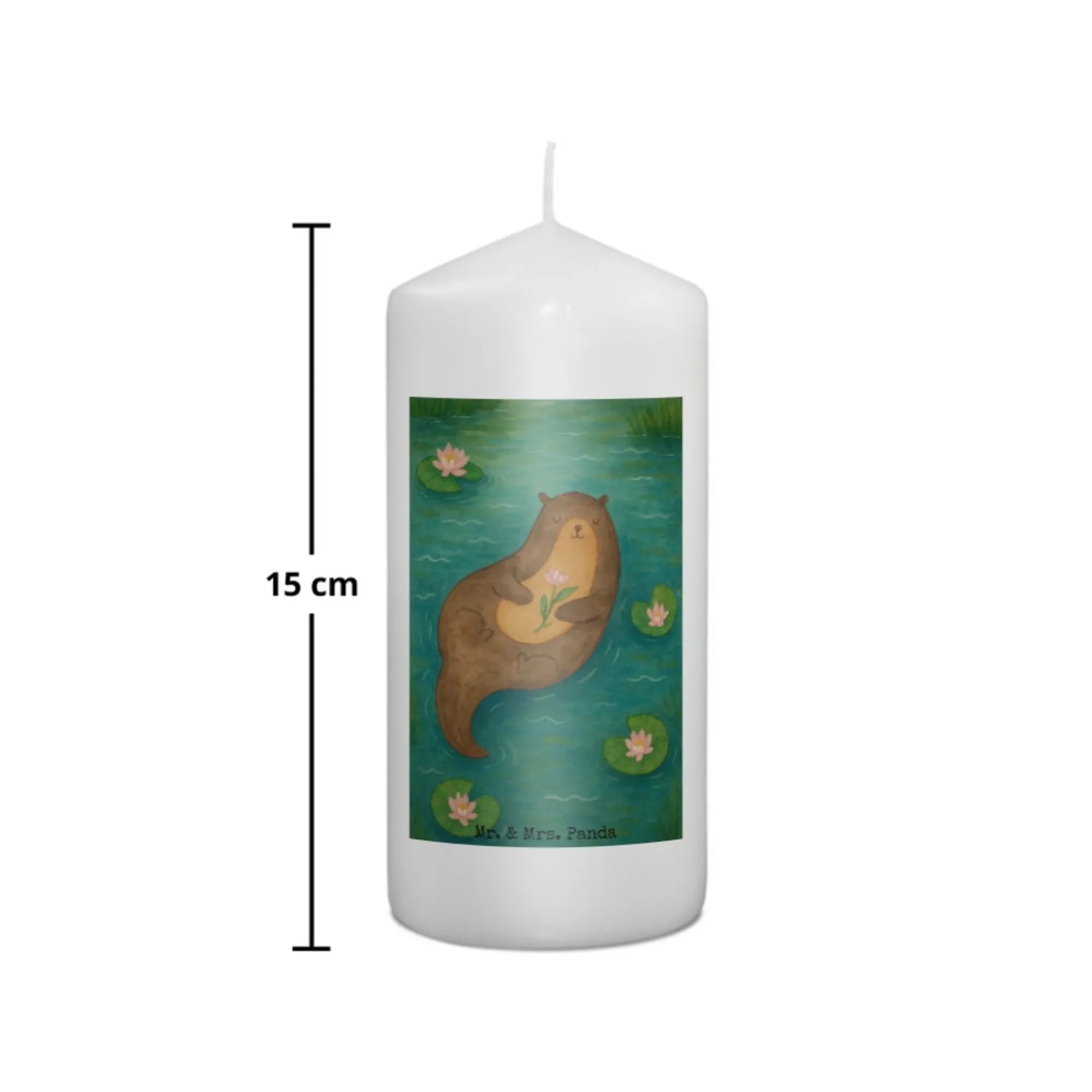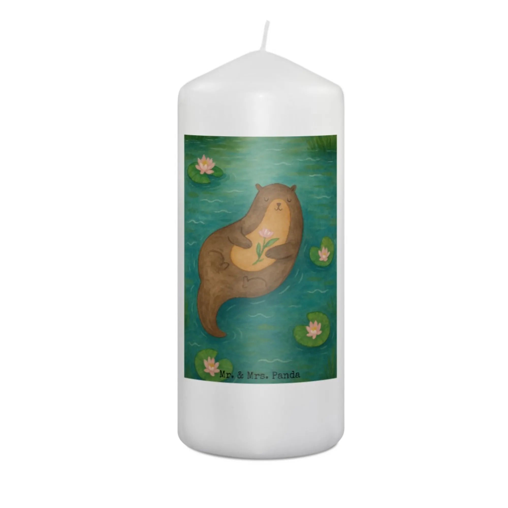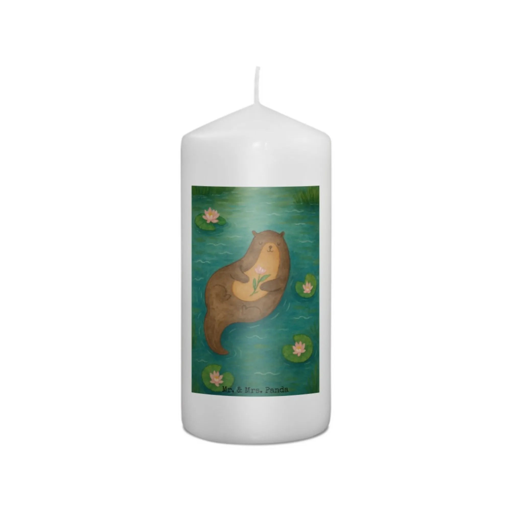 Candle otter Water Lily Design - 19 x 8 cm - with saying