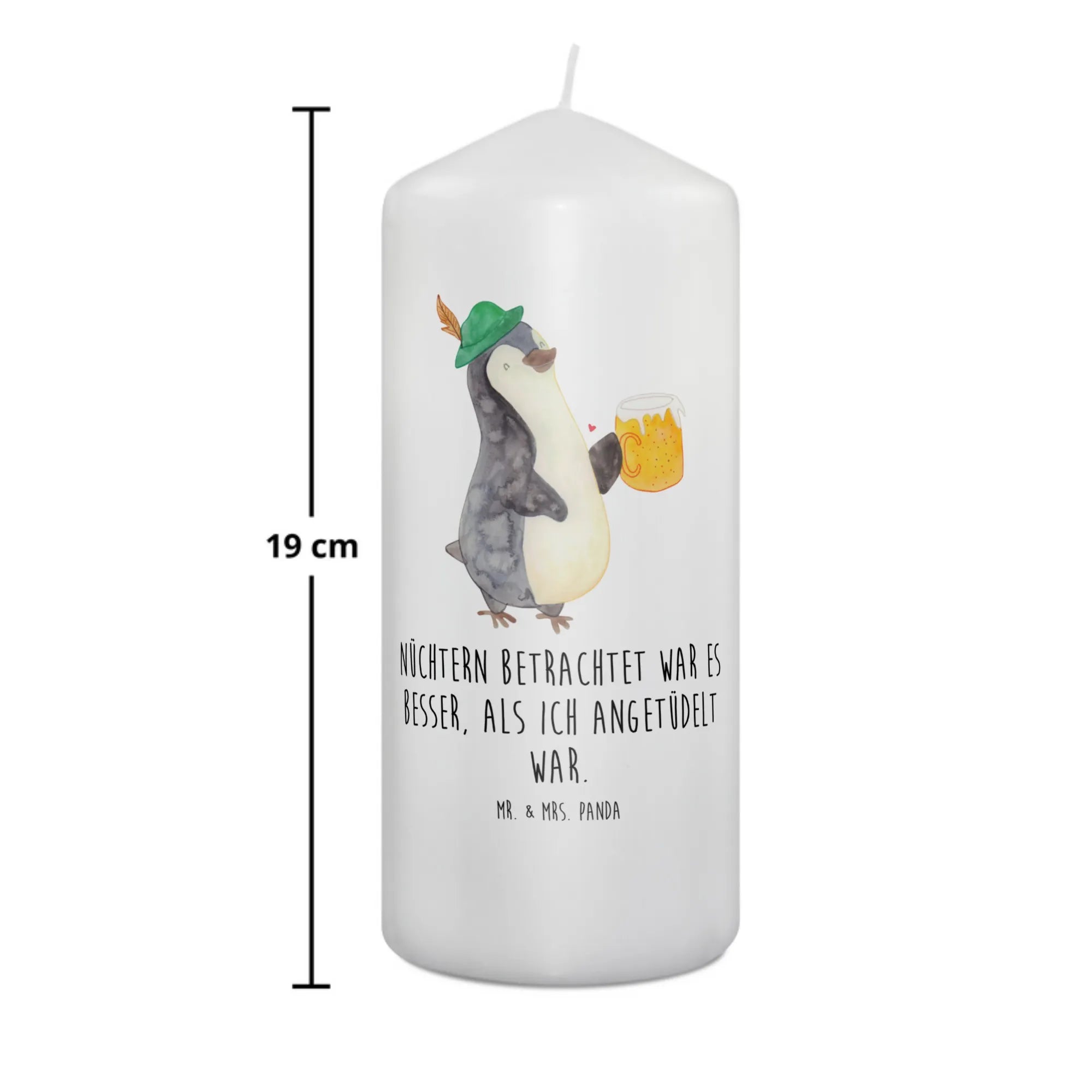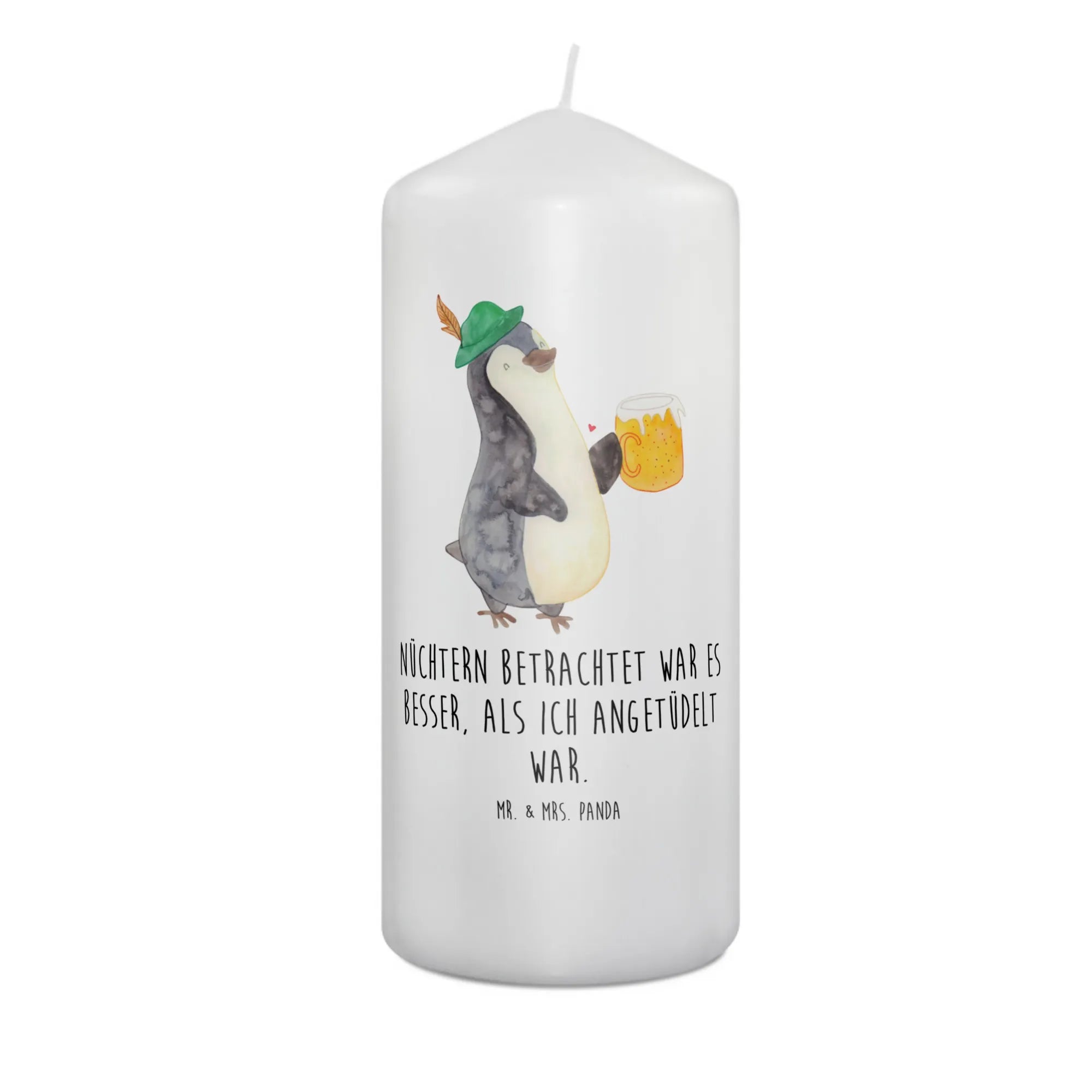 Imagine lighting this adorable candle at your next Oktoberfest celebration! With a playful penguin dressed in traditional Bavarian attire, holding a Maß Bier, it effortlessly brings the festive spirit right into your home. It's not just a candle; it’s a conversation starter, a slice of joy, and a perfect addition to any party atmosphere. Plus, the slogan "Now that I've sobered up, everything was better when I was tipsy," adds a cheeky touch, guaranteed to raise a smile.