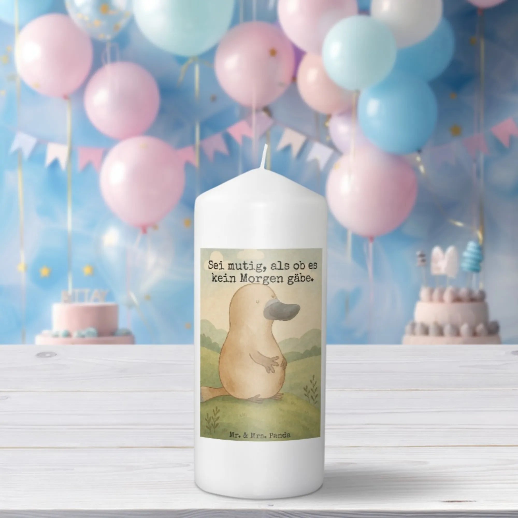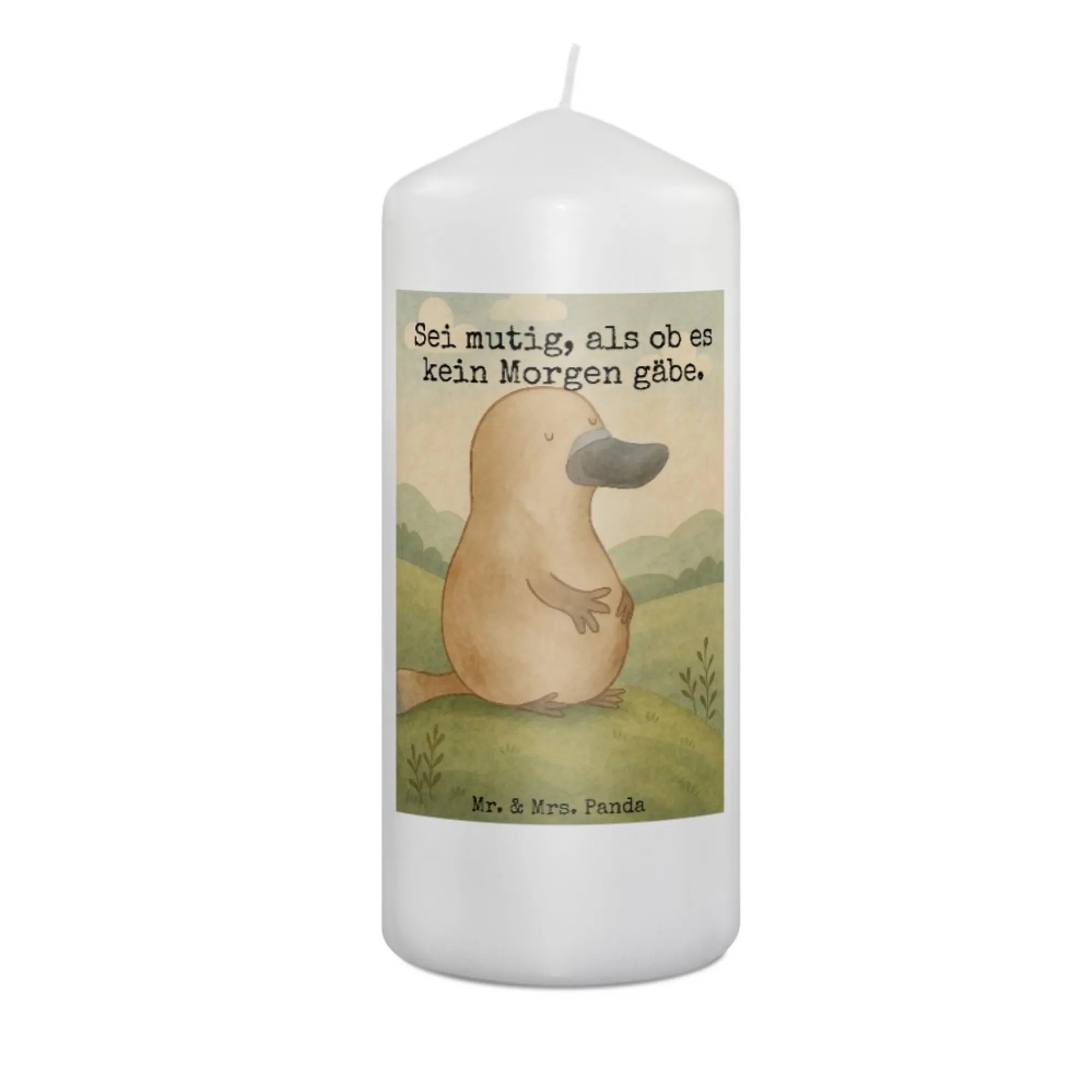 Candle platypus courage Design - 15 x 7 cm - with saying