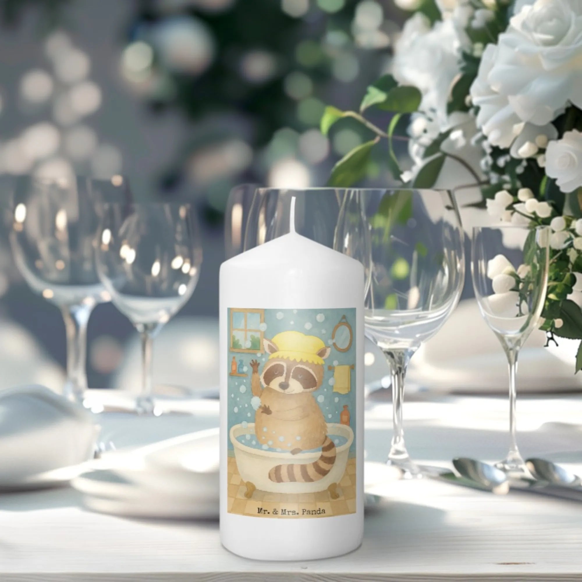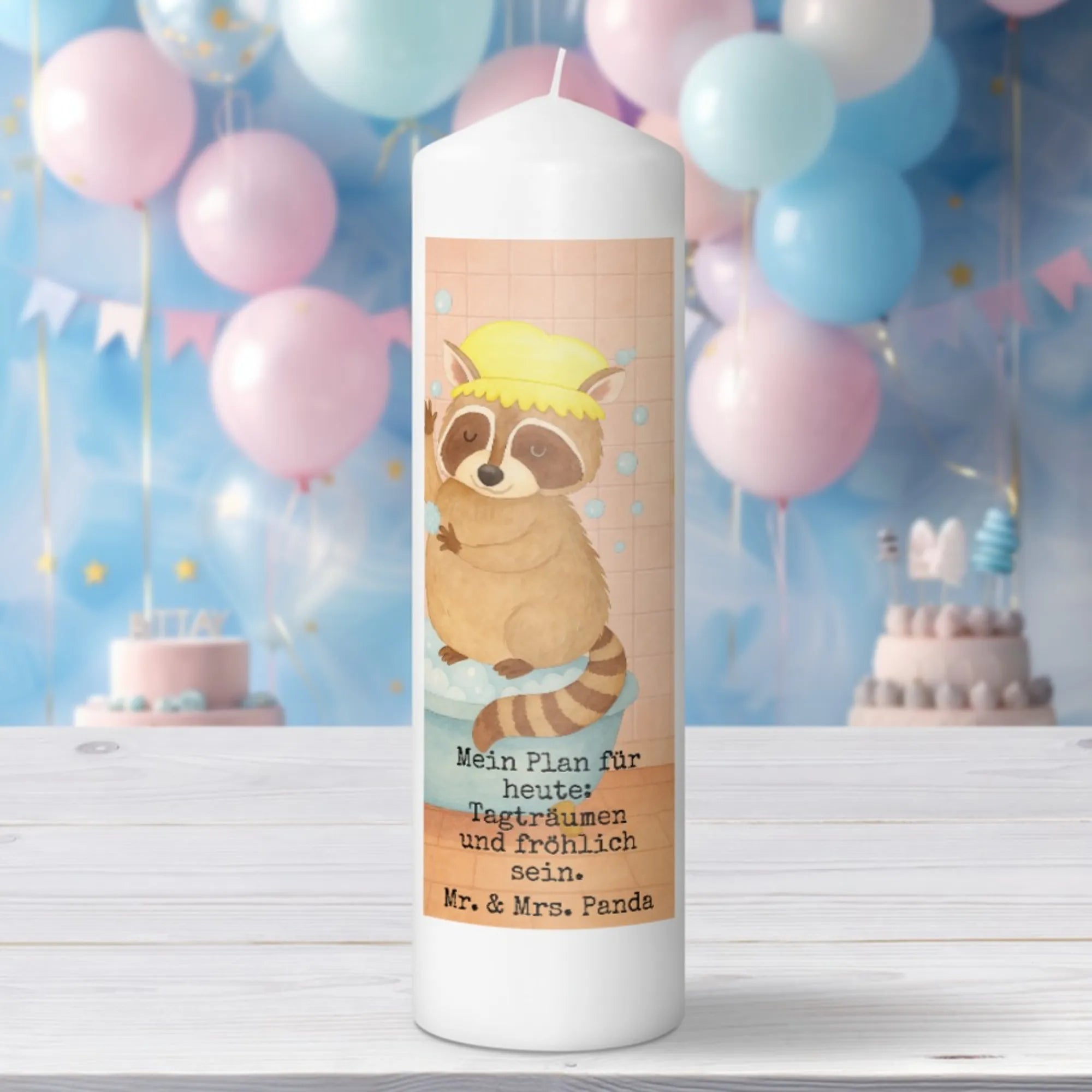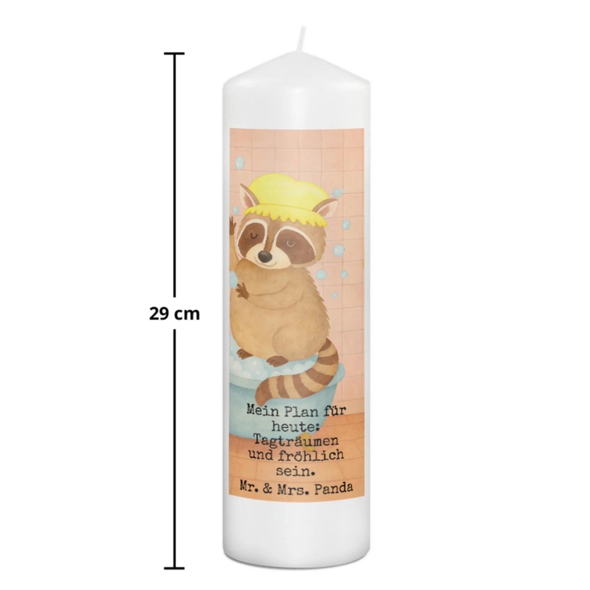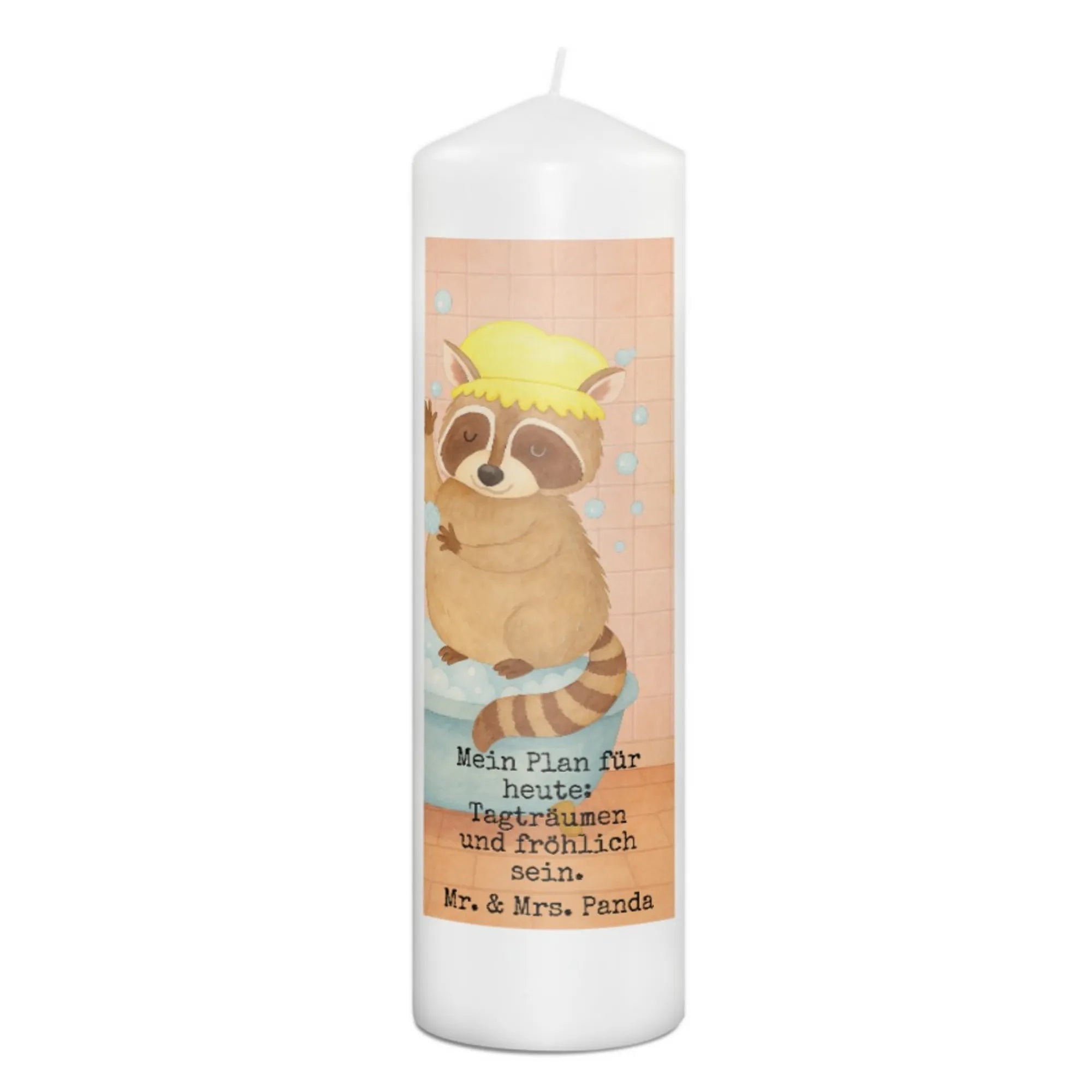 Candle Raccoon Design - 29 x 8 cm XL - with saying