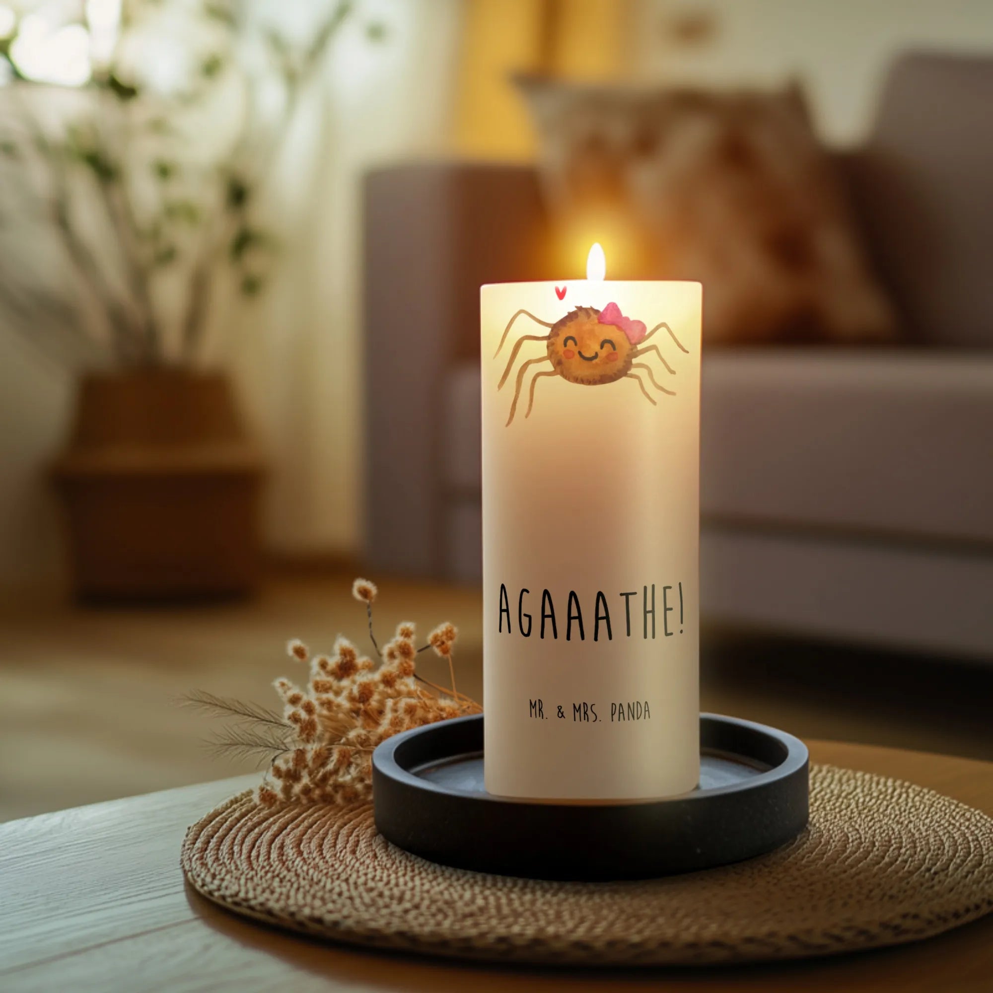 Made from high-quality paraffin wax, it showcases a beautifully illustrated design that features the cheerful and lively Agatha, complete with a cute little bow on her head and a heart beside her. Designed by Mrs. Panda herself, this delightful motif is part of our exclusive Spider Agathe Collection, inspired by the beloved character that captured the hearts of many on social media.
